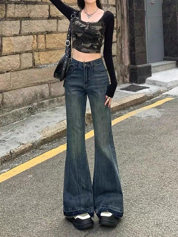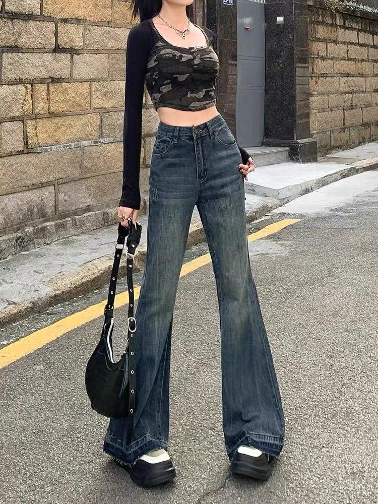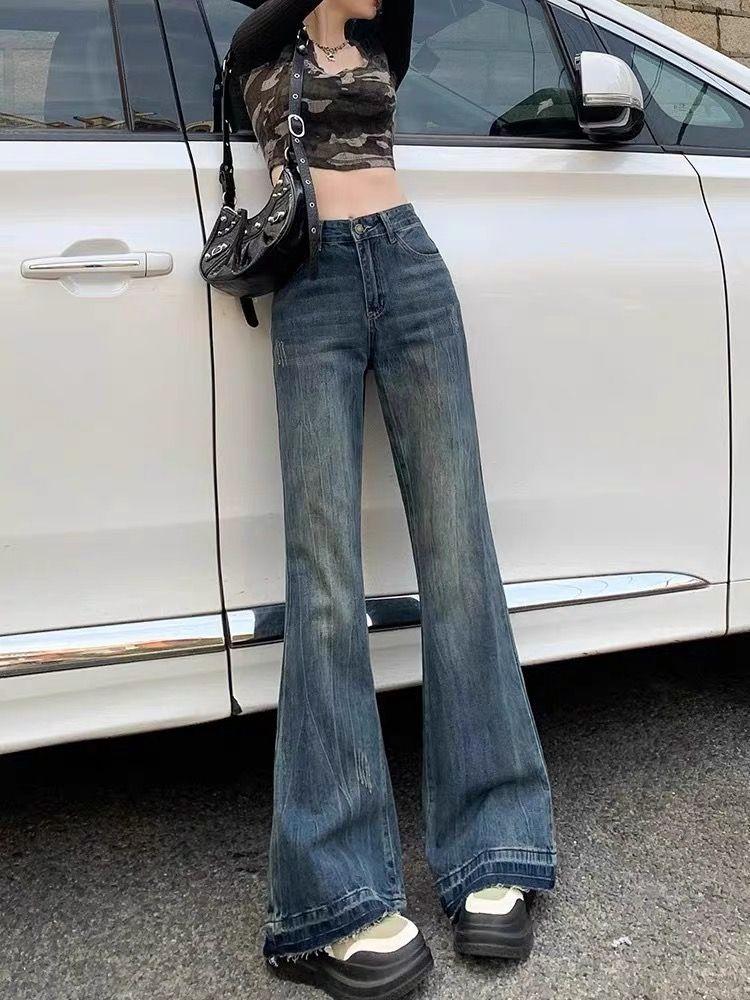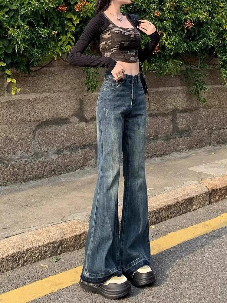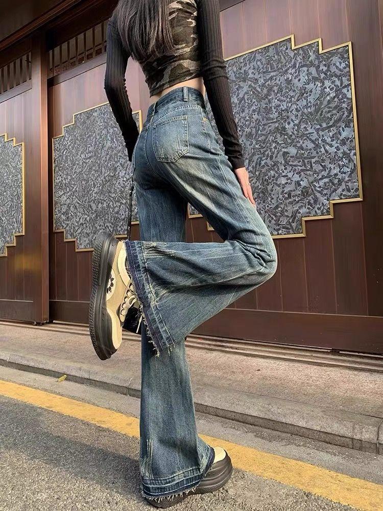 Pantalones adelgazantes retro de estilo americano de cintura alta para mujer, primavera y otoño 2024