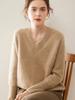 Suéter de punto de cachemira para mujer, jersey de manga larga holgado, adelgazante, cálido, con cuello en V y hombros descubiertos, para otoño e invierno.