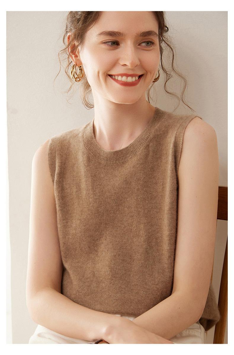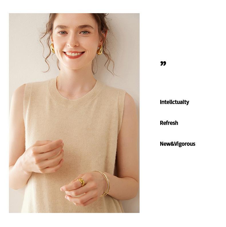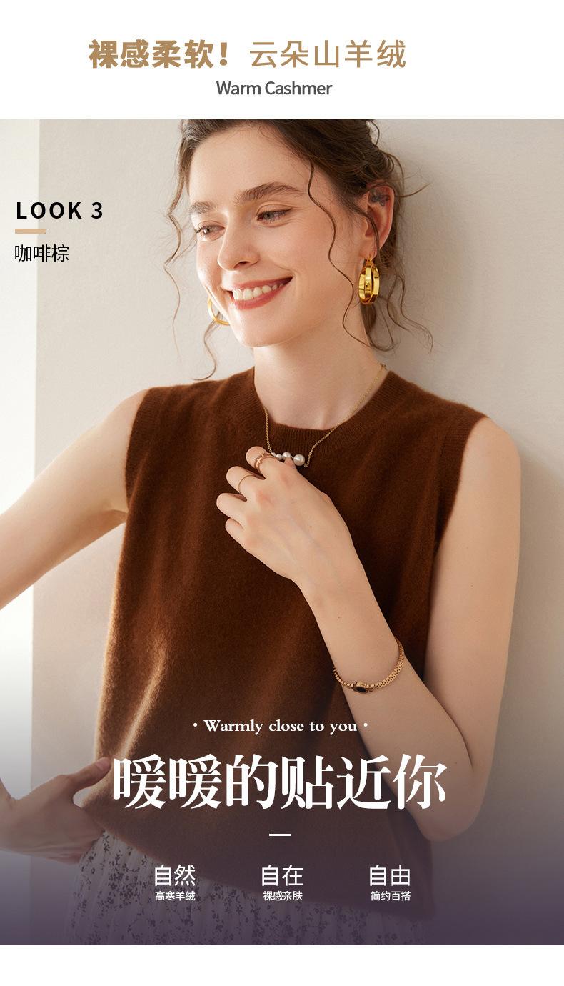 Nuevo chaleco de punto de cachemira para mujer otoño e invierno 2024 con chaqueta cálida apilada de moda suave, cerosa y agradable para la piel que combina con todo