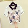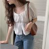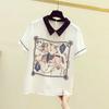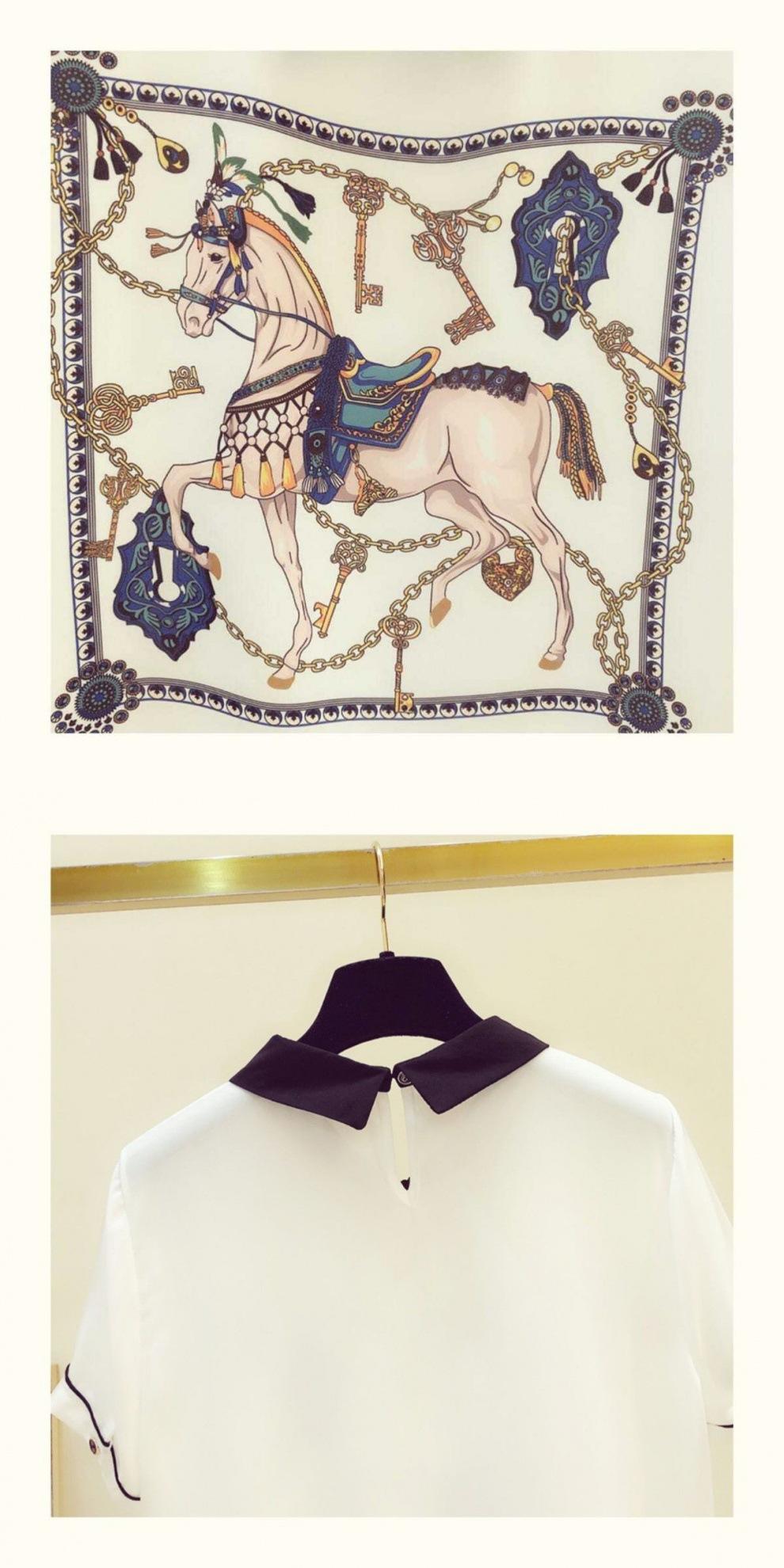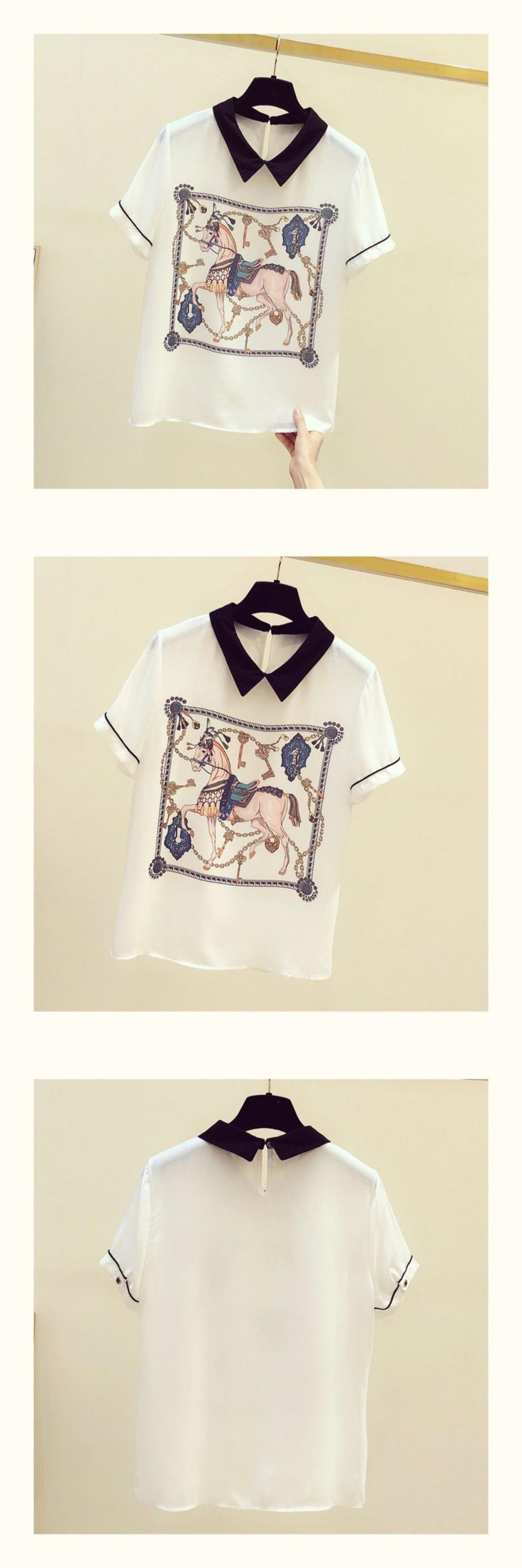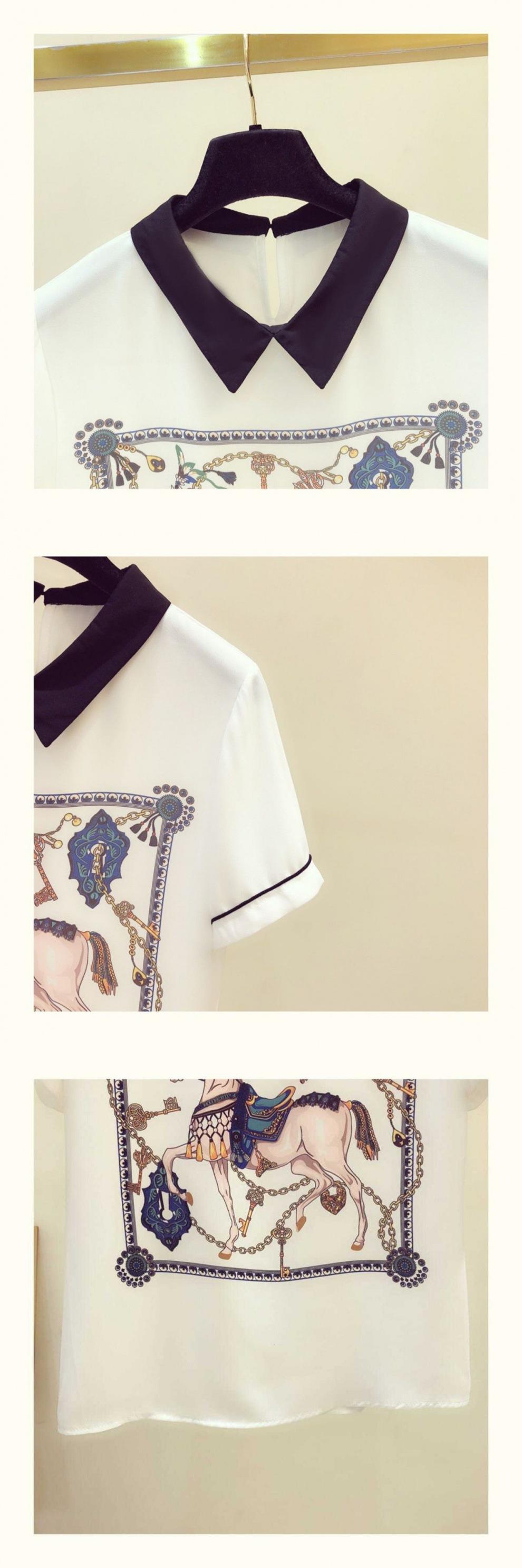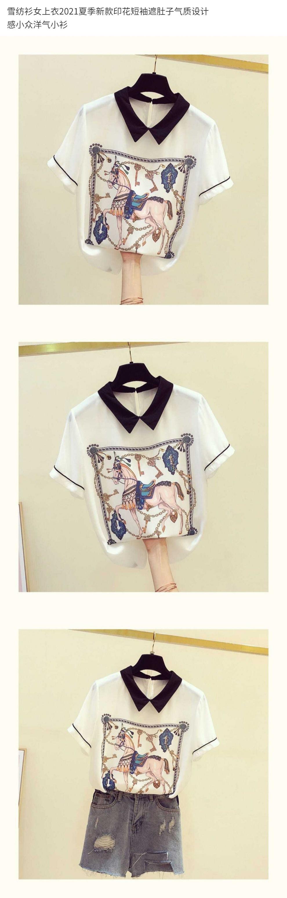 Camisa de gasa para mujer, top de verano 2024, nuevo estilo, estampado de manga corta, que cubre el vientre, diseño elegante, estilo occidental.