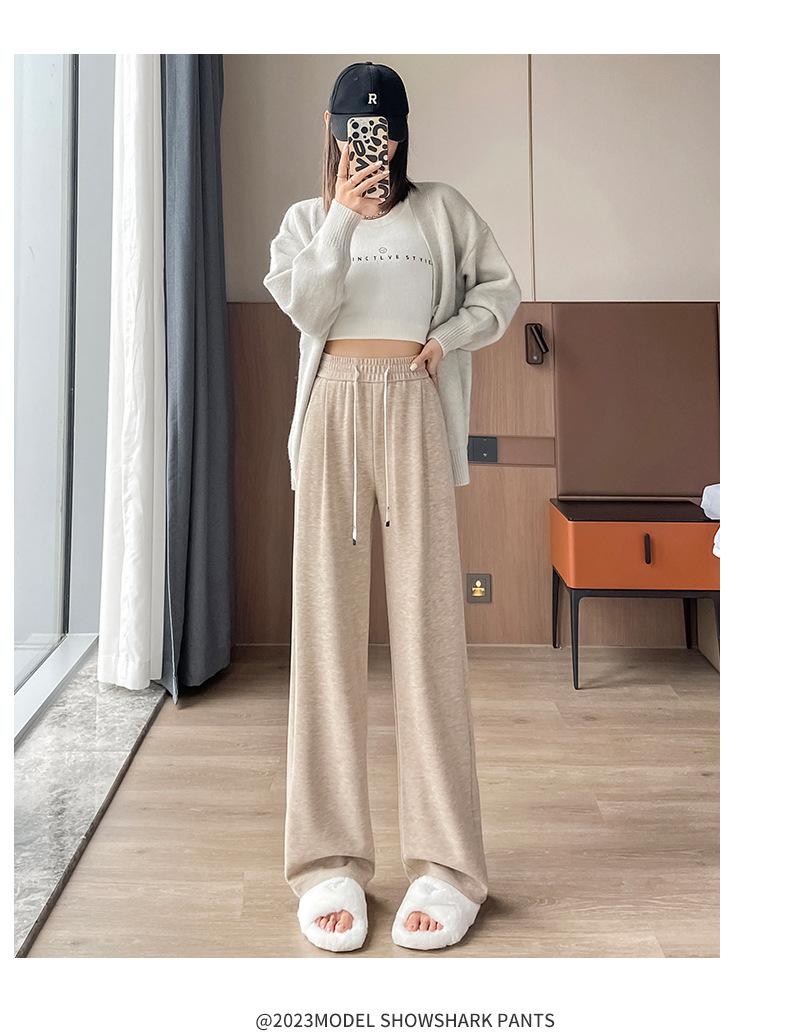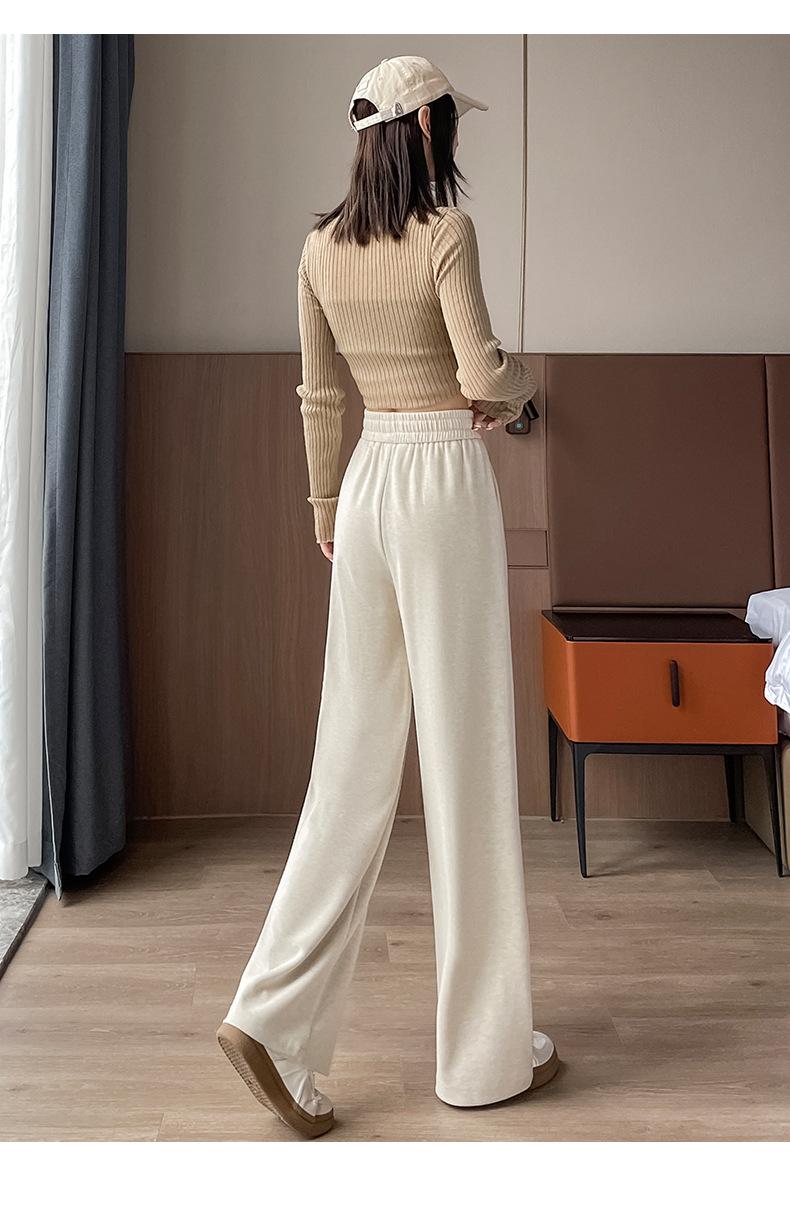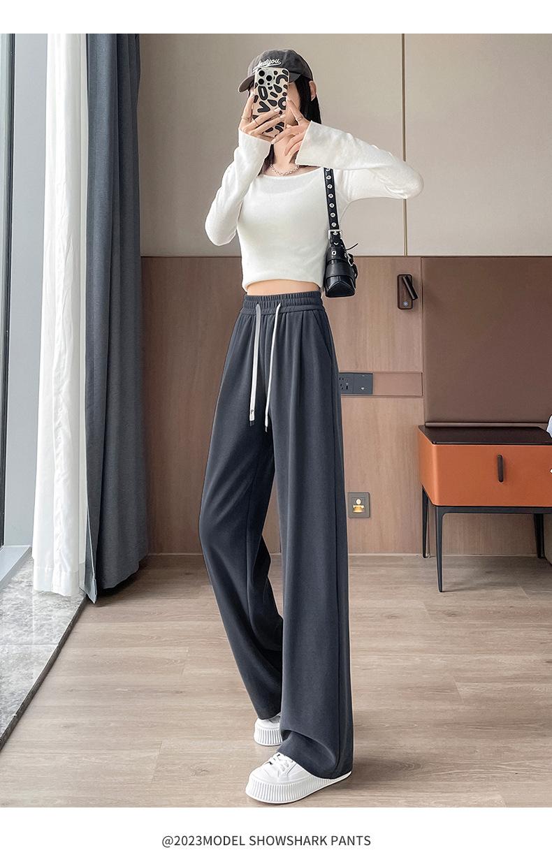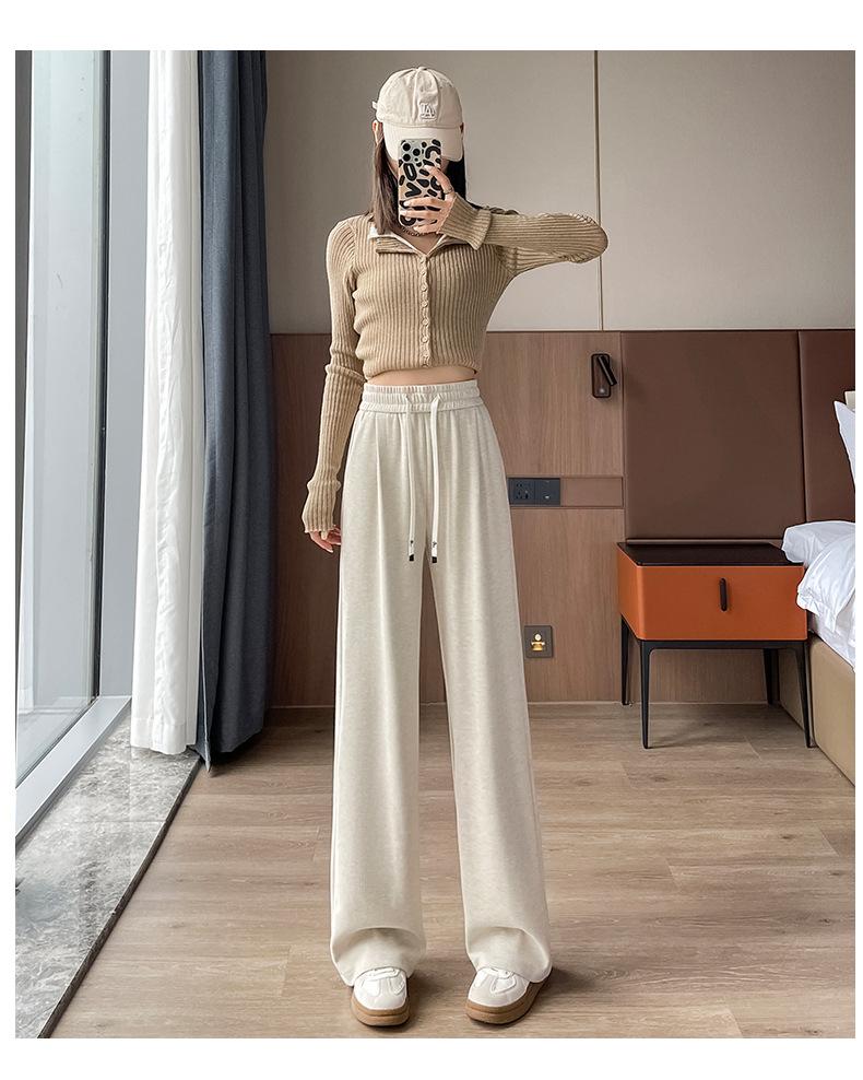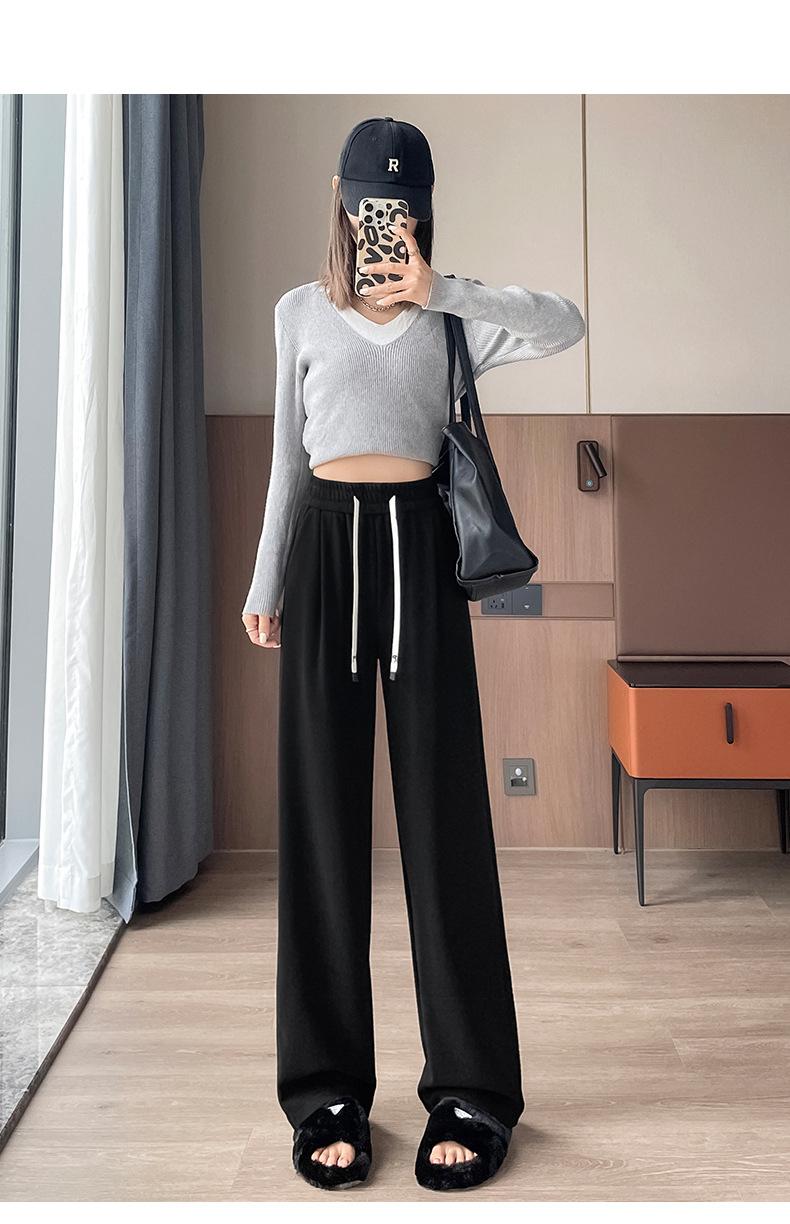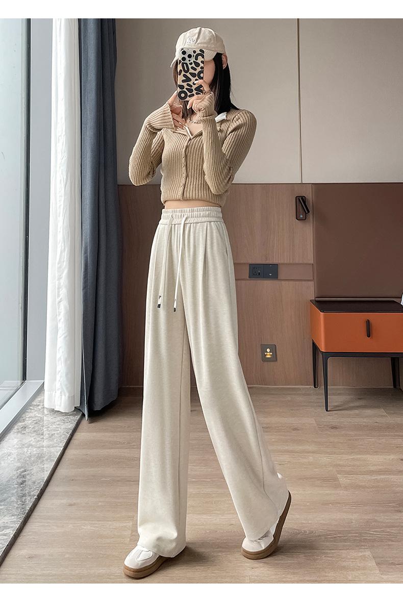 Pantalones casuales de otoño para mujer, pantalones deportivos de cintura alta, adelgazantes, blancos, con cordón ajustable, de pierna recta, A1712