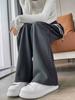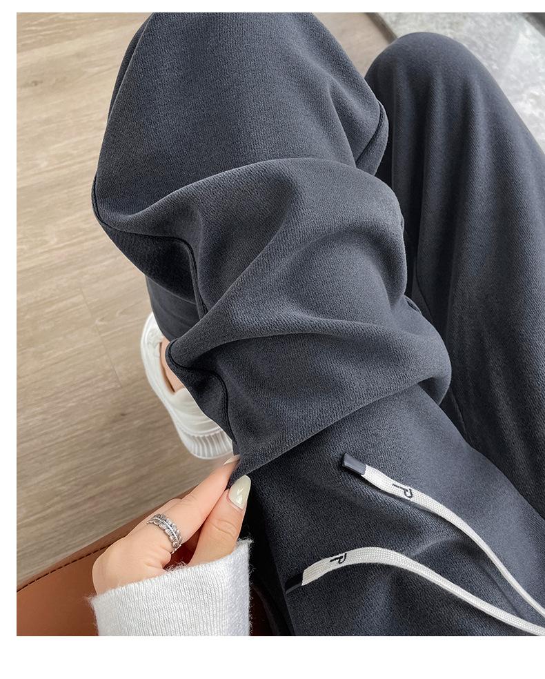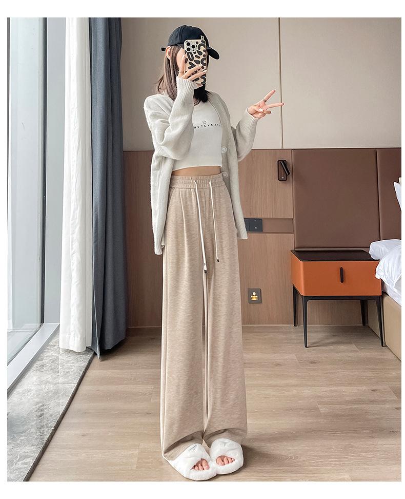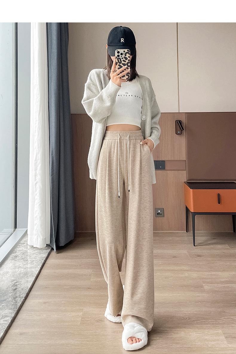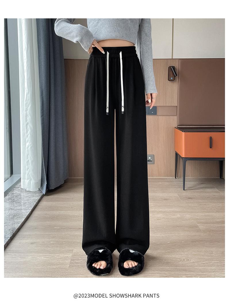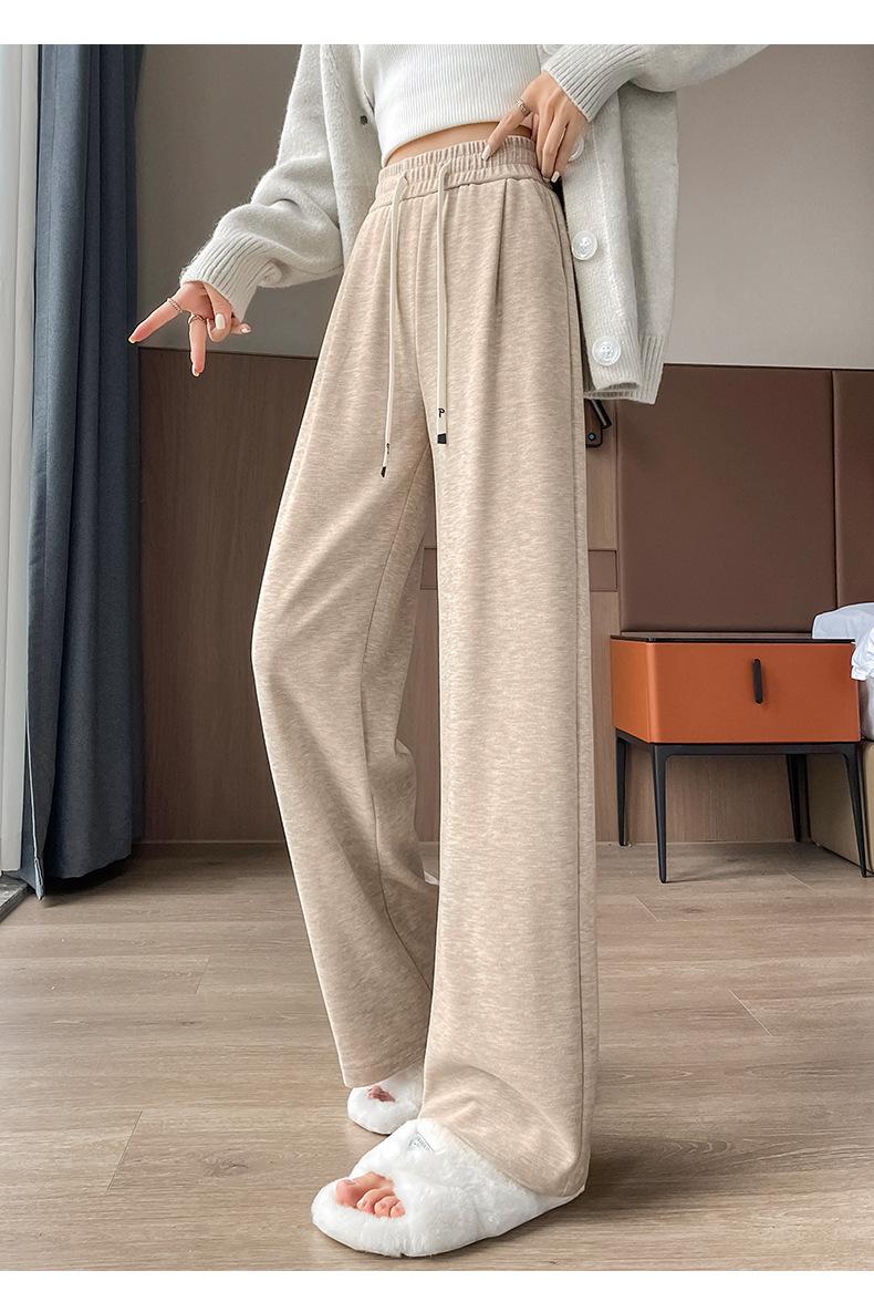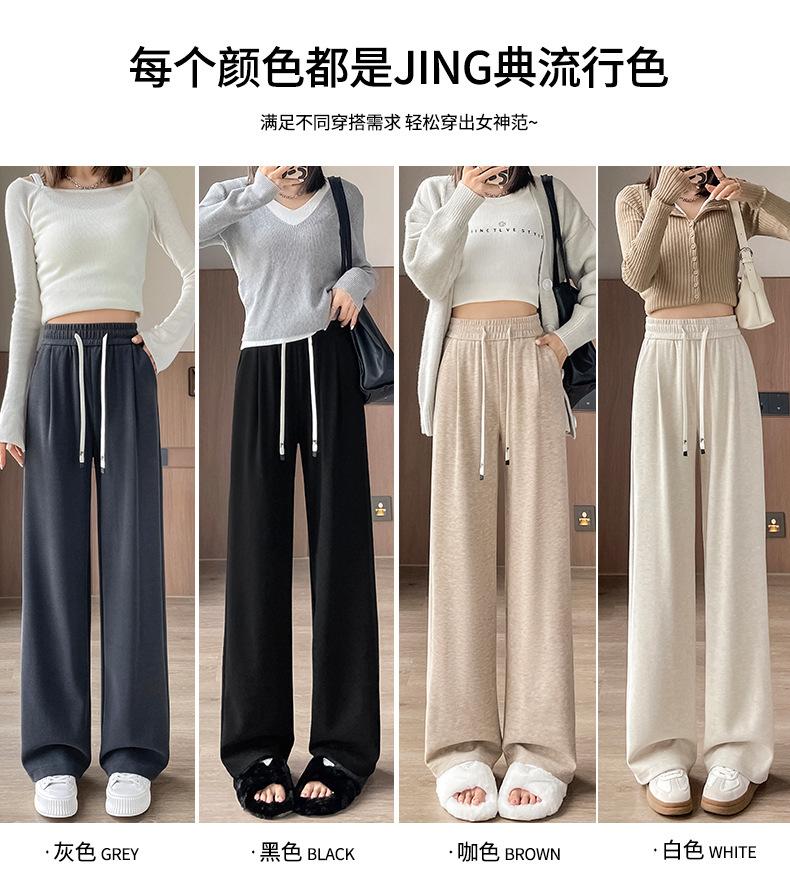 Pantalones casuales de otoño para mujer, pantalones deportivos de cintura alta, adelgazantes, blancos, con cordón ajustable, de pierna recta, A1712