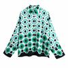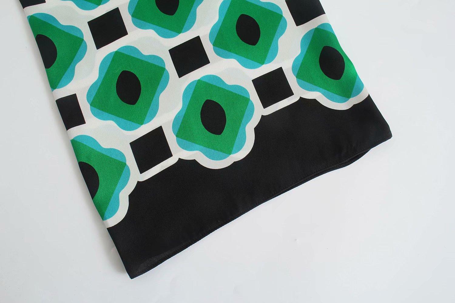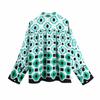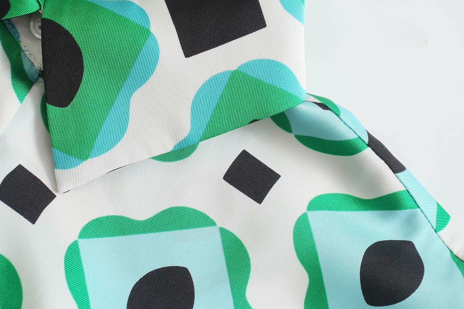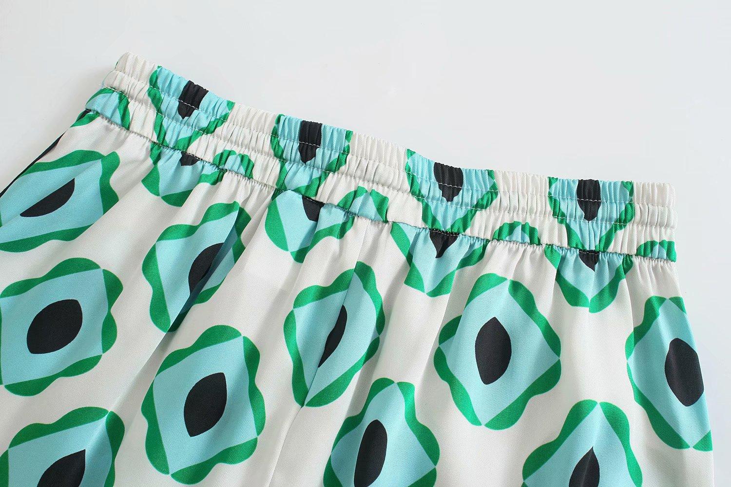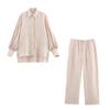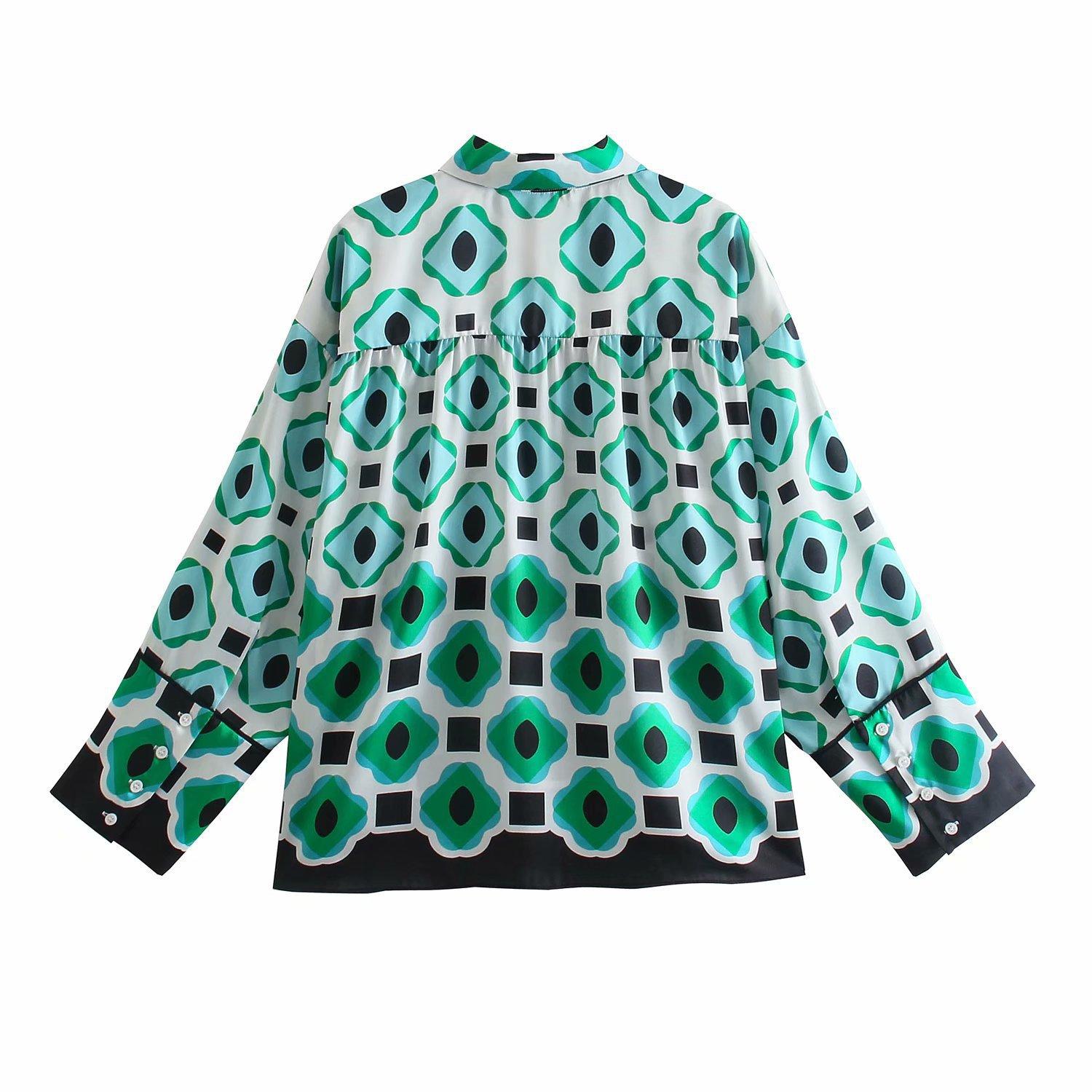 2628 Verano Nuevo Ropa de Mujer Europeo y Americano Solapa Manga Larga Camisa + Cintura Alta Cordones Estampado Geométrico Conjunto de Pantalones Casuales