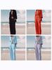 2021 verano nuevo traje de mujer europeo y americano con solapa, camisa de manga larga, cintura alta, encaje, estampado geométrico, pantalones casuales