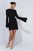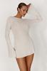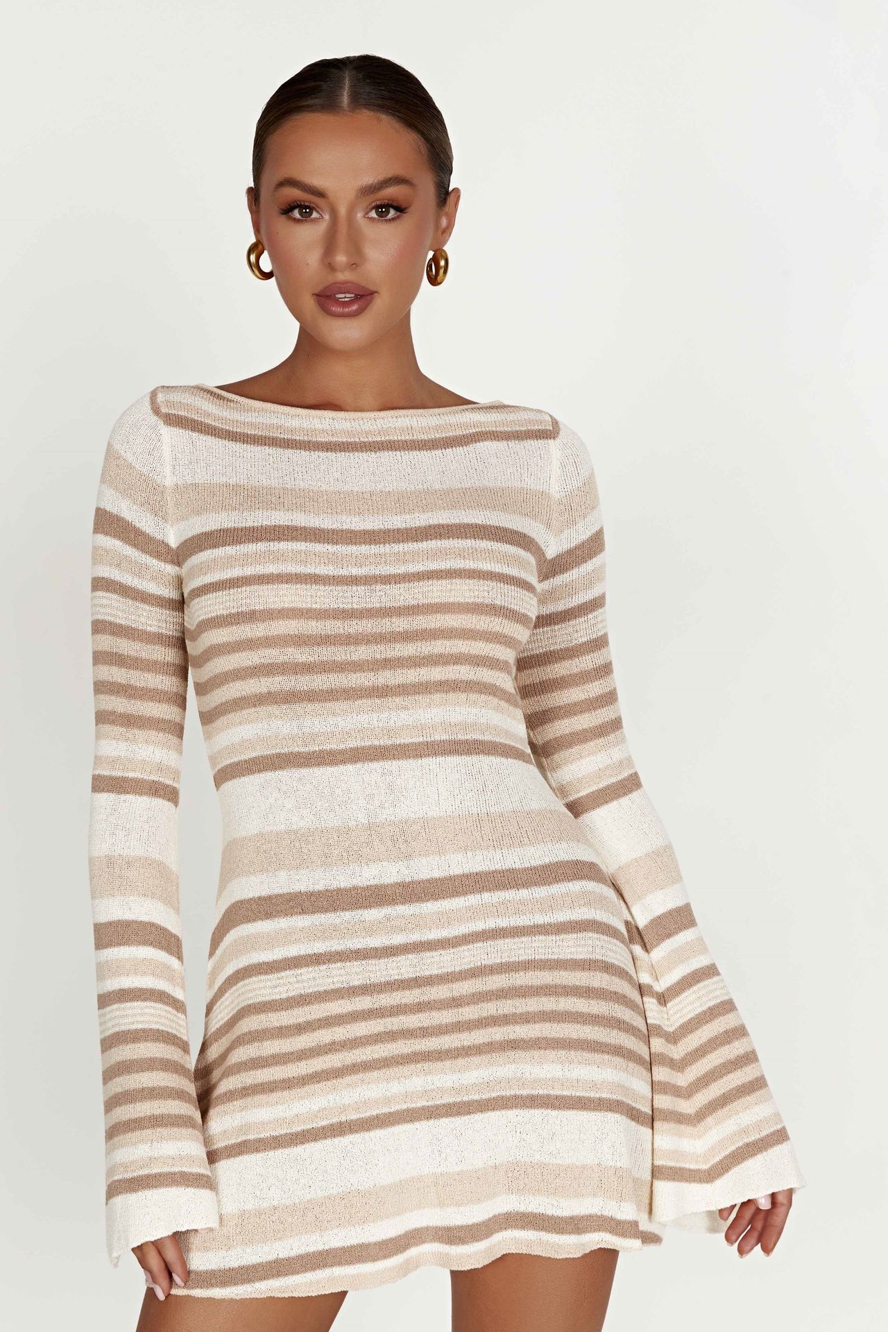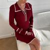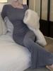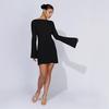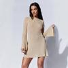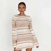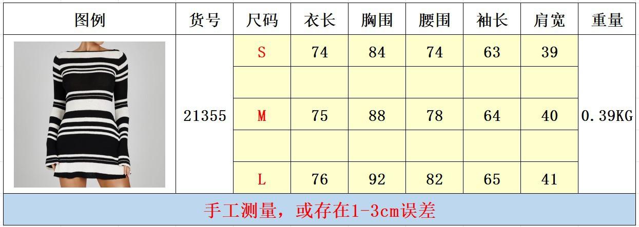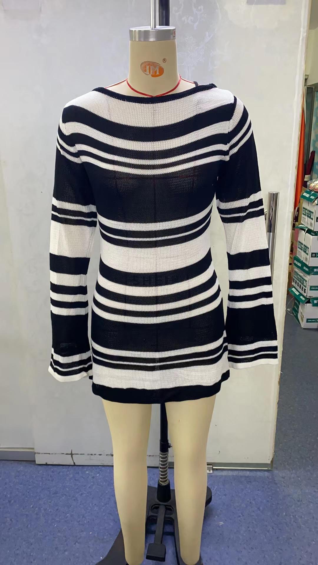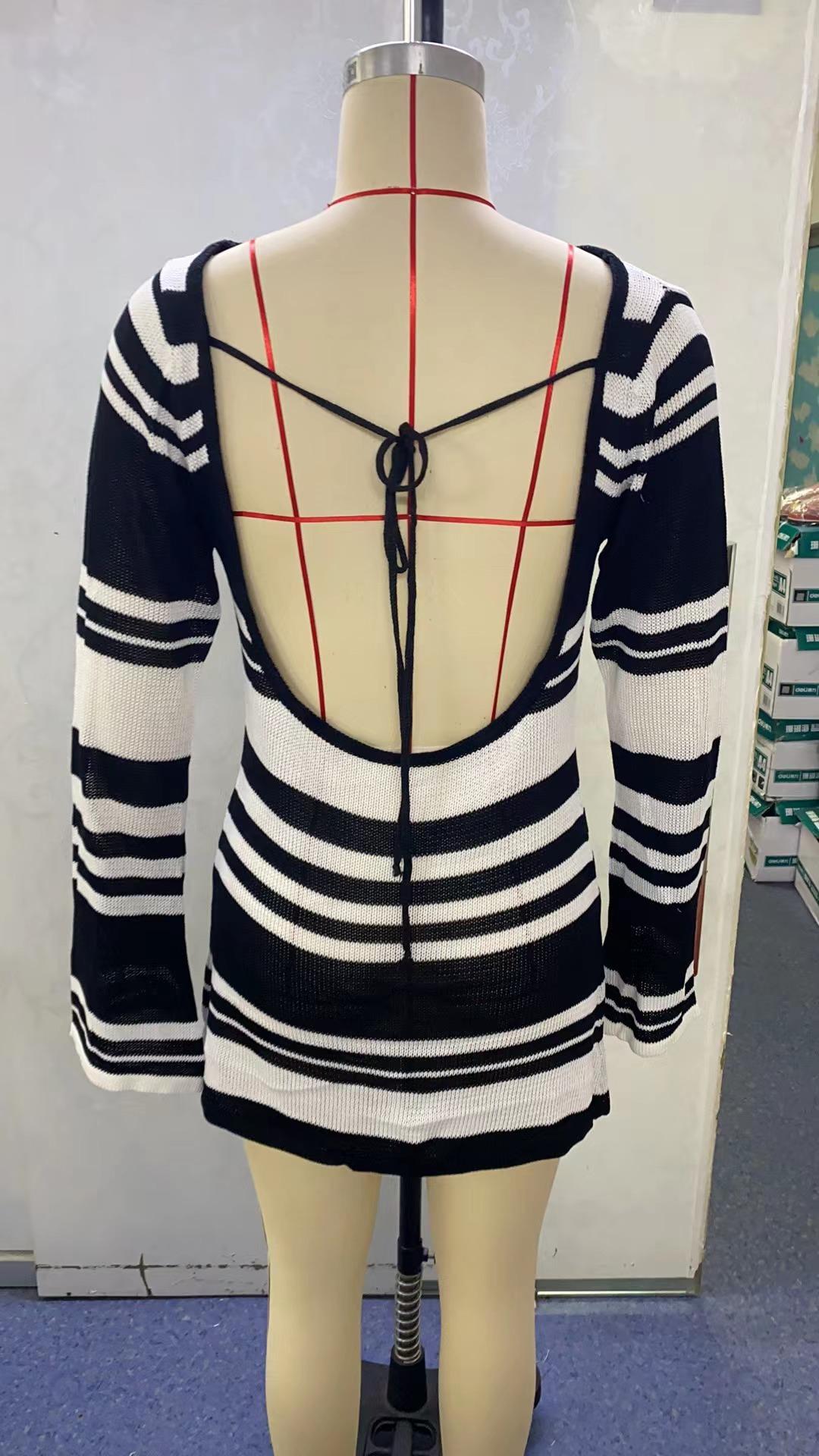 Vestido de Otoño Nuevo Elegante para Mujer Europea y Americana con Manga Trompeta, Espalda Descubierta, Combinación de Colores a Rayas, Tejido de Punto Ajustado, Adelgazante, Cintura Alta