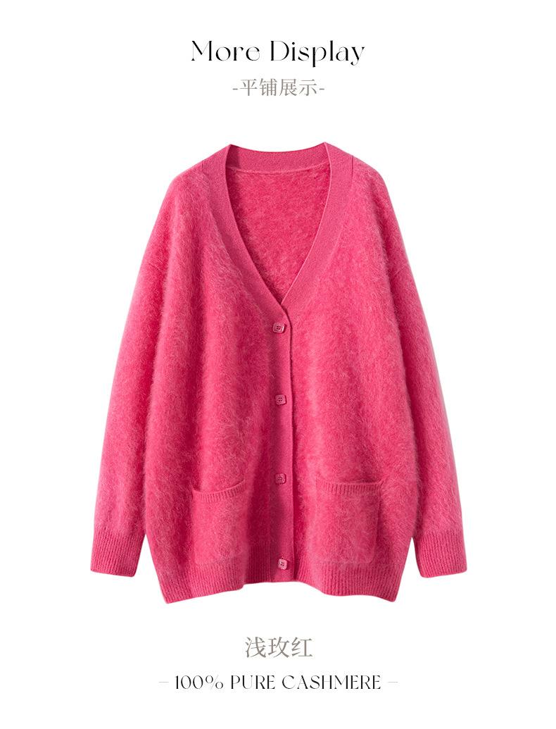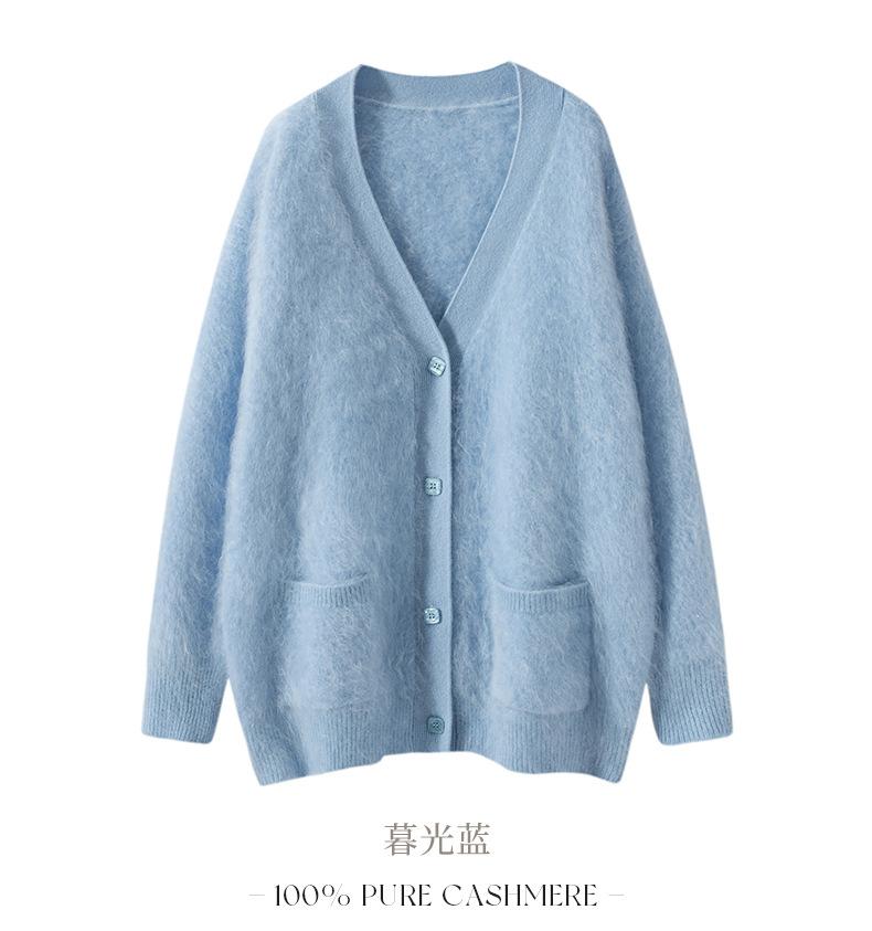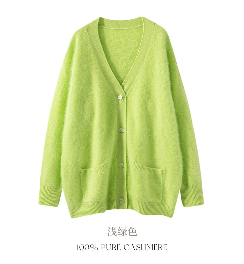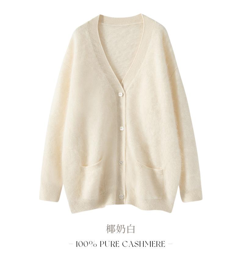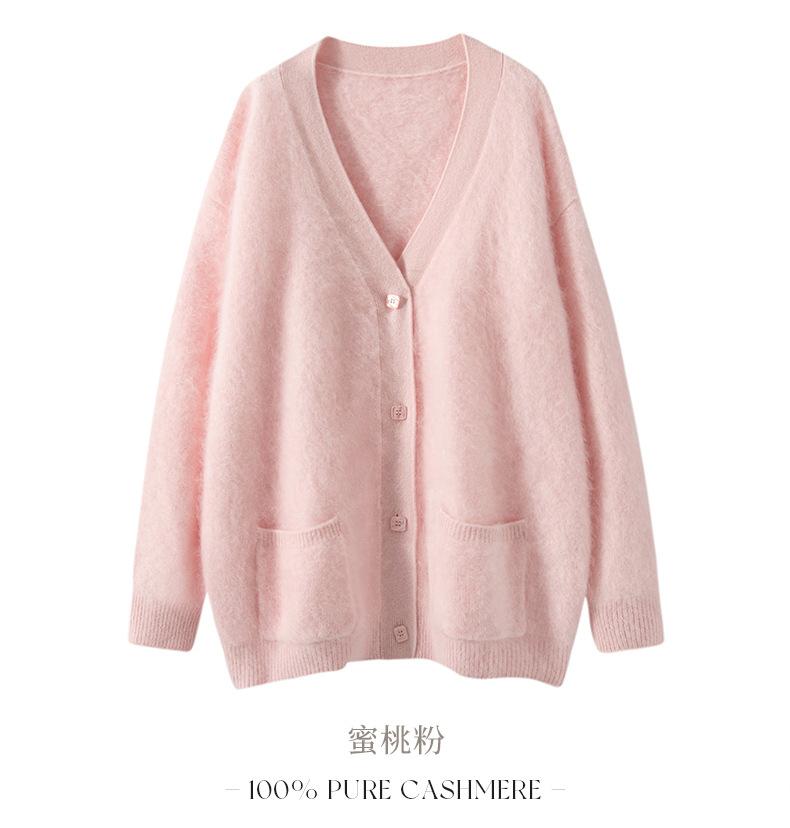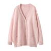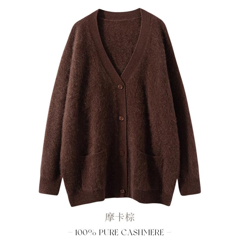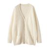 Cárdigan grueso de doble hebra cepillado 100% Cachemira Pura con cuello en V para mujer, Suéter de punto suave y acogedor, Ropa exterior holgada y versátil