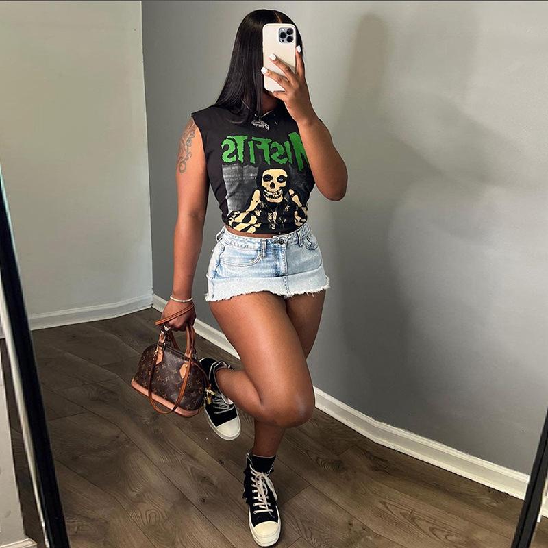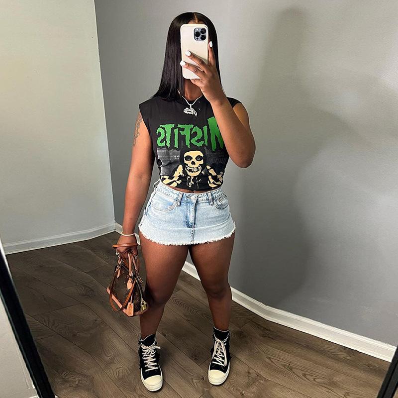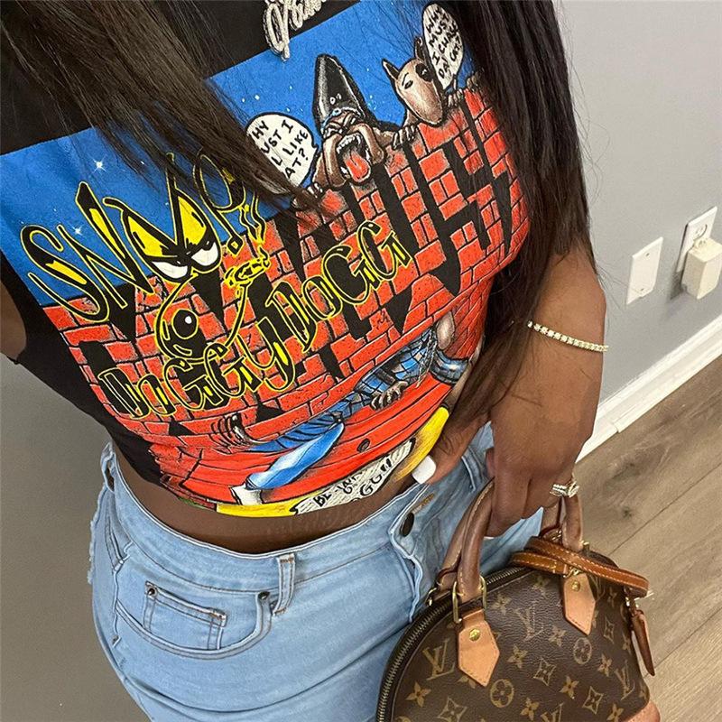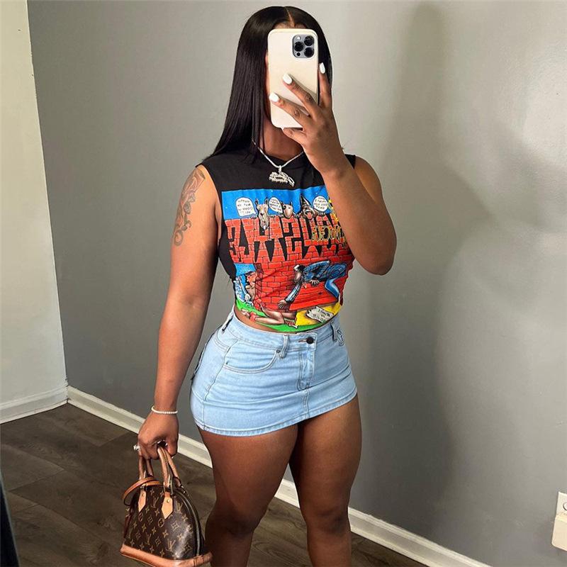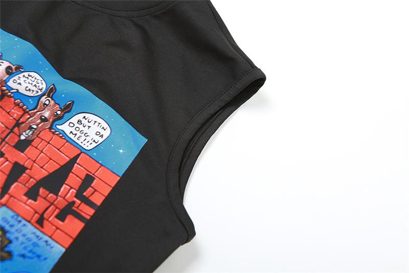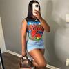 Exportación transfronteriza europea y americana 2024 Verano Mujer Nueva Camiseta sin mangas corta ajustada con estampado de dibujos animados sexy americana