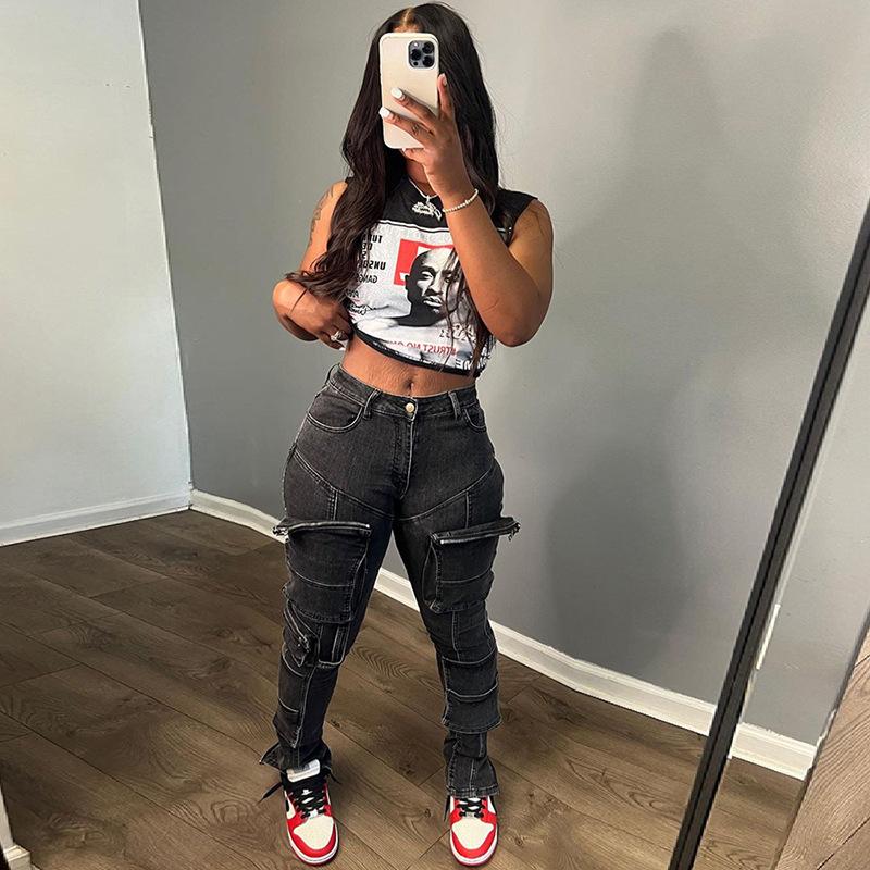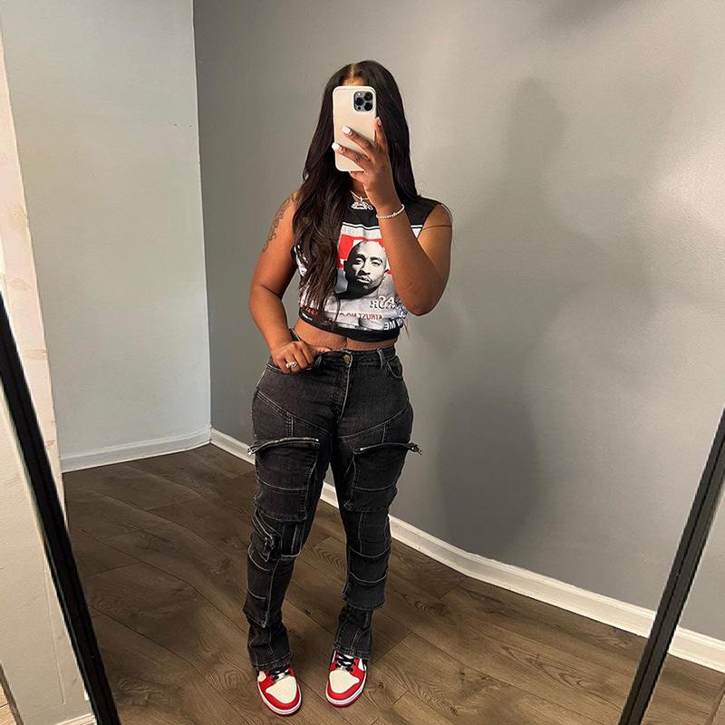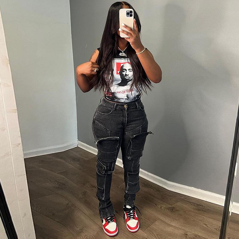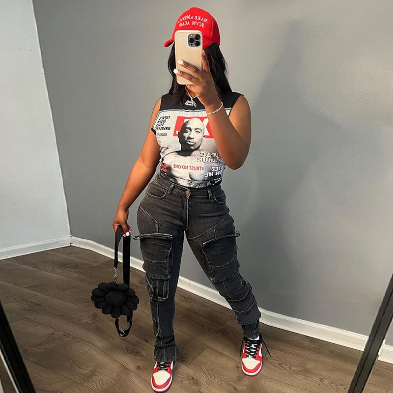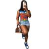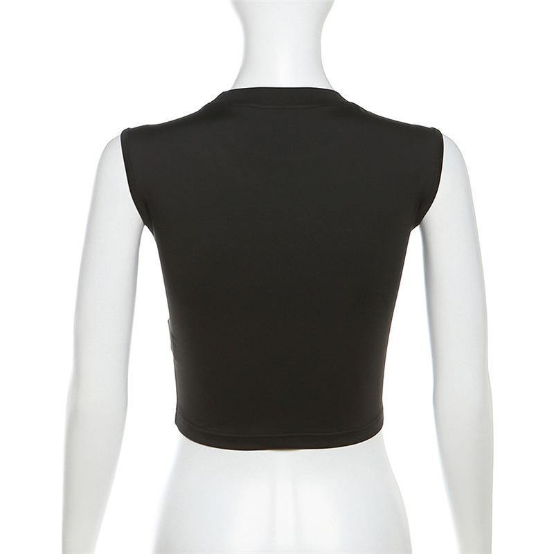 Exportación transfronteriza europea y americana 2024 Verano Mujer Nueva Camiseta sin mangas corta ajustada con estampado de dibujos animados sexy americana