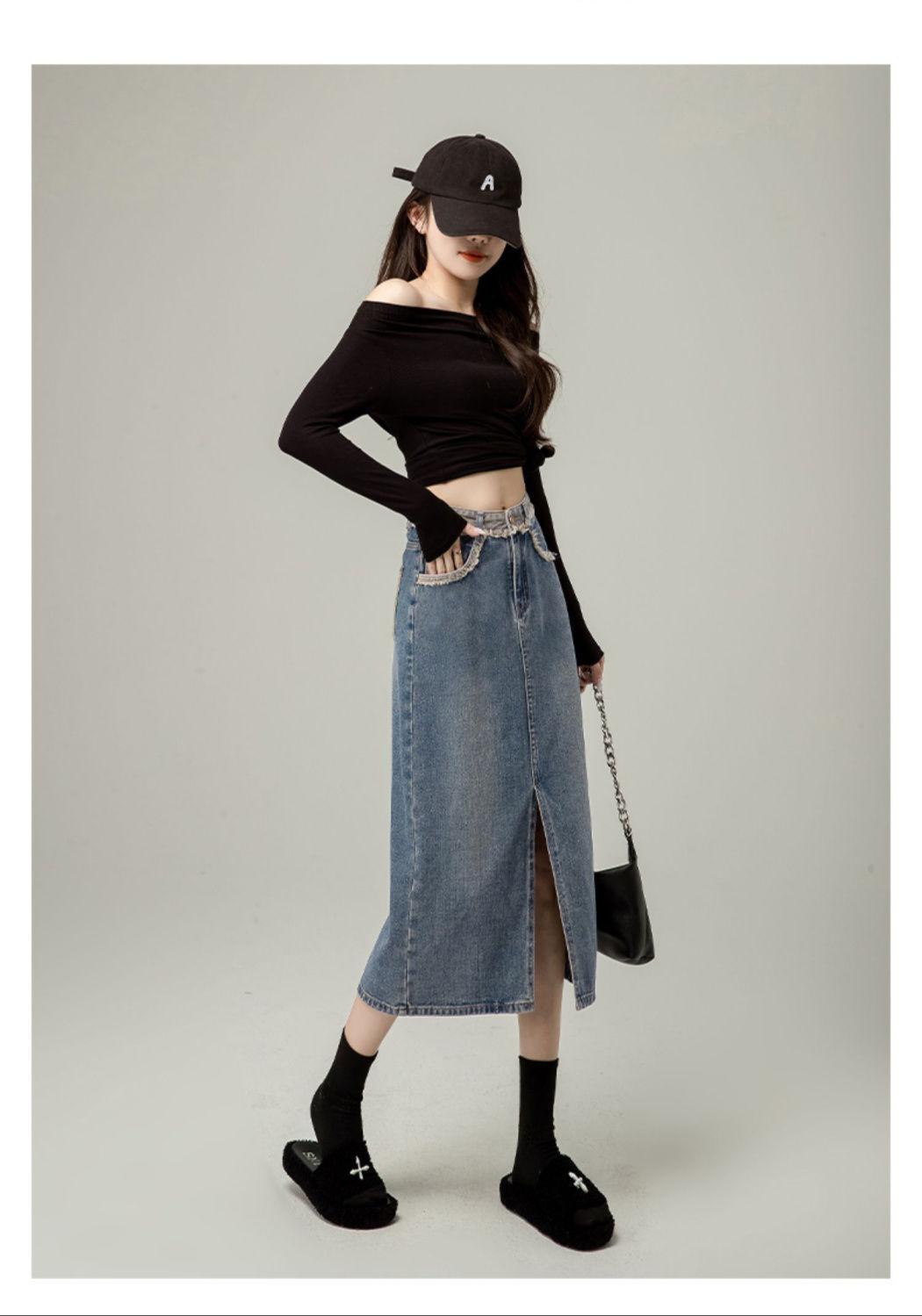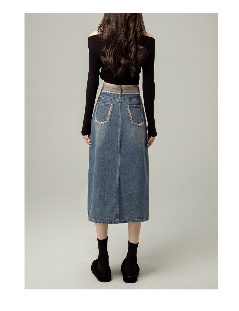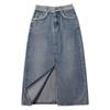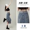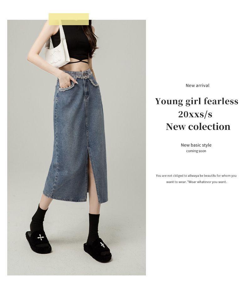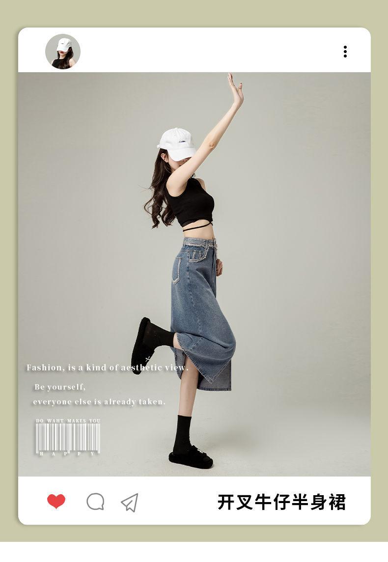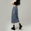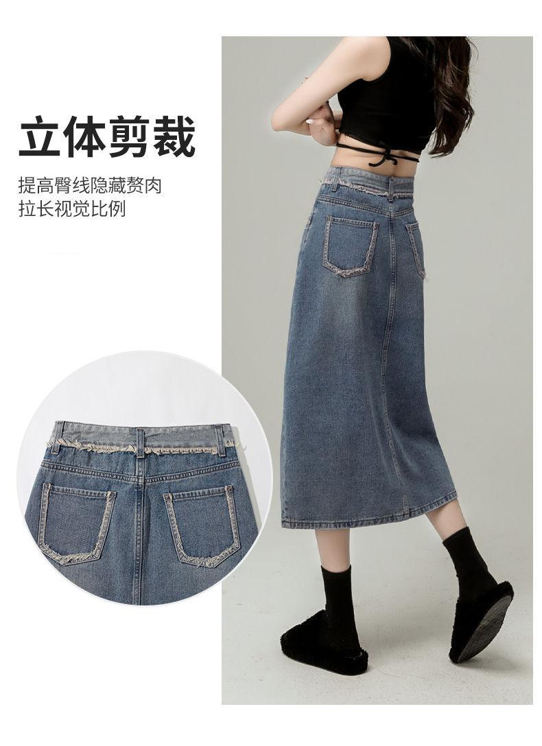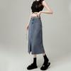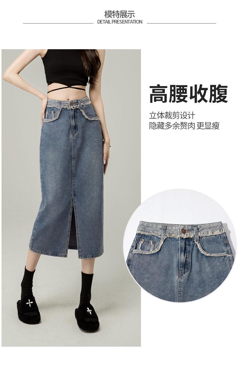 Falda vaquera de cintura alta con abertura para mujer, nueva primavera y otoño 2024, de longitud media, con corte en A y caderas pequeñas.