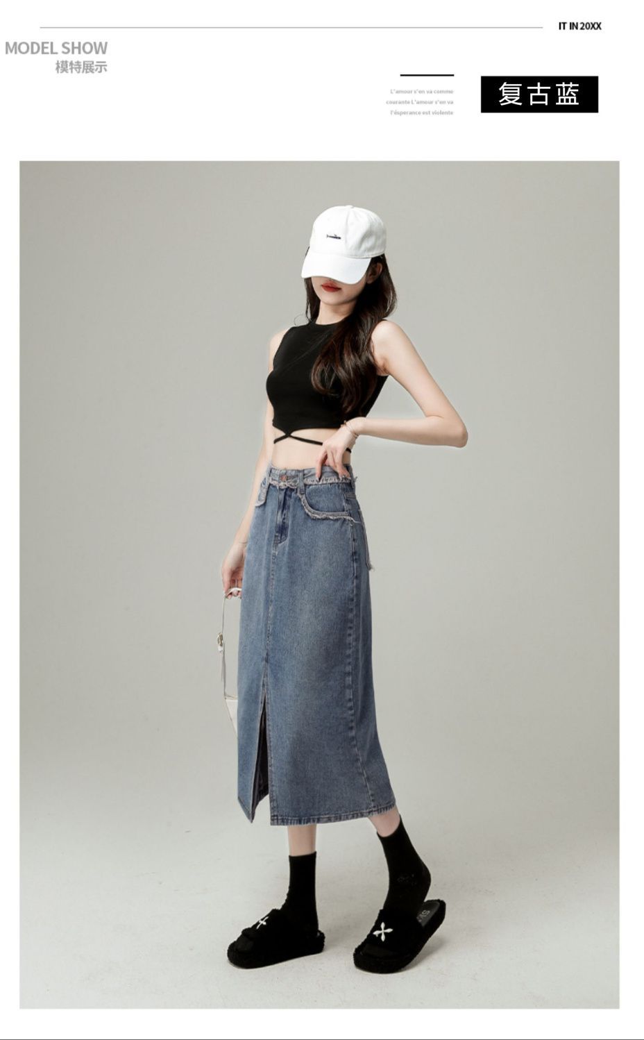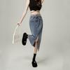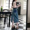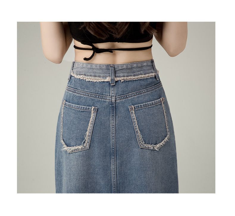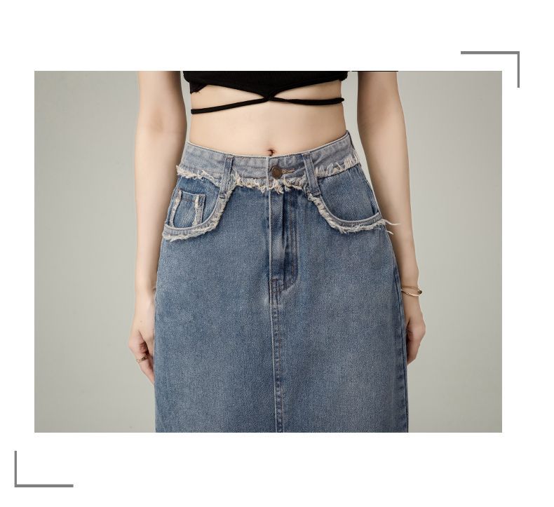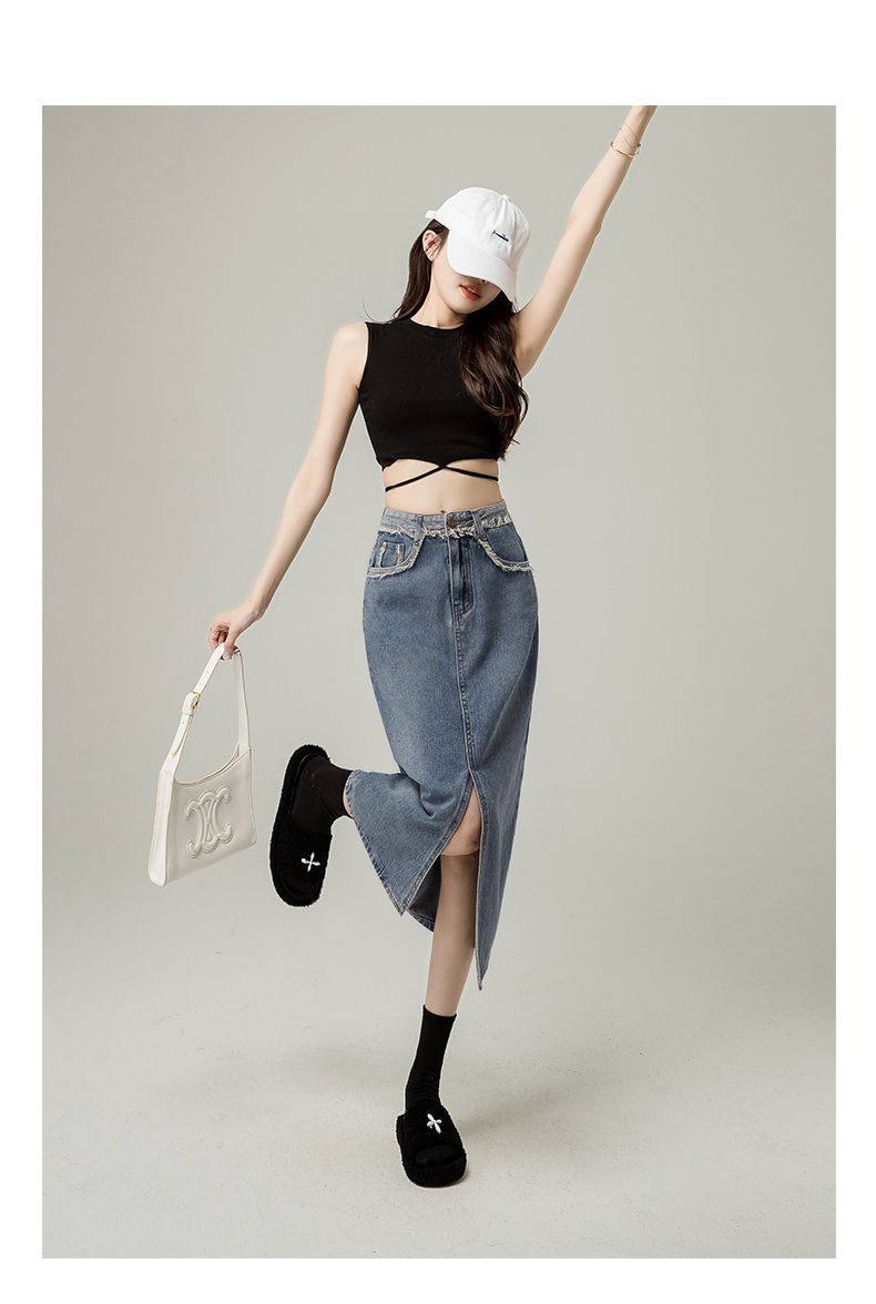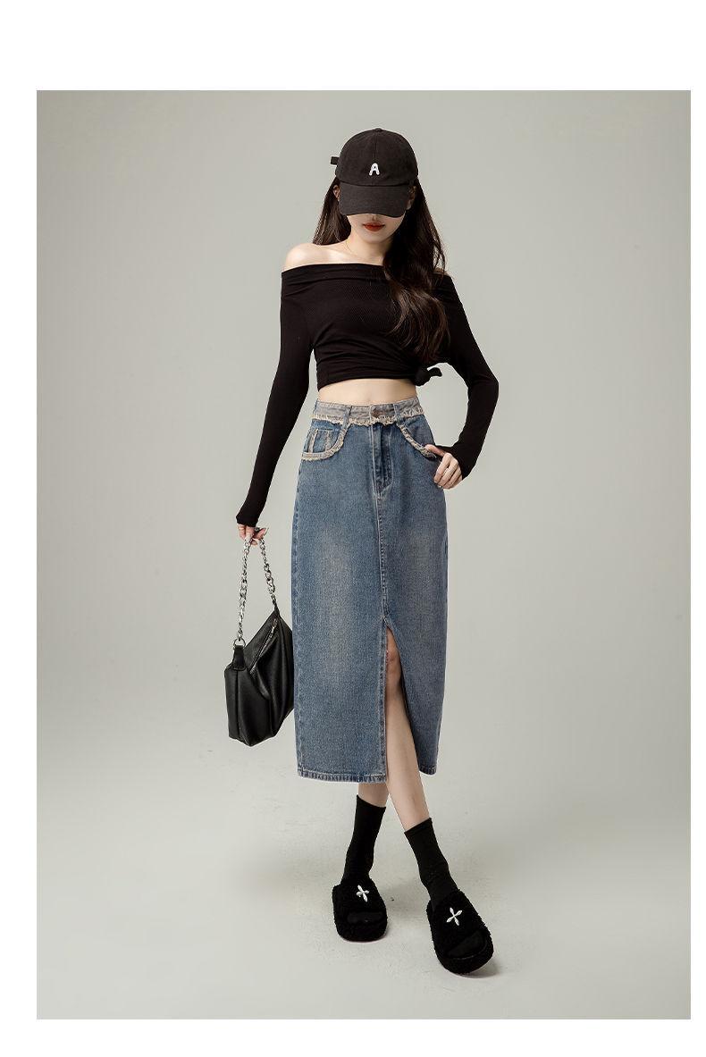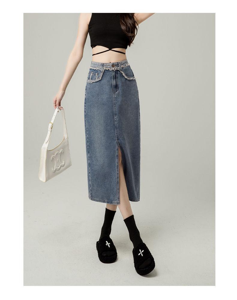 Falda vaquera de cintura alta con abertura para mujer, nueva primavera y otoño 2024, de longitud media, con corte en A y caderas pequeñas.