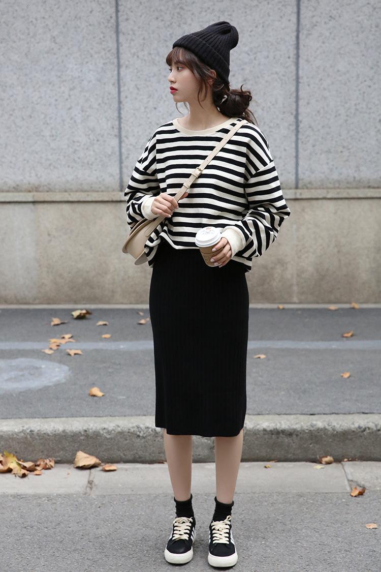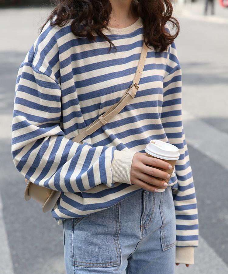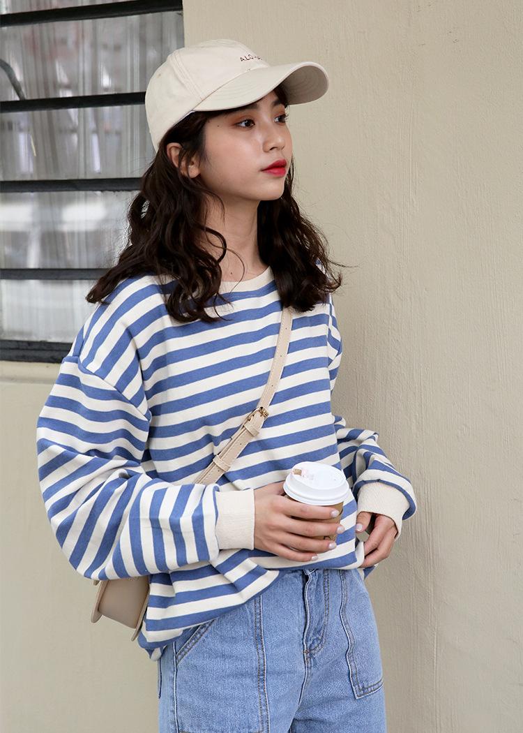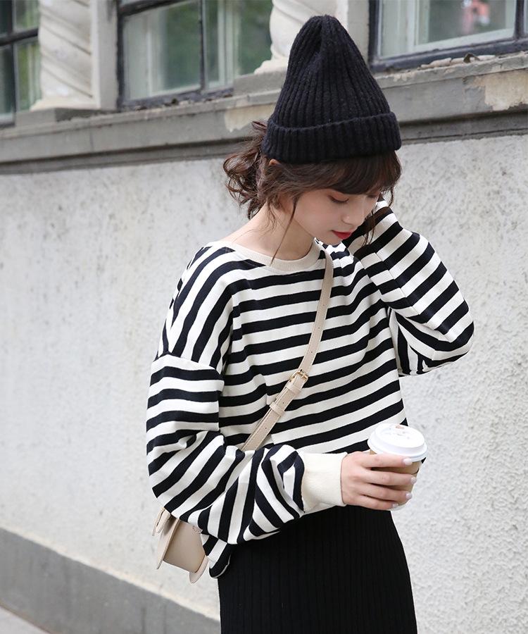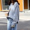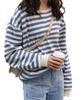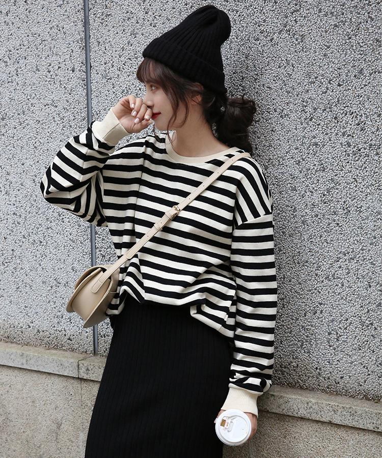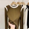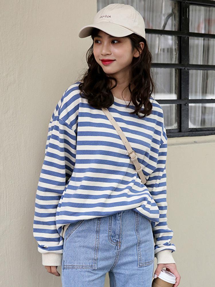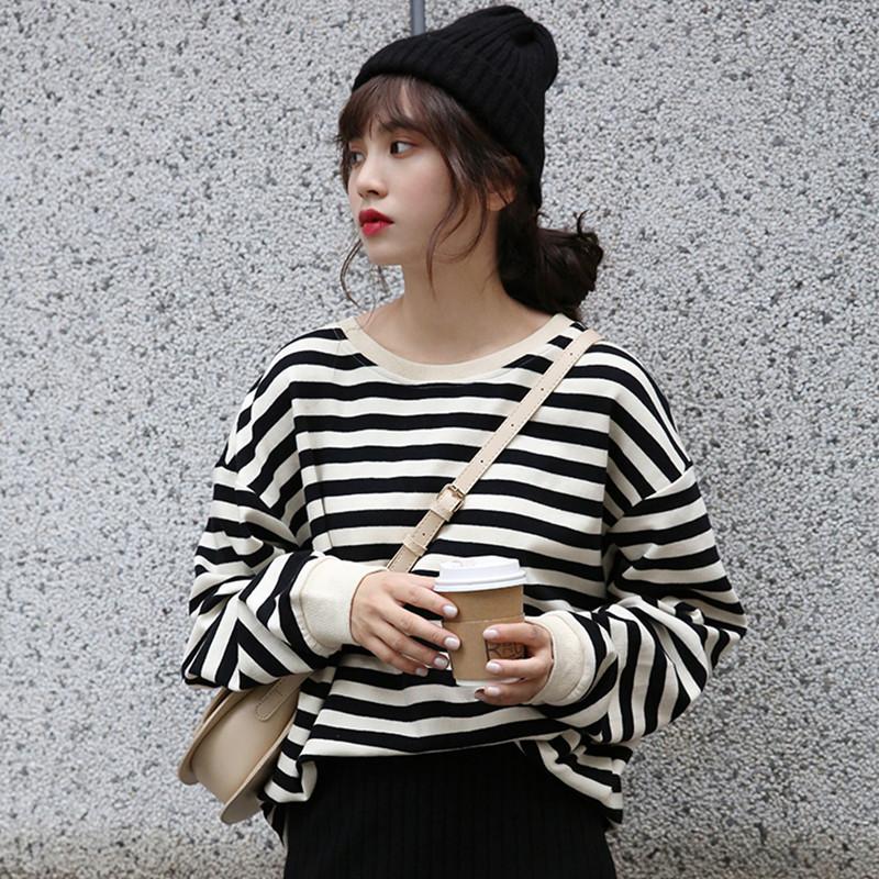 Camiseta interior de manga larga para mujer, diseño holgado a rayas, primavera y otoño 2021