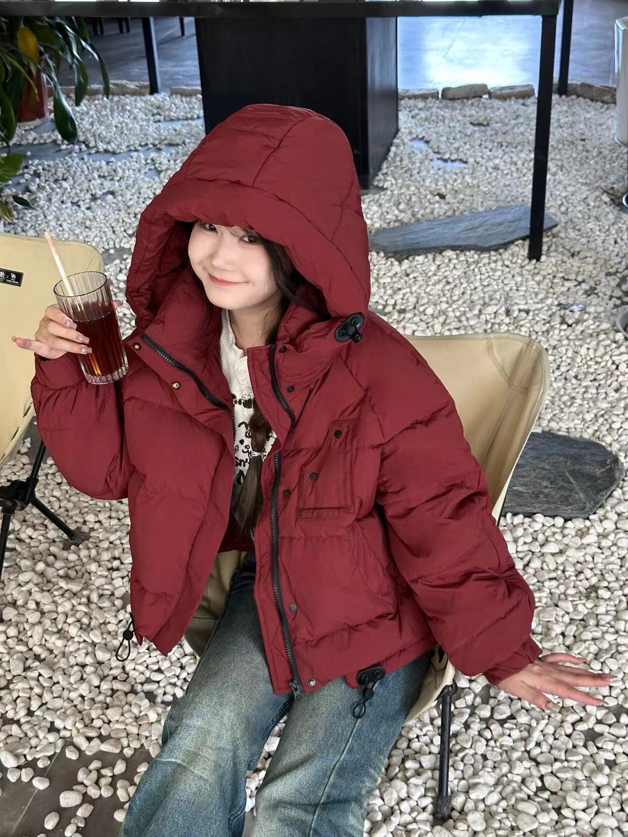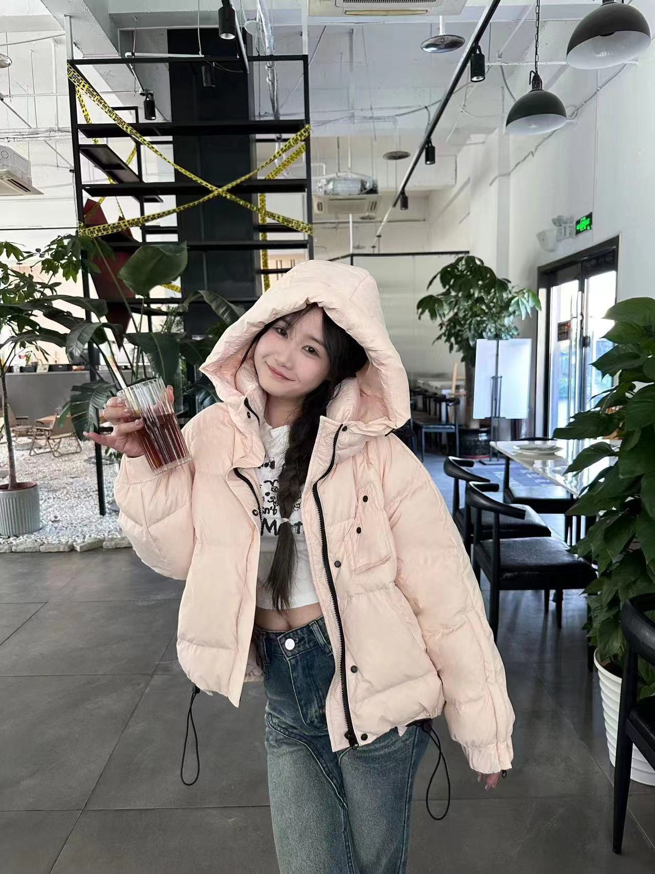 Chaqueta de plumón de invierno, nueva, corta, estilo coreano, holgada, con capucha, resistente al viento, gruesa, con dopamina.