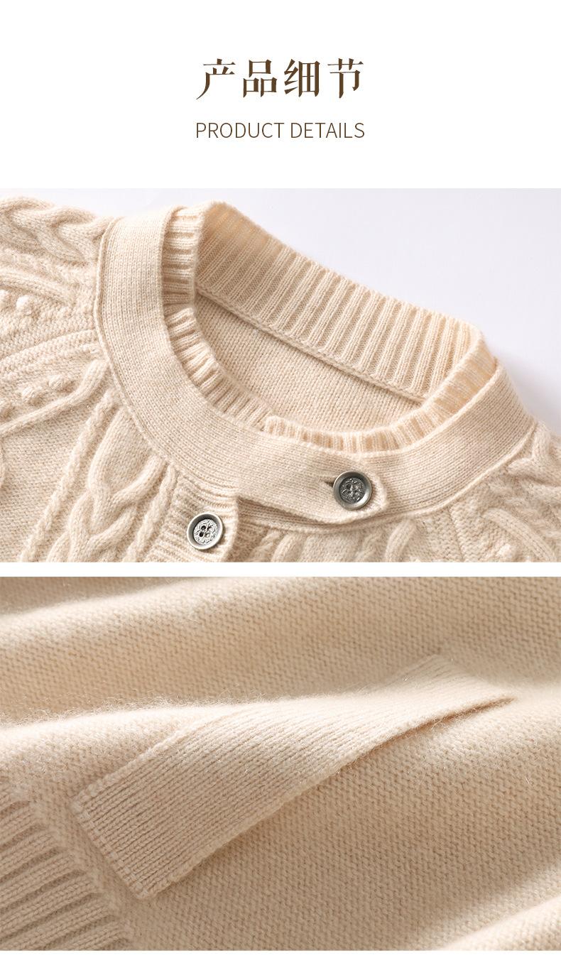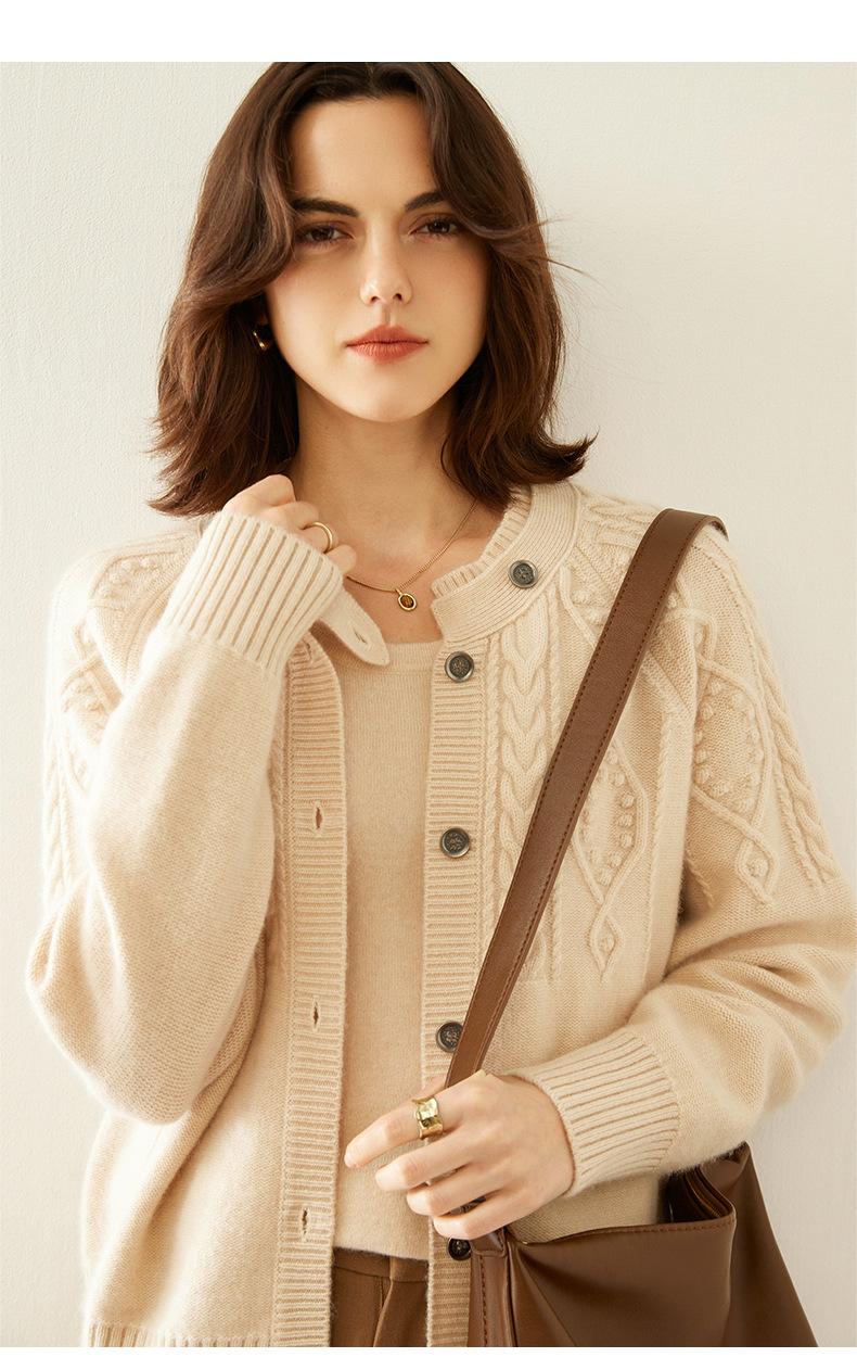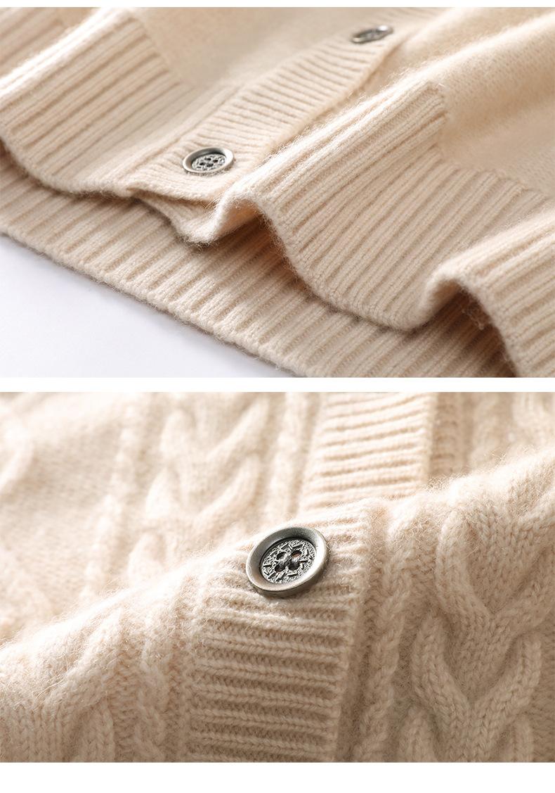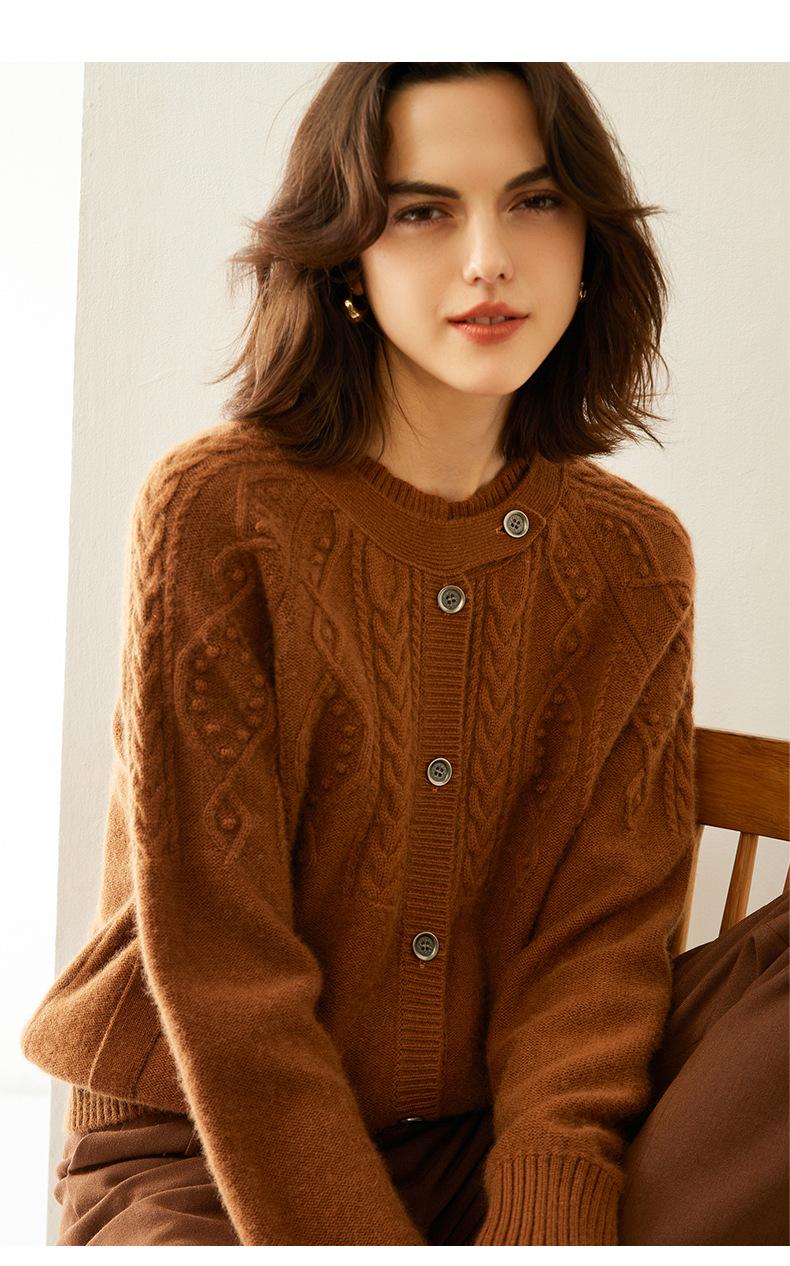 Cárdigan de punto grueso de cachemira para mujer, abrigo corto retro con parte superior retorcida, otoño e invierno 2024