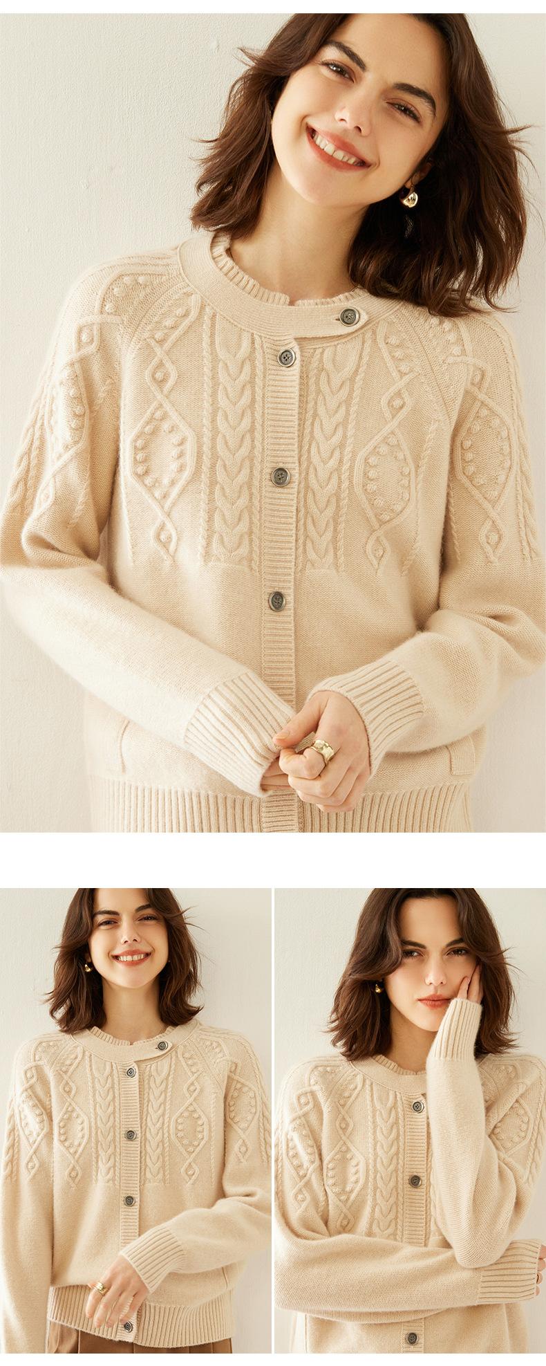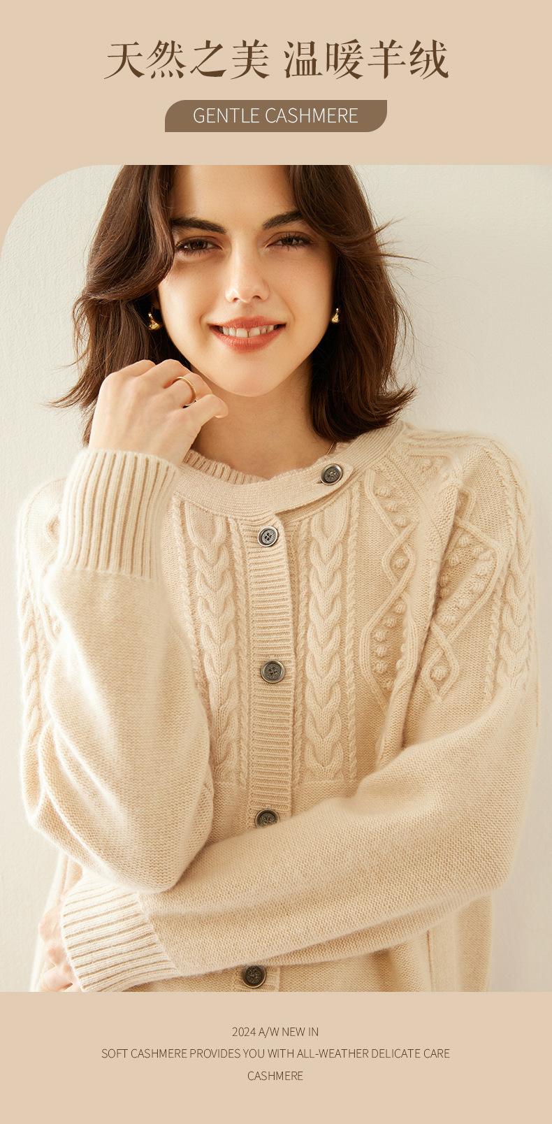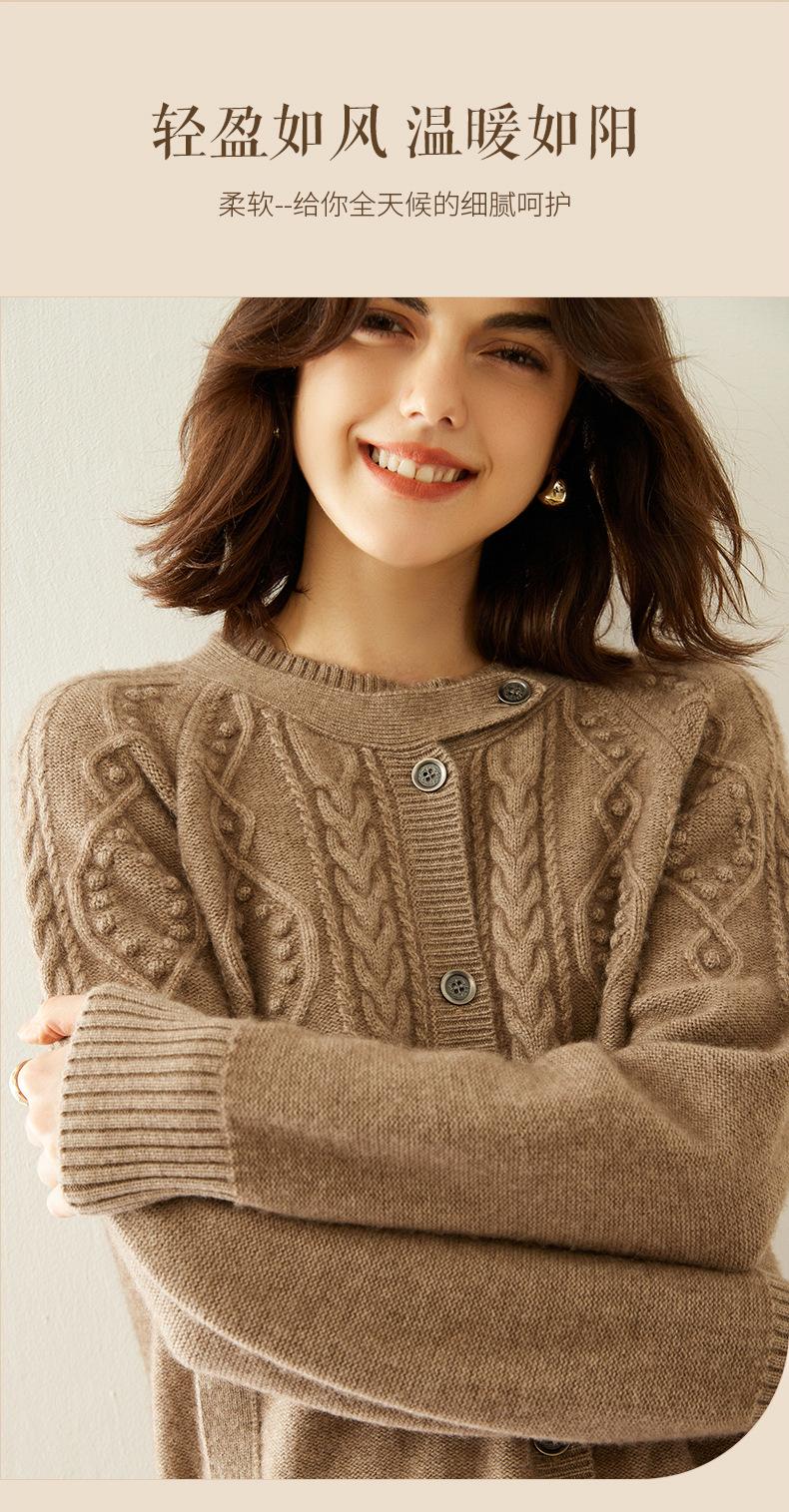 Cárdigan de punto grueso de cachemira para mujer, abrigo corto retro con parte superior retorcida, otoño e invierno 2024