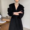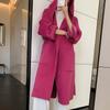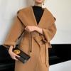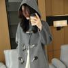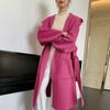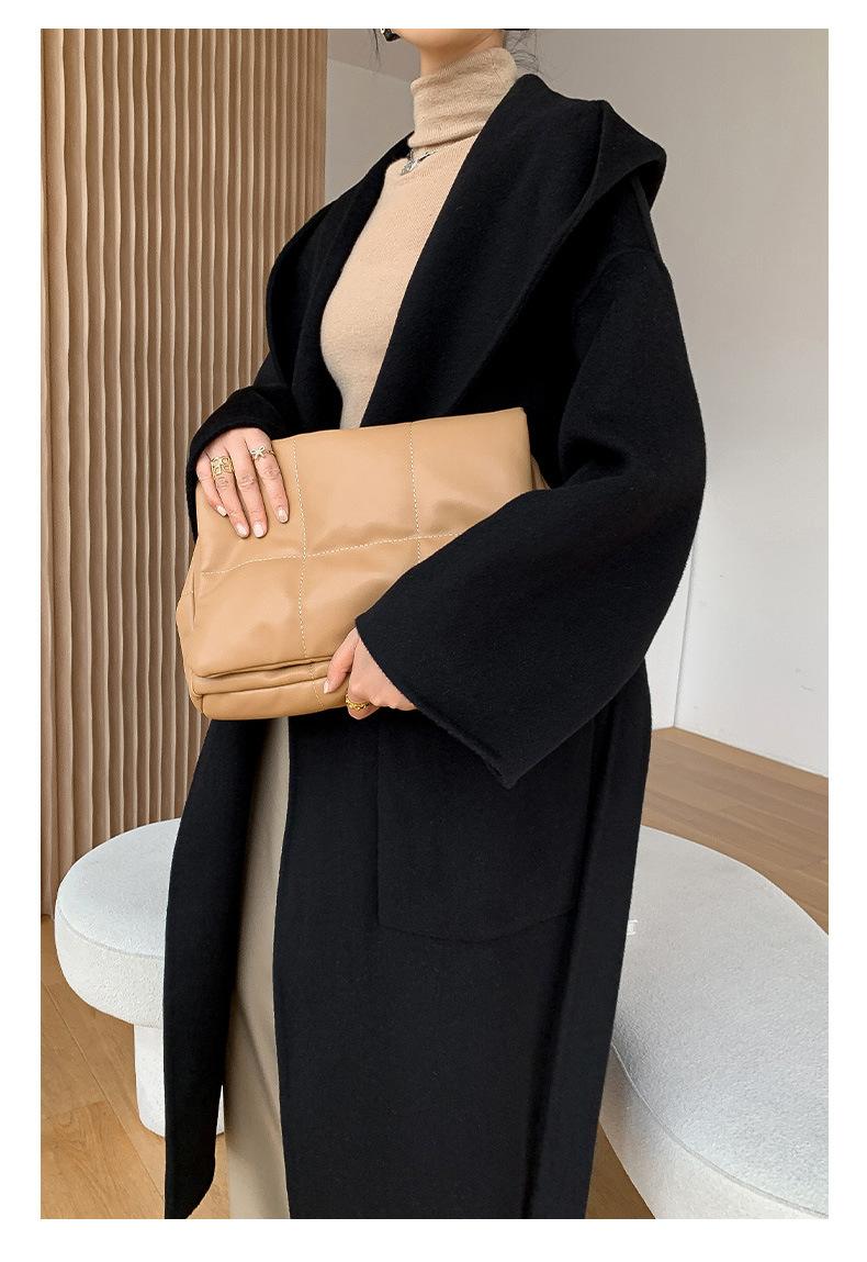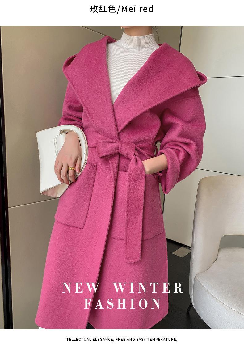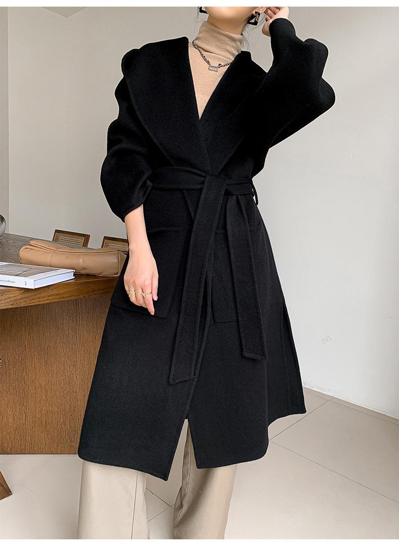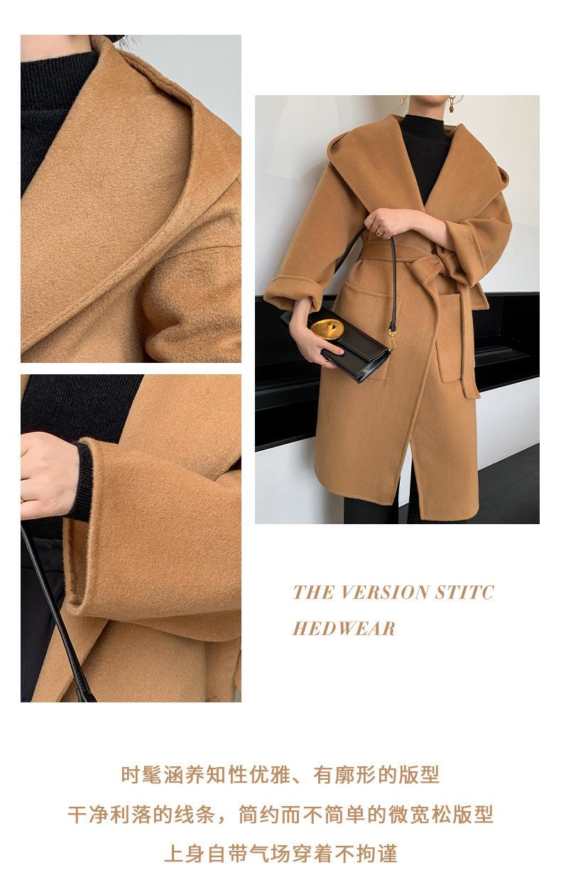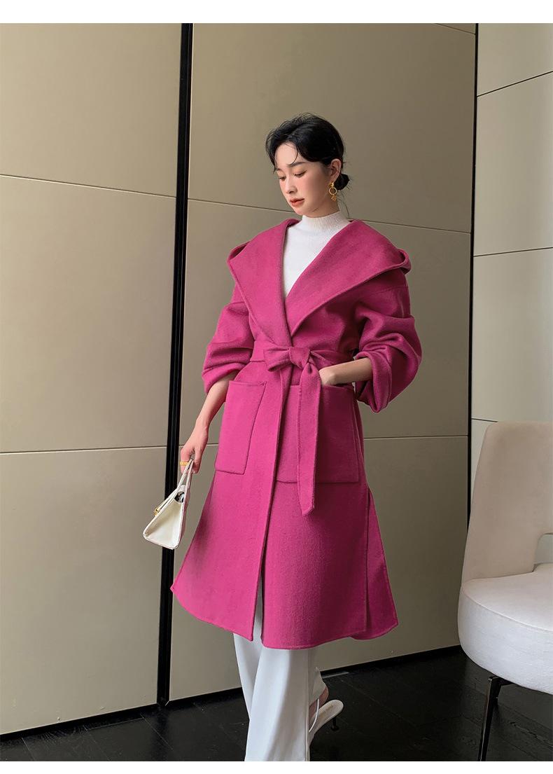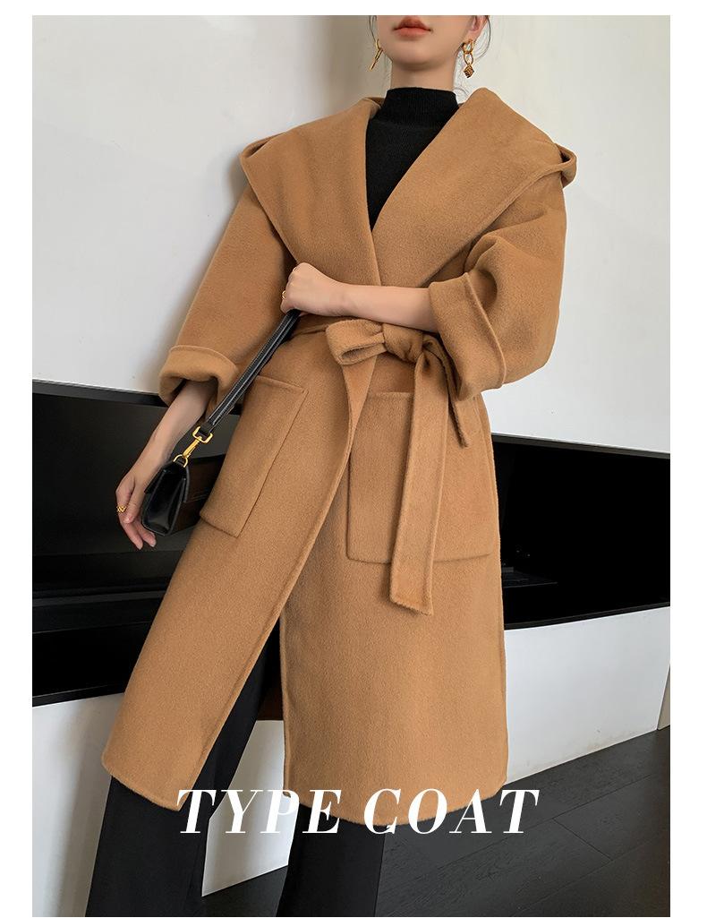 Abrigo de Lana Pura Tejido con Capucha para Mujer, Moderno, Holgado, Elegante, Sencillo, de Manga Larga, Color Sólido, con Cordones, de Lana a Doble Cara, con Bolsillo