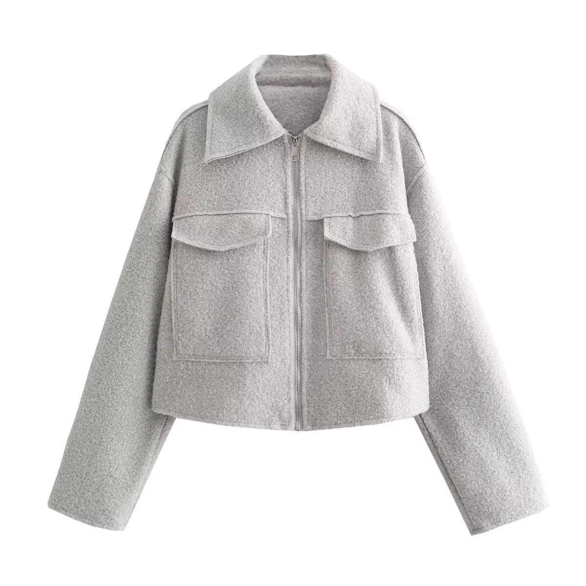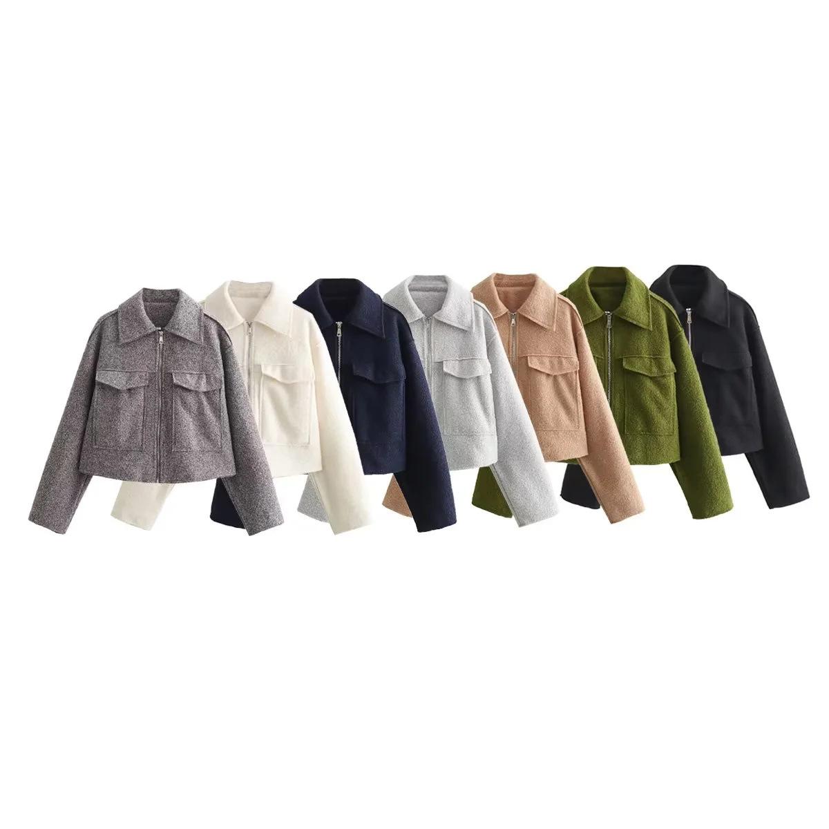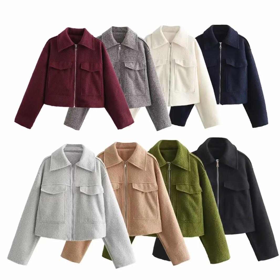 Abrigo de lana con solapa y cremallera para mujer europea y americana transfronteriza de AliExpress