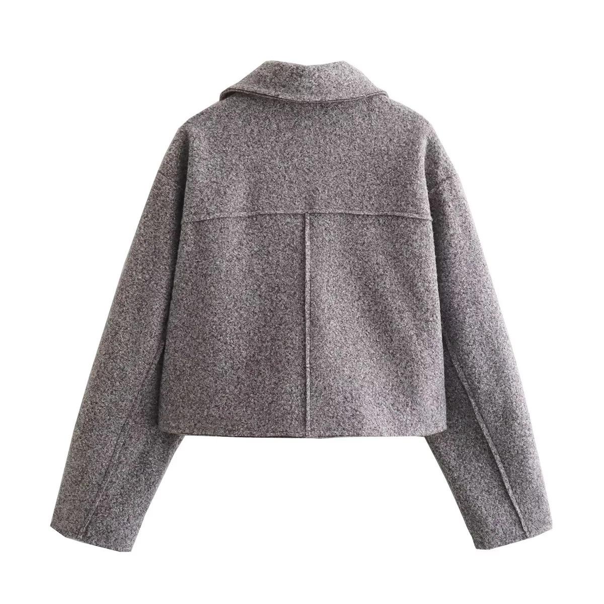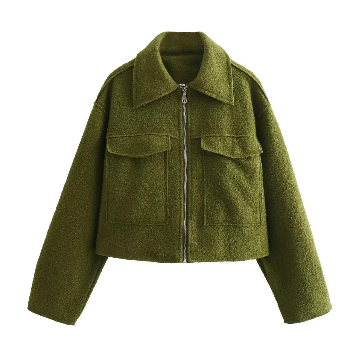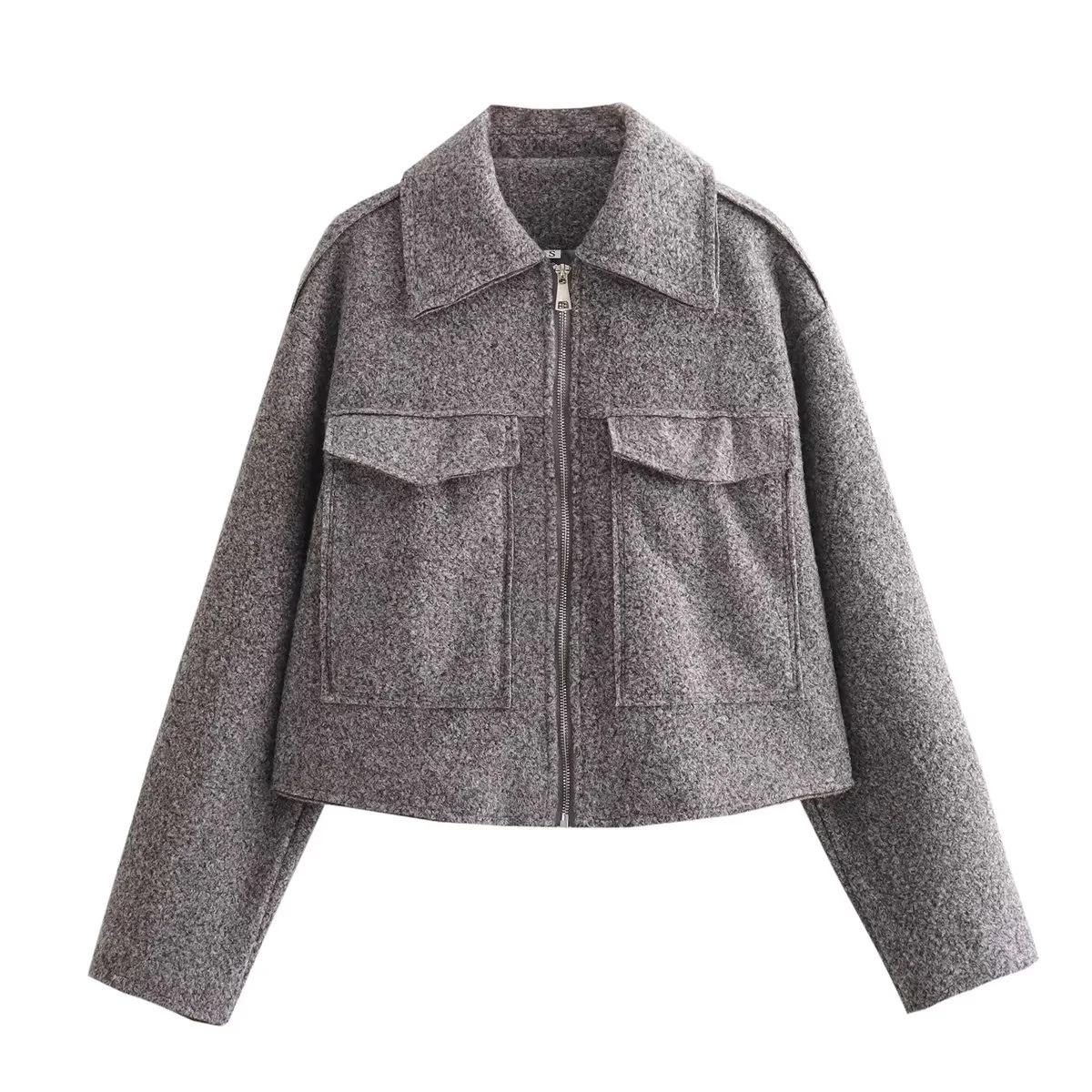 Abrigo de lana con solapa y cremallera para mujer europea y americana transfronteriza de AliExpress
