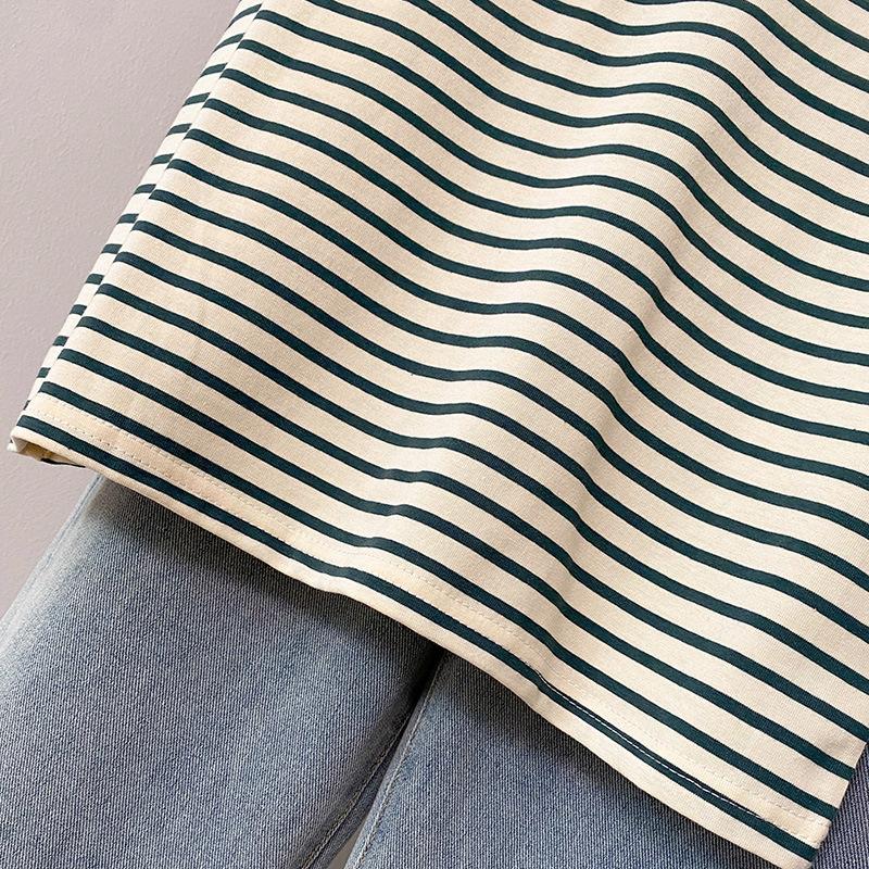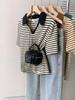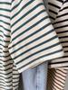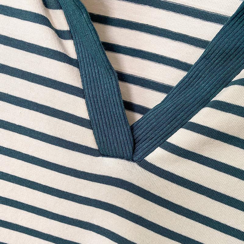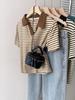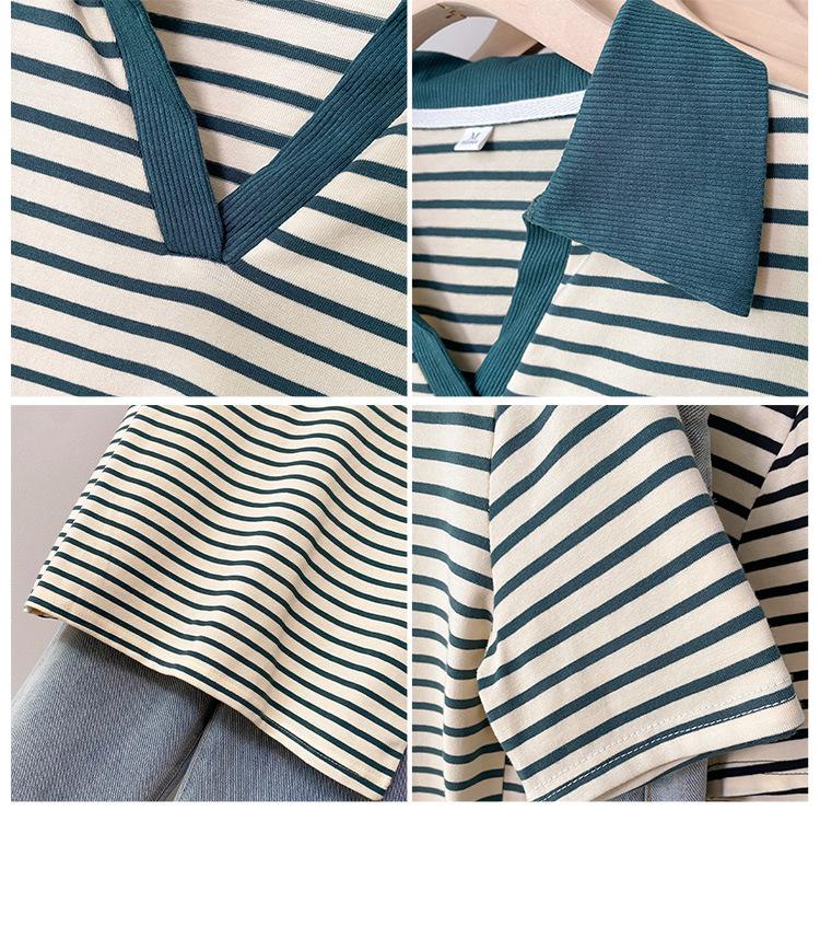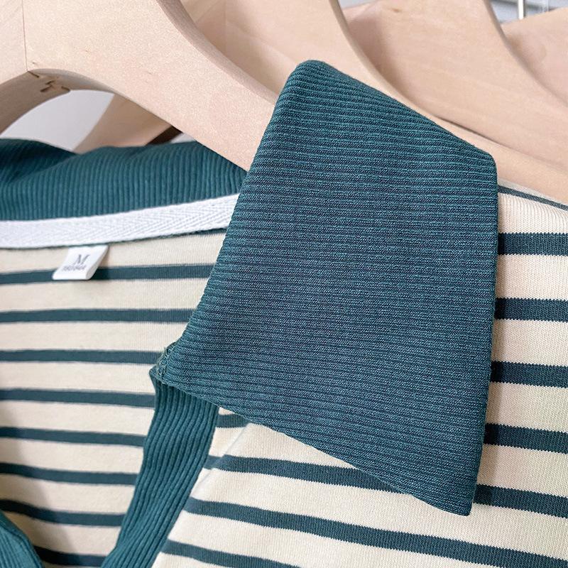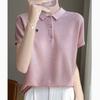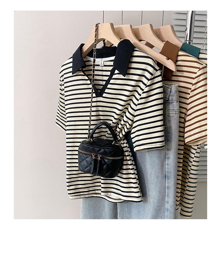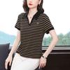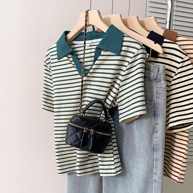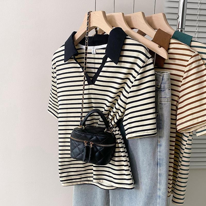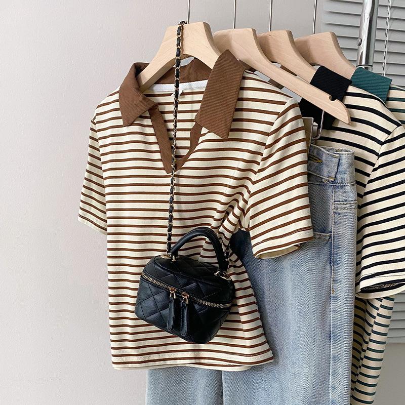 Camiseta de algodón con cuello polo y hombros descubiertos para mujer, manga corta, verano 2024, nueva camiseta vintage a rayas con solapa y media manga.