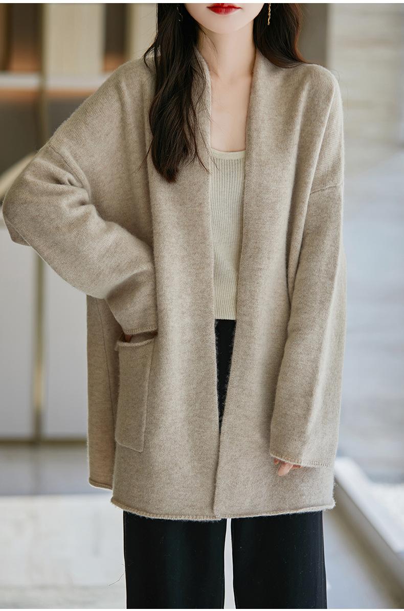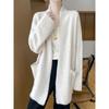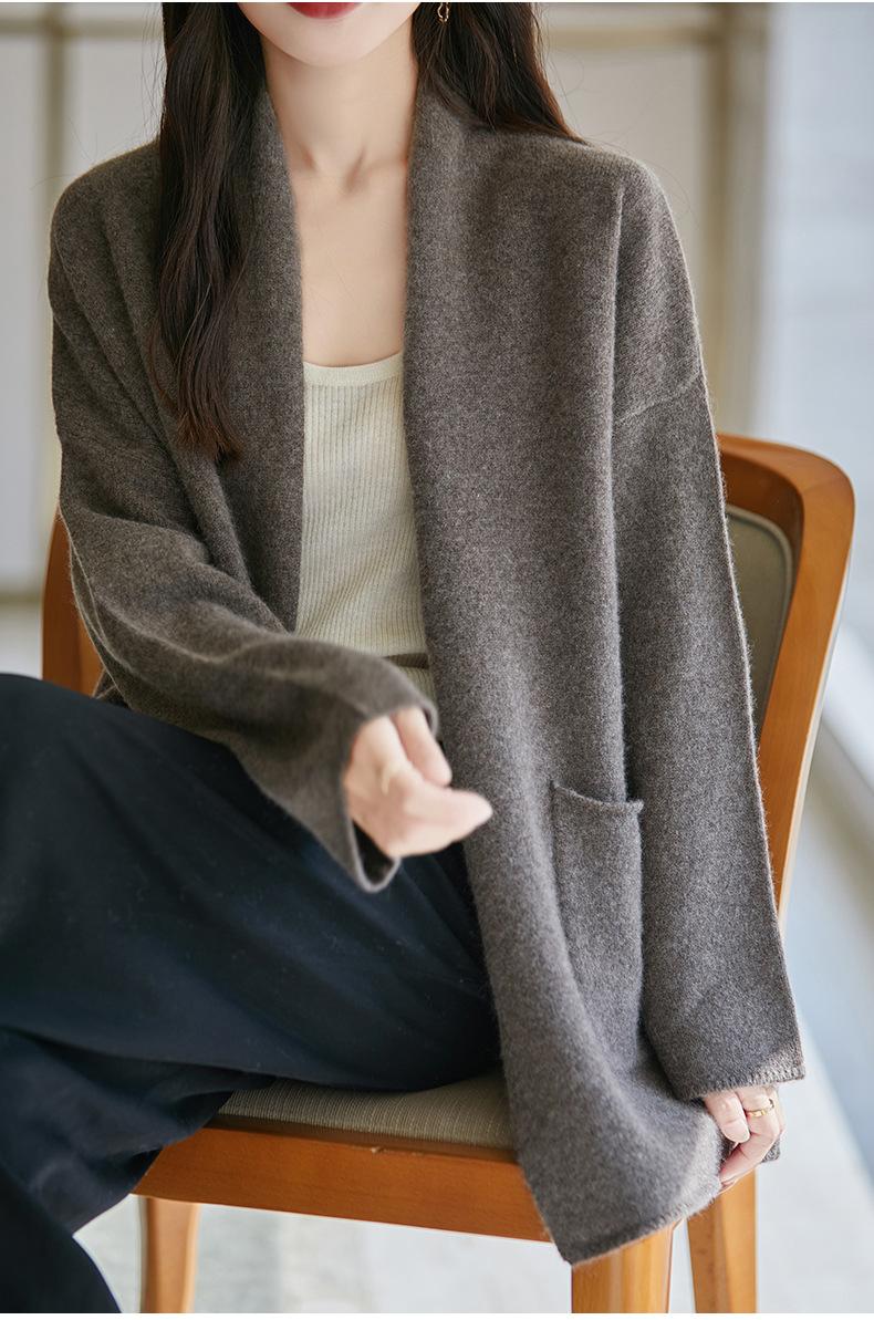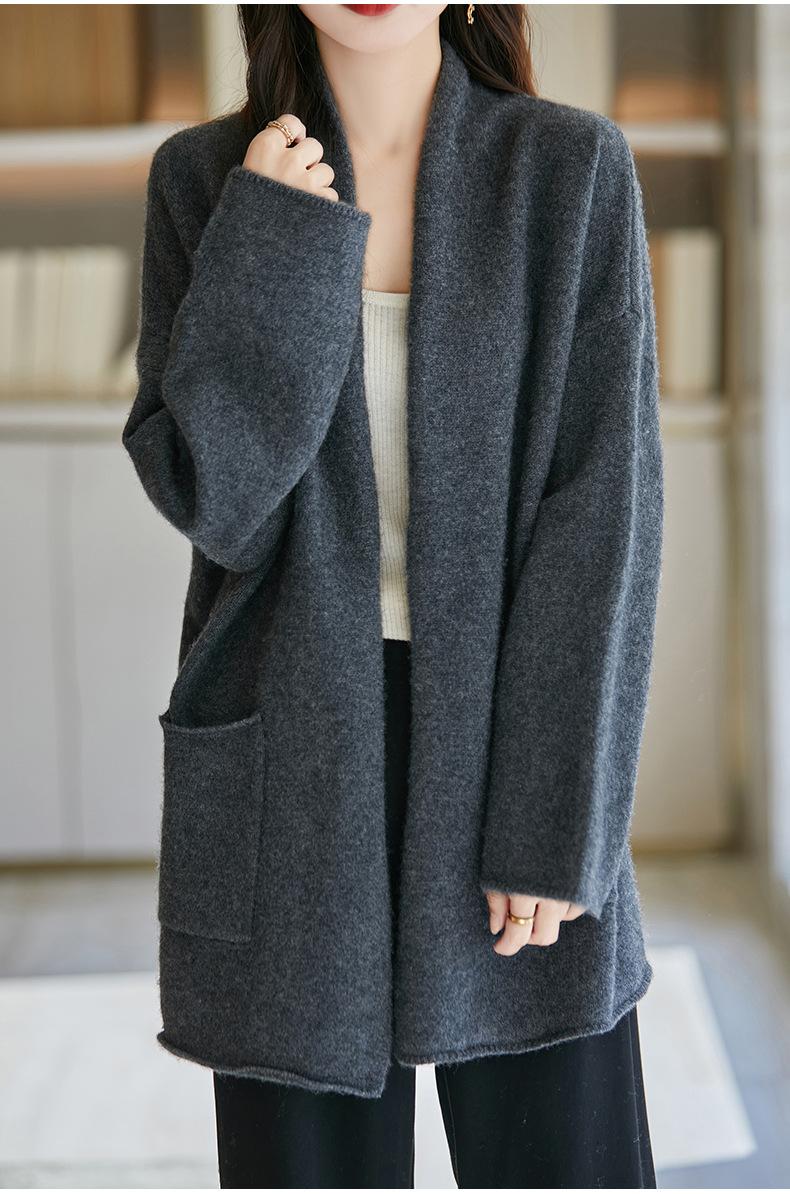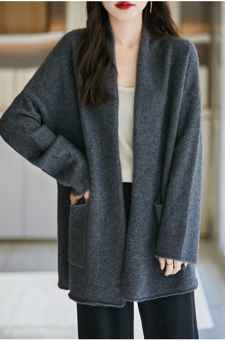 Chal de lana pura para mujer, abrigo largo medio, holgado y holgado, cárdigan exterior de punto de lana pura, nuevo para otoño e invierno.