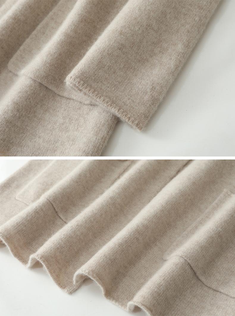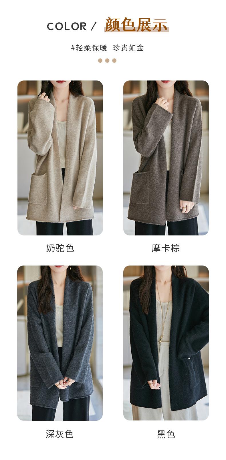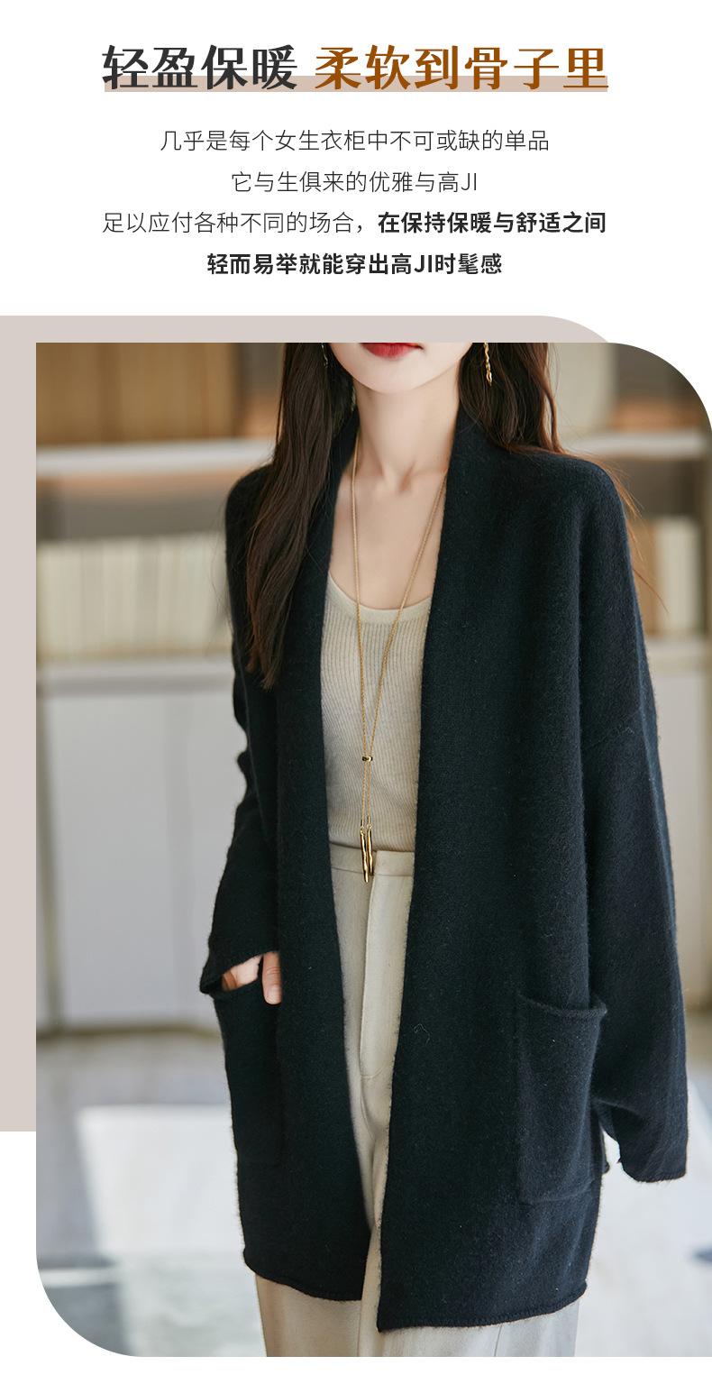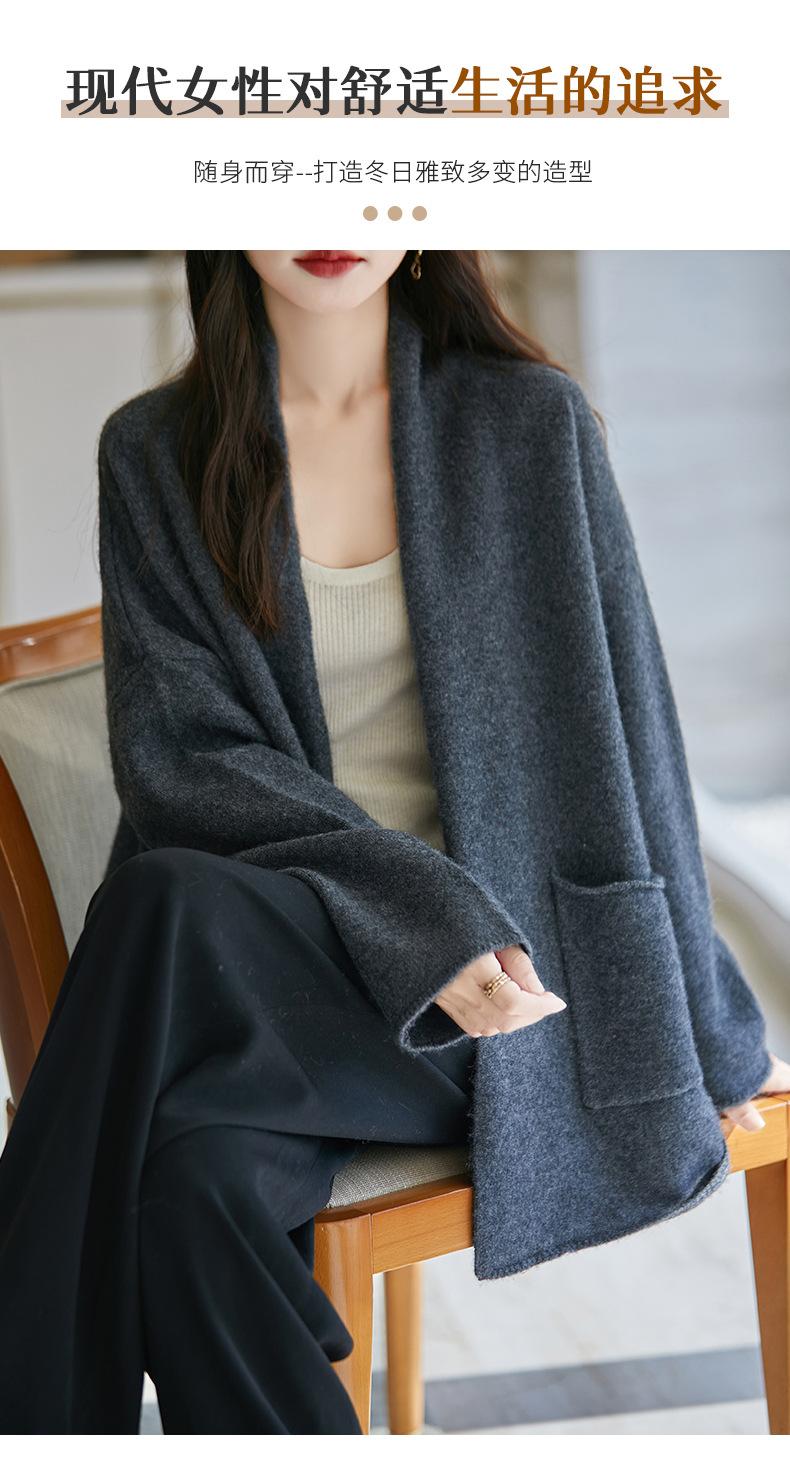Chal de lana pura para mujer, abrigo largo medio, holgado y holgado, cárdigan exterior de punto de lana pura, nuevo para otoño e invierno.