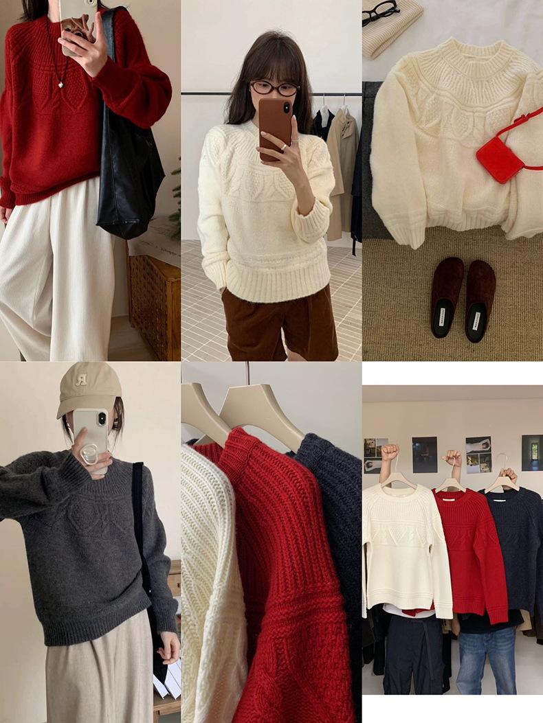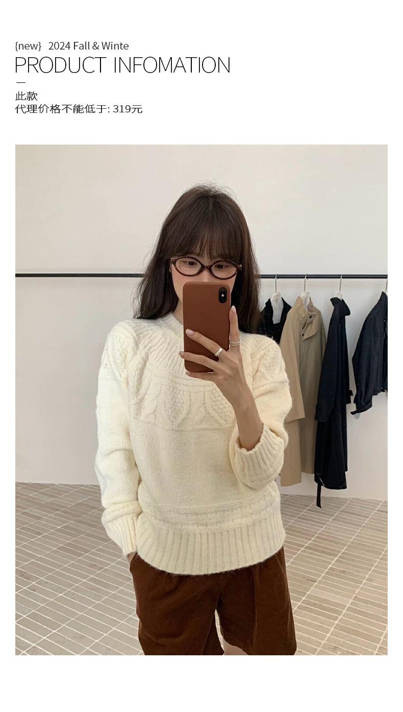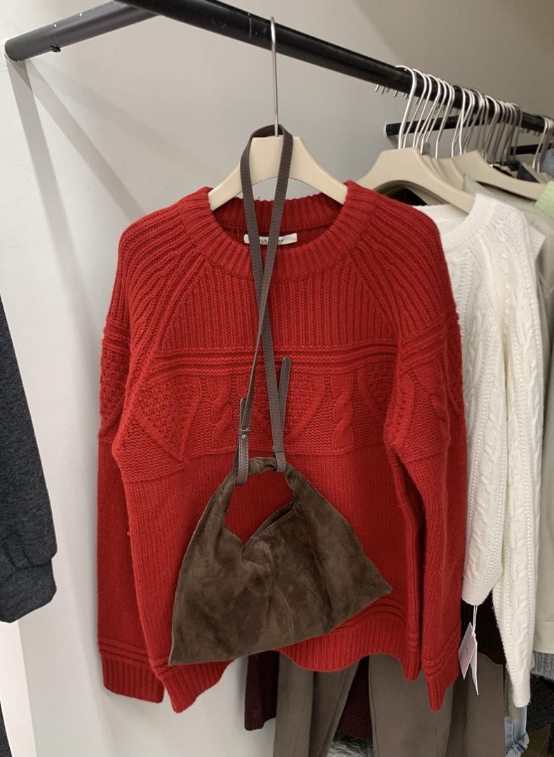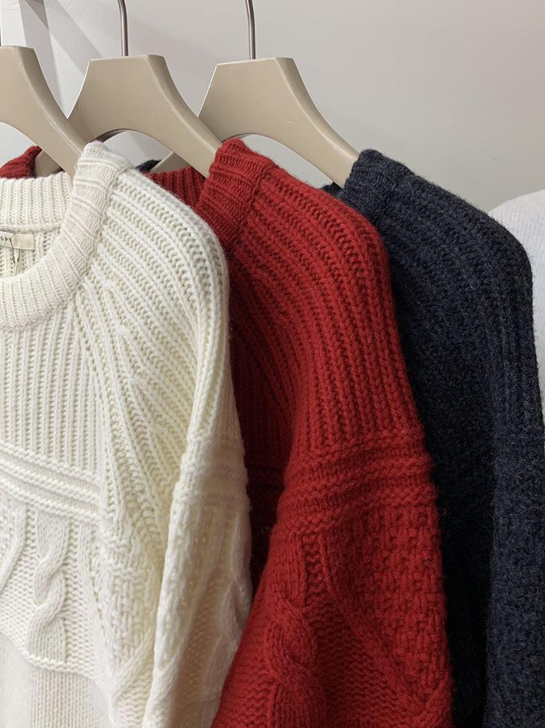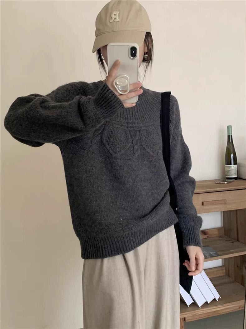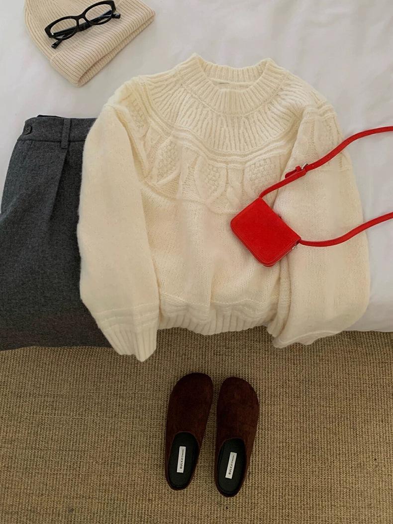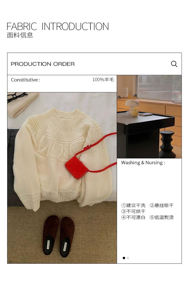 Yuanshi Bluepops 2024 Invierno Nuevo Suéter Holgado de Lana Virgen Tejido de Cable Retro A4466