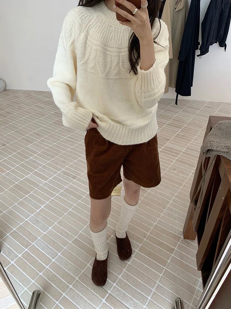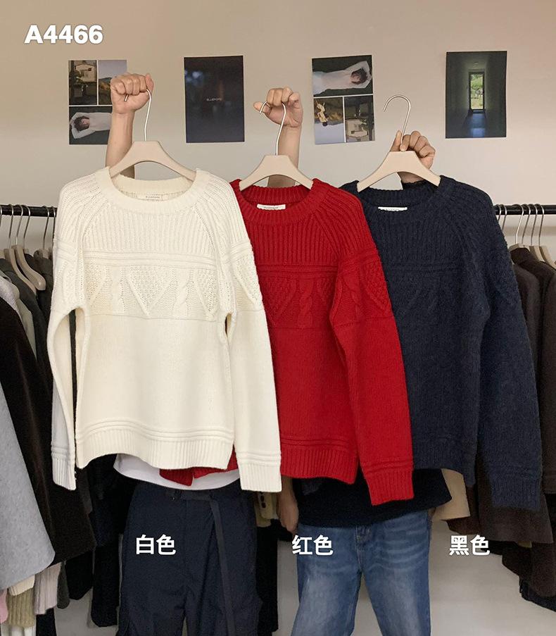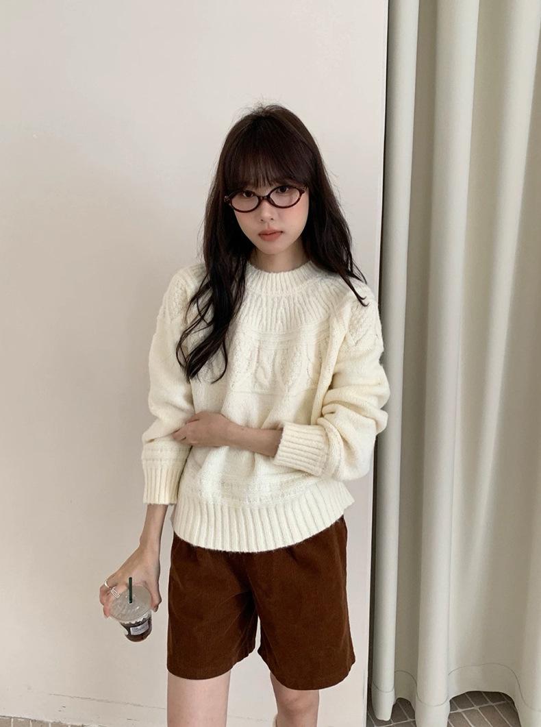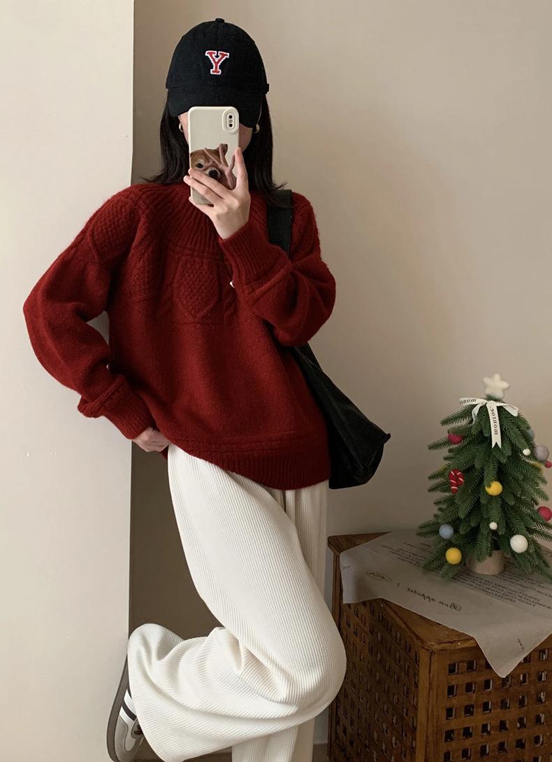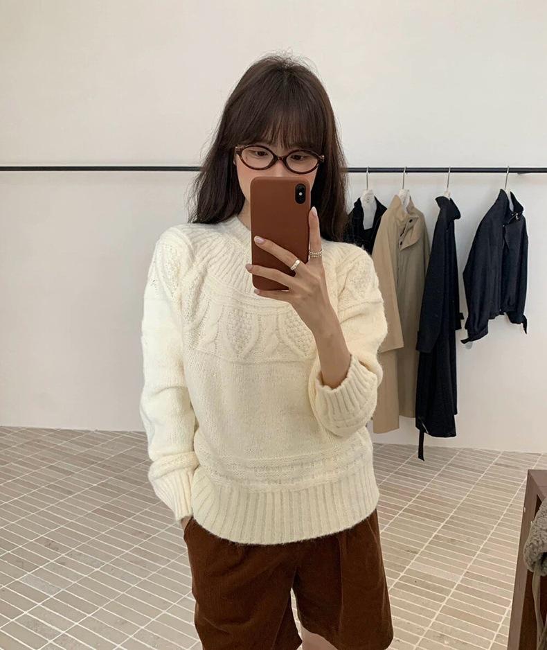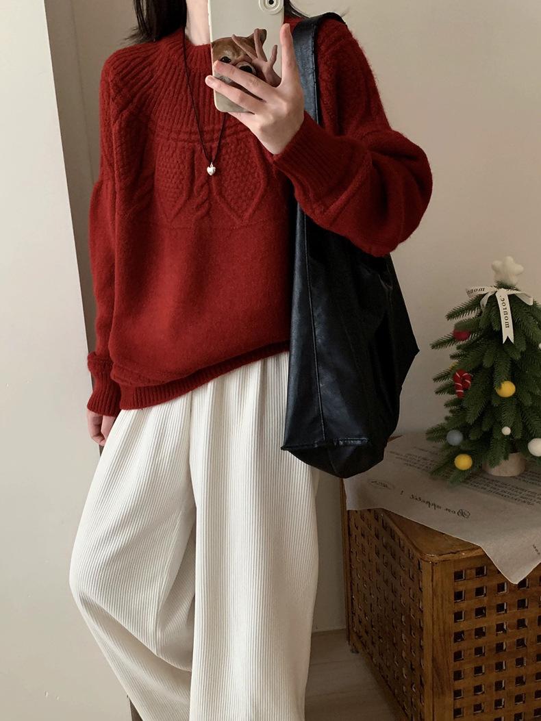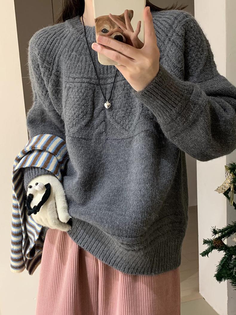 Yuanshi Bluepops 2024 Invierno Nuevo Suéter Holgado de Lana Virgen Tejido de Cable Retro A4466