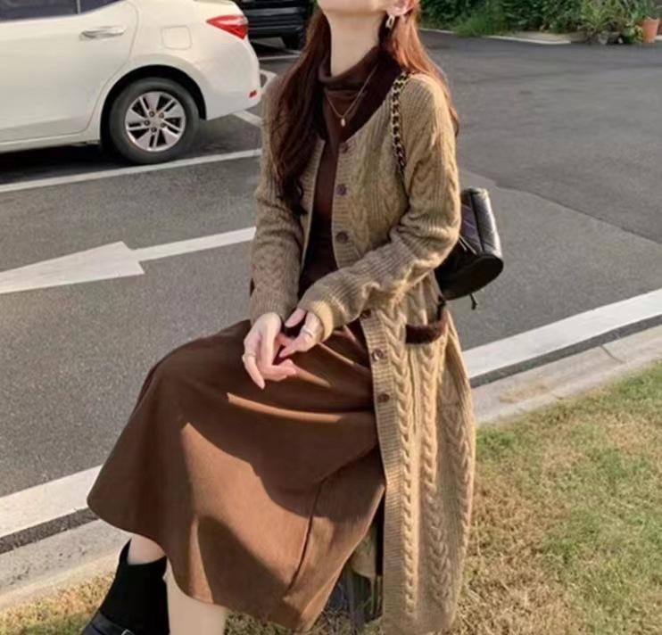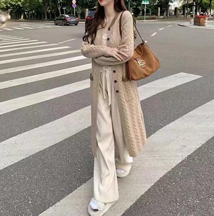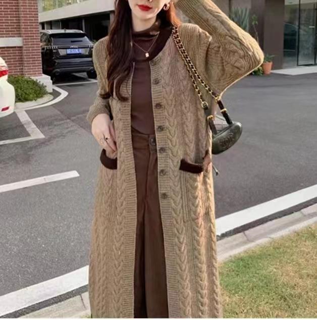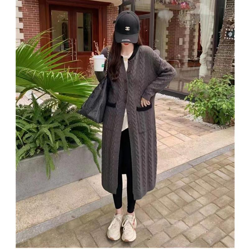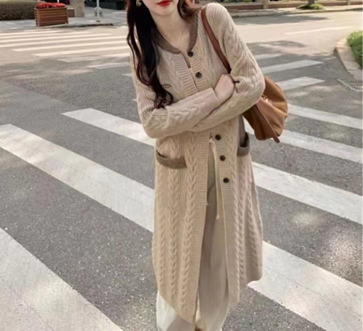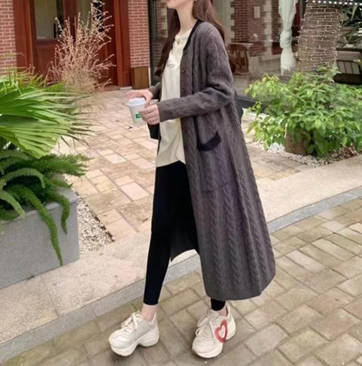 Chaqueta cárdigan de punto gruesa de longitud media, holgada, por encima de la rodilla, con botonadura sencilla y cuello redondo, estilo vintage, para otoño e invierno.