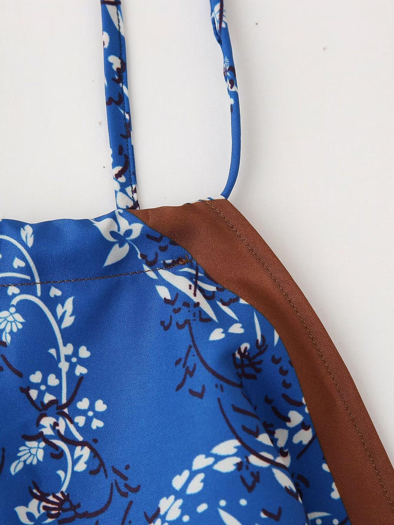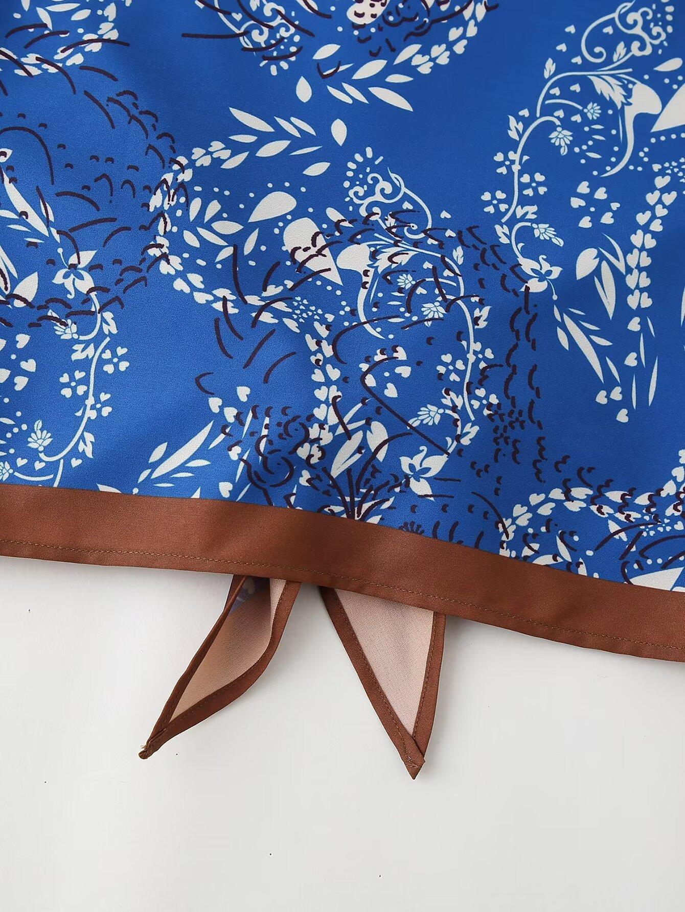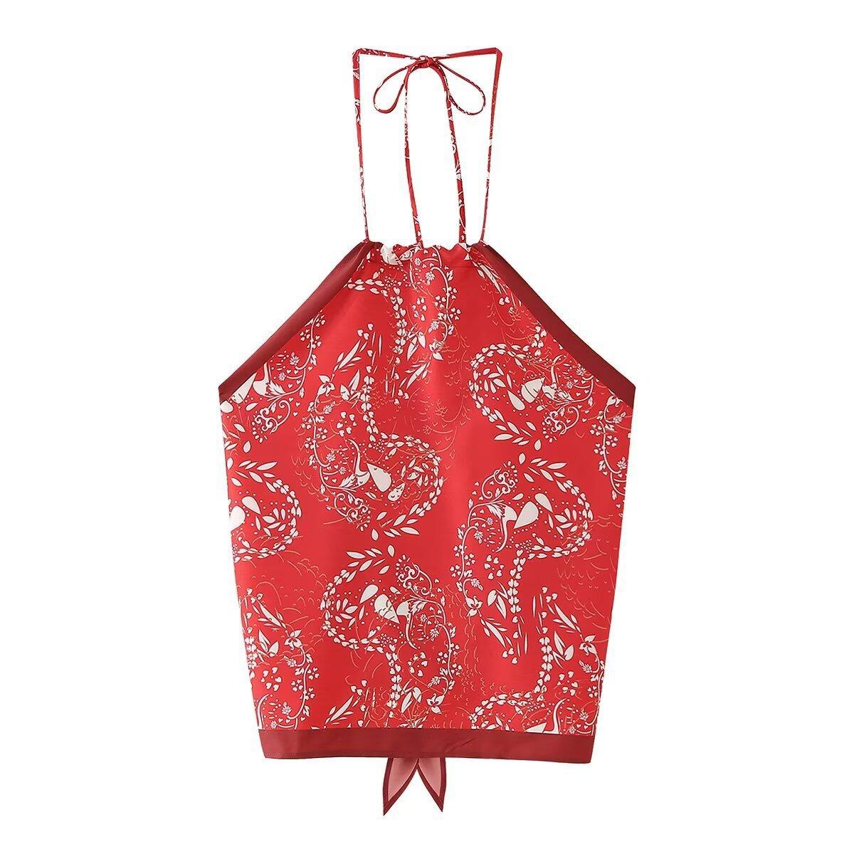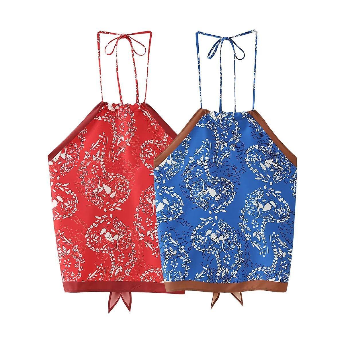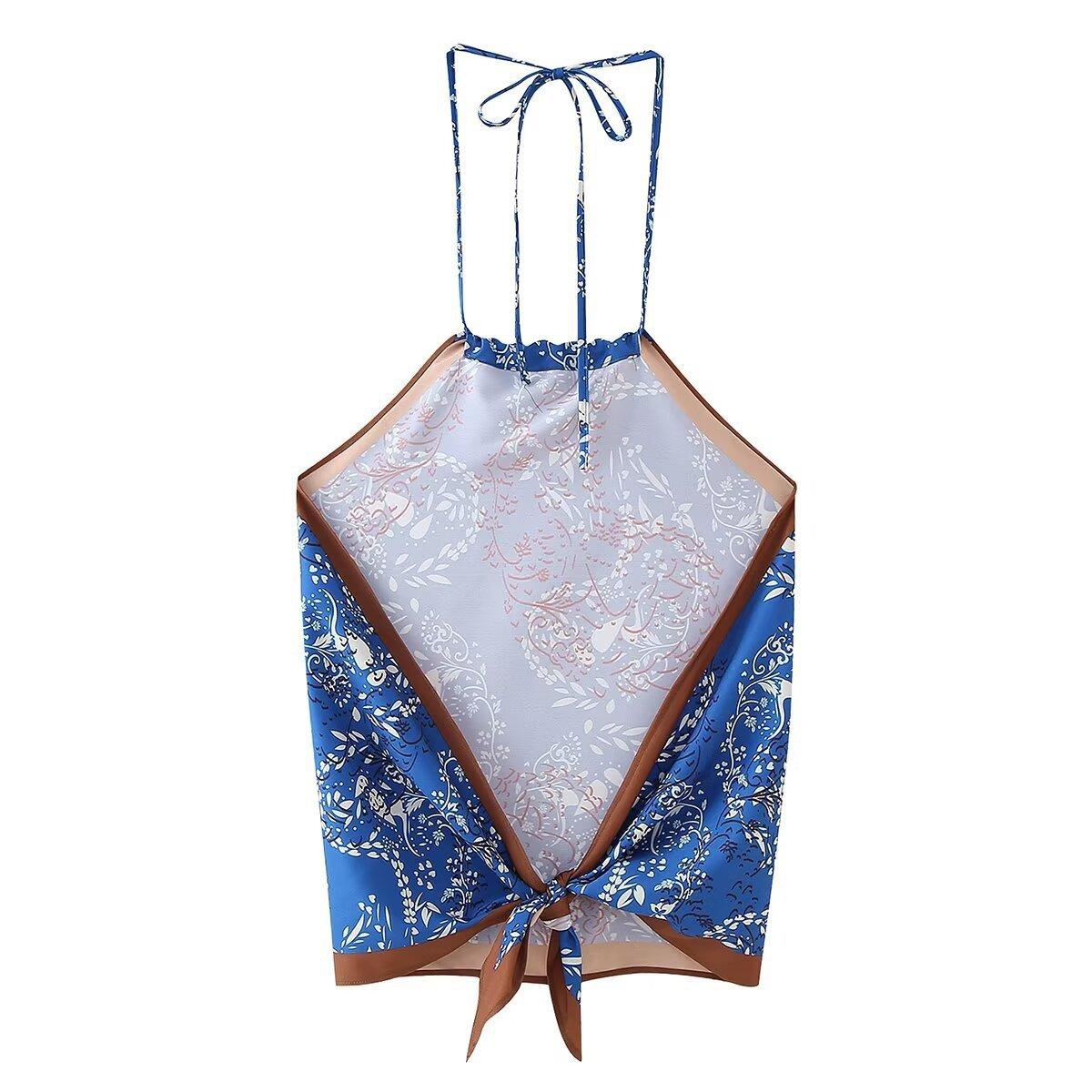 Amazon Comercio Exterior Transfronterizo Verano 2024 Nuevo Estilo Europeo y Americano Top con Cuello Estampado para Mujer