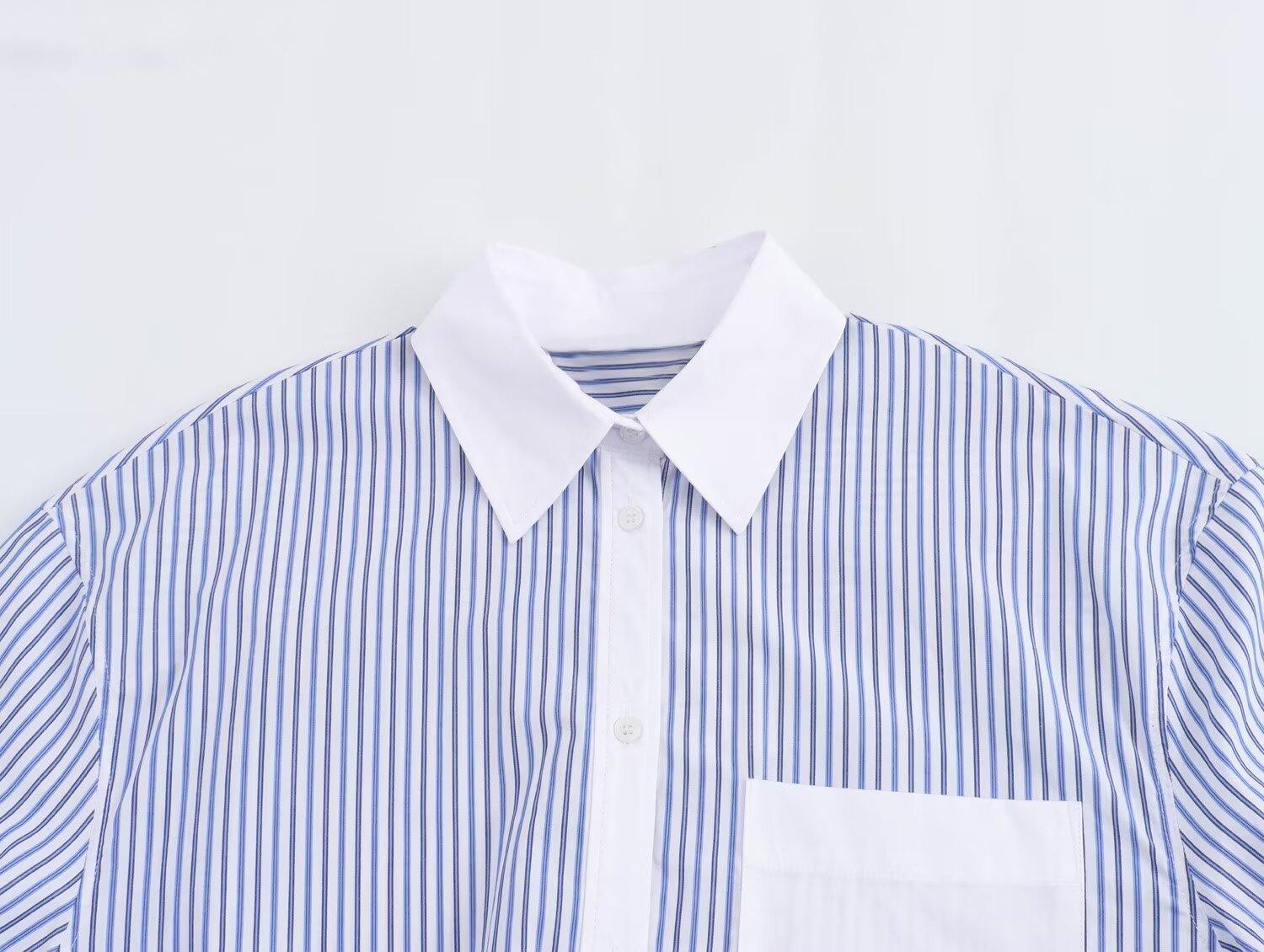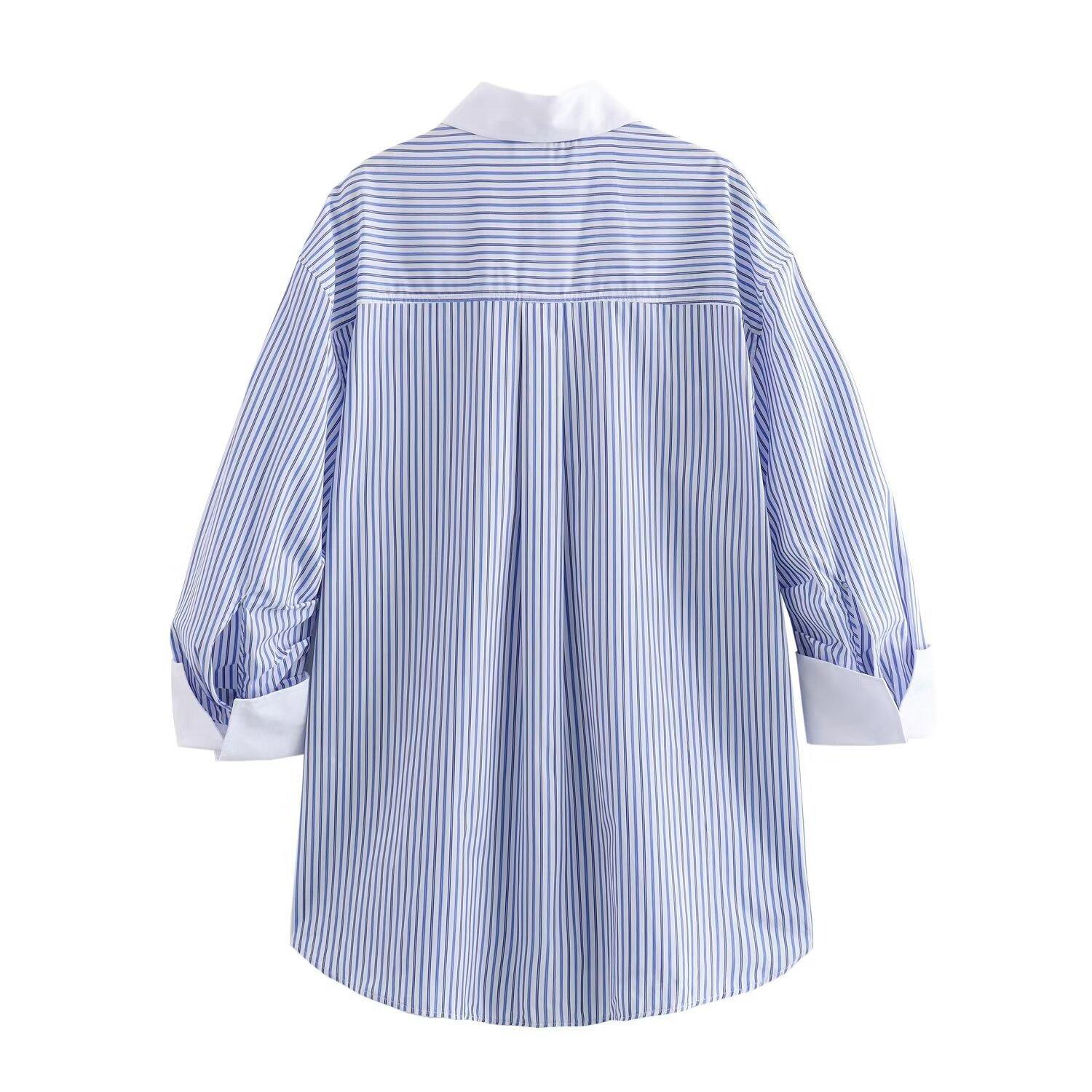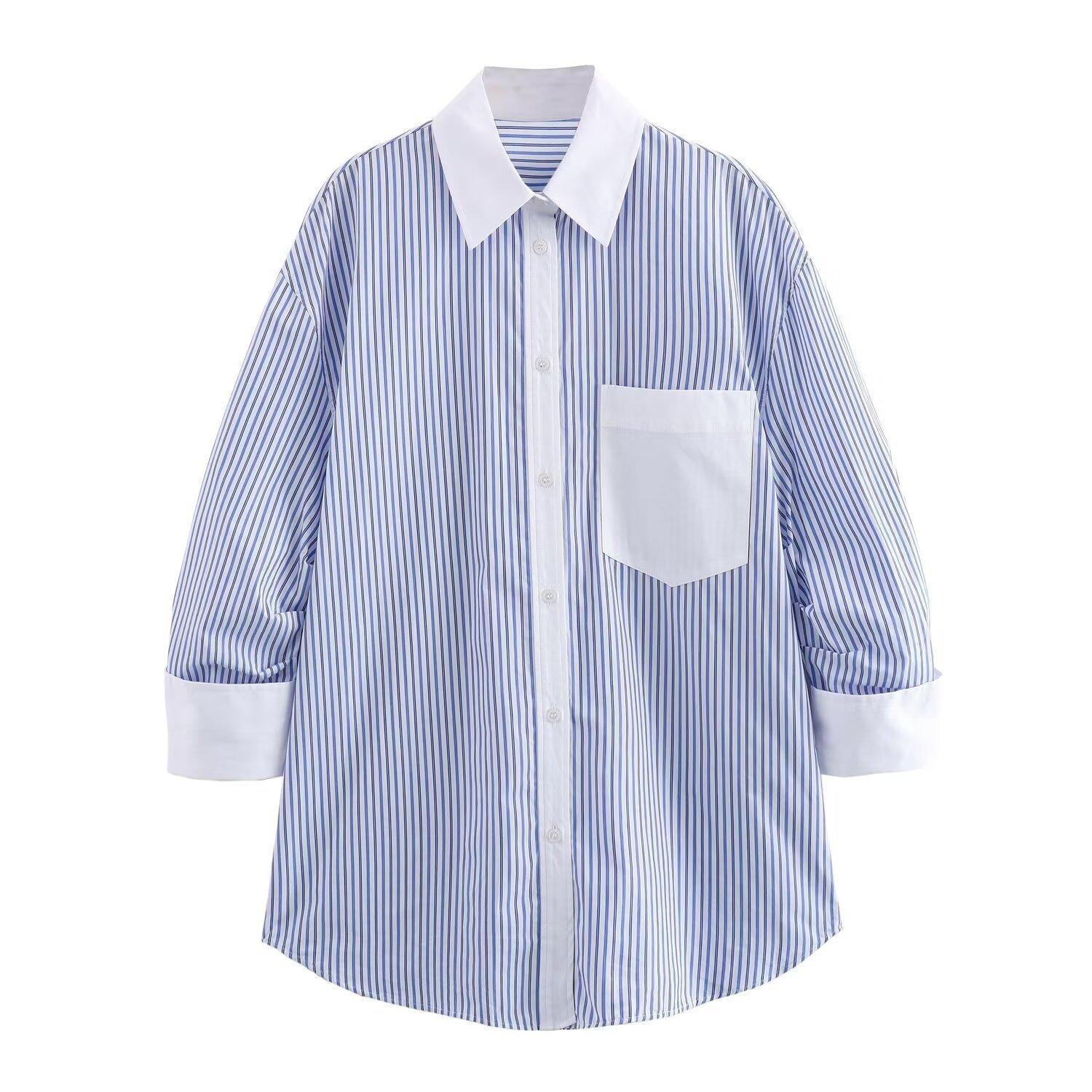 Camisa de manga larga suelta de popelina a rayas de moda de verano 2024 para mujer europea y americana de comercio exterior transfronterizo de Amazon