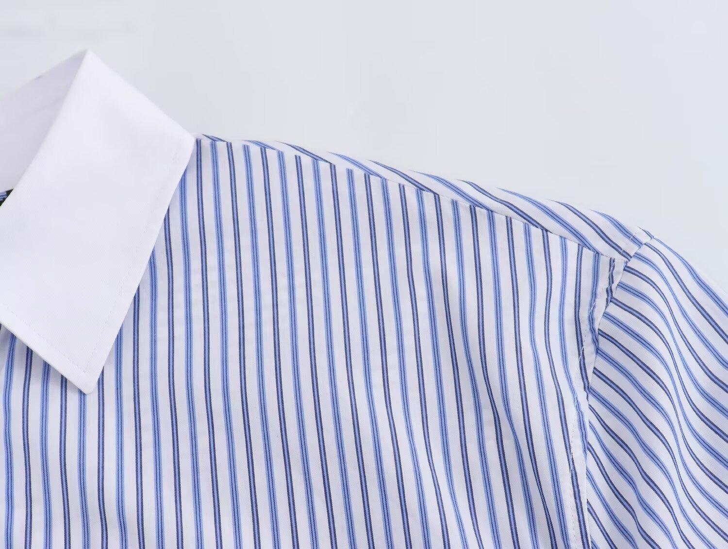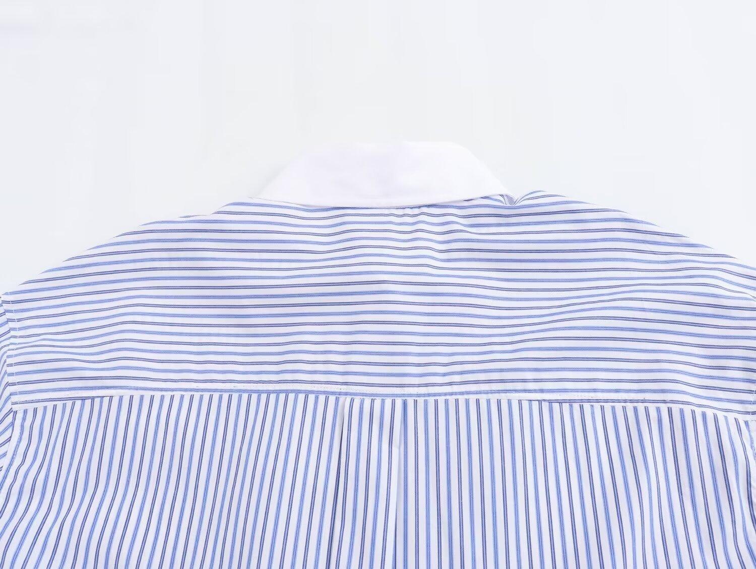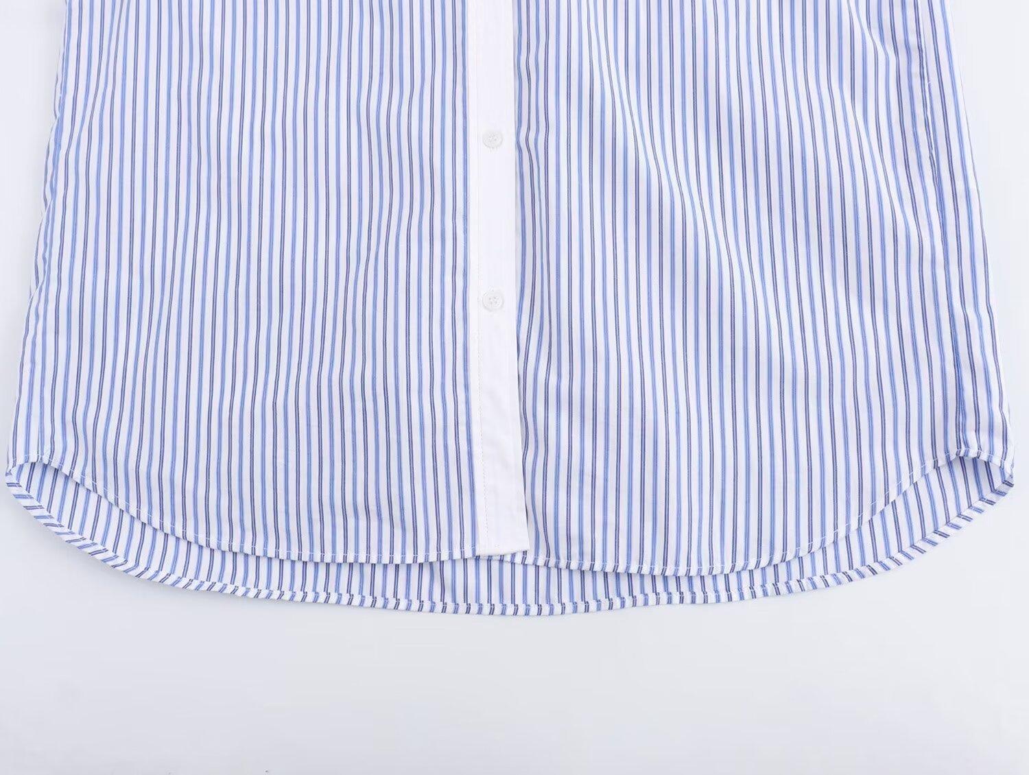 Camisa de manga larga suelta de popelina a rayas de moda de verano 2024 para mujer europea y americana de comercio exterior transfronterizo de Amazon