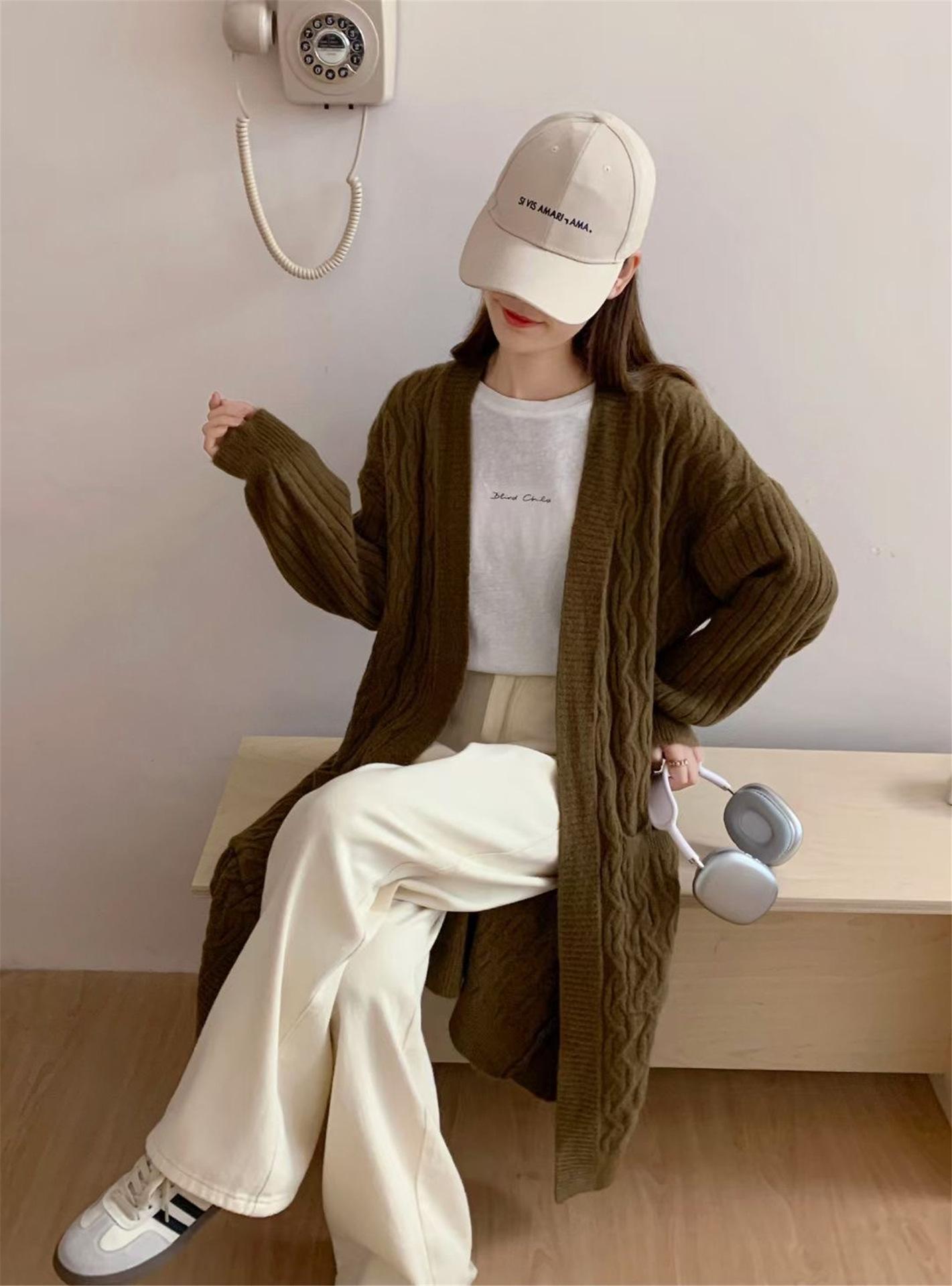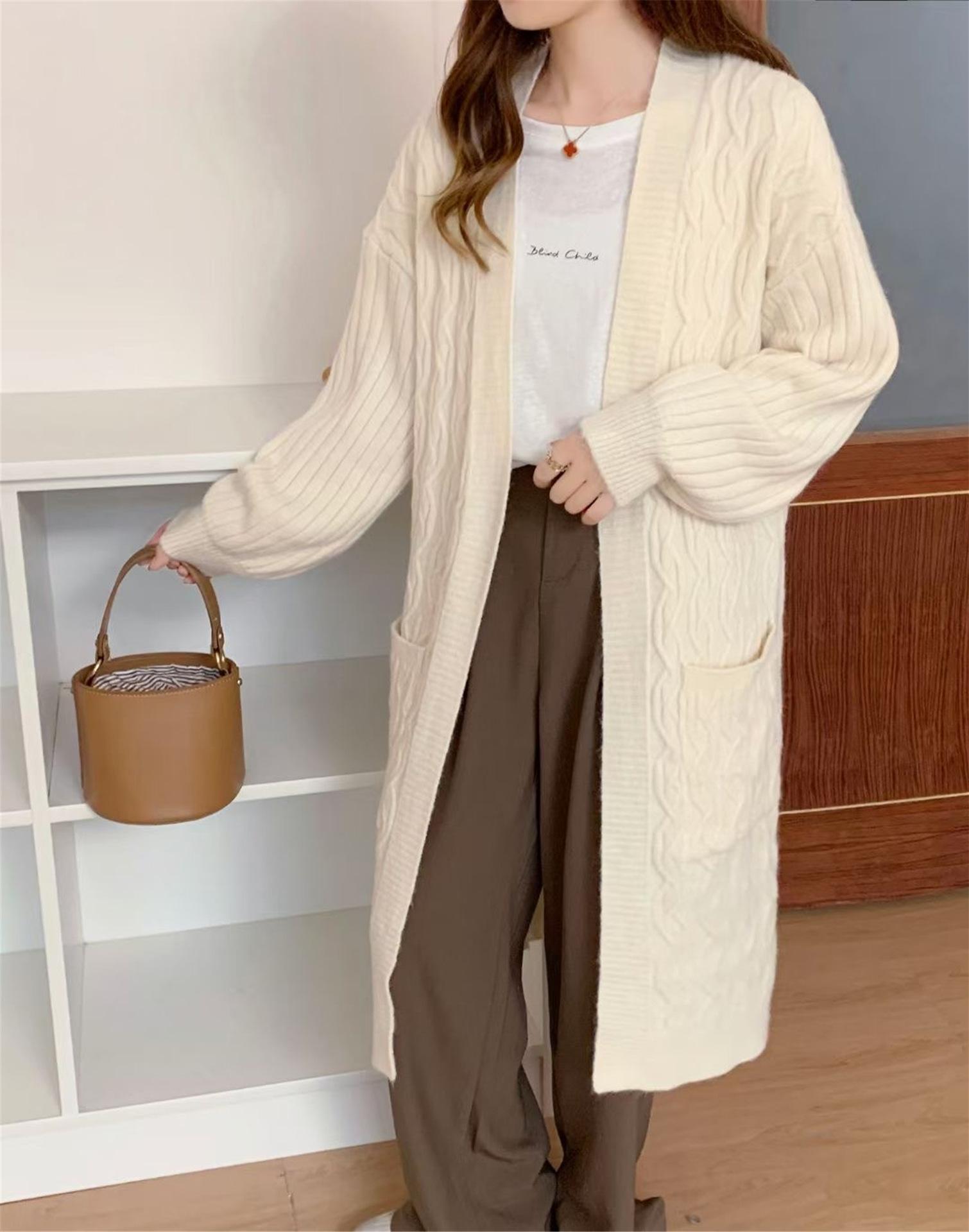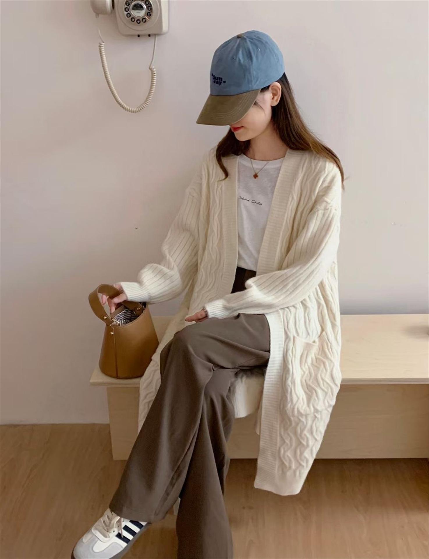 Chaqueta de punto estilo japonés retro 2024 para otoño e invierno, nueva chaqueta de suéter holgada, suave y encerada, de longitud media para mujer