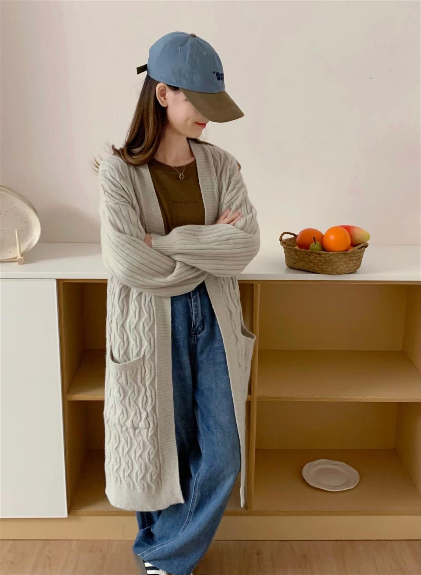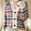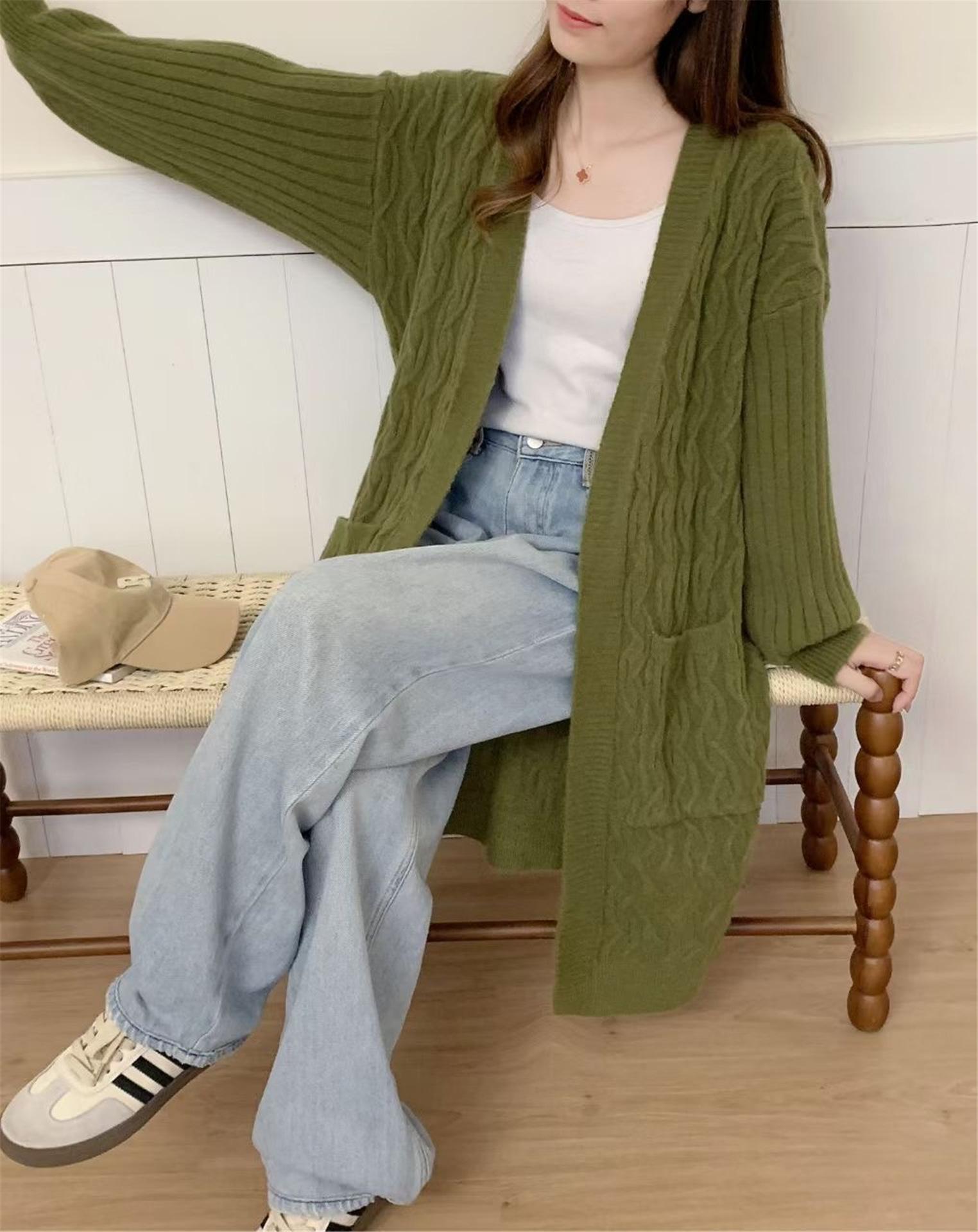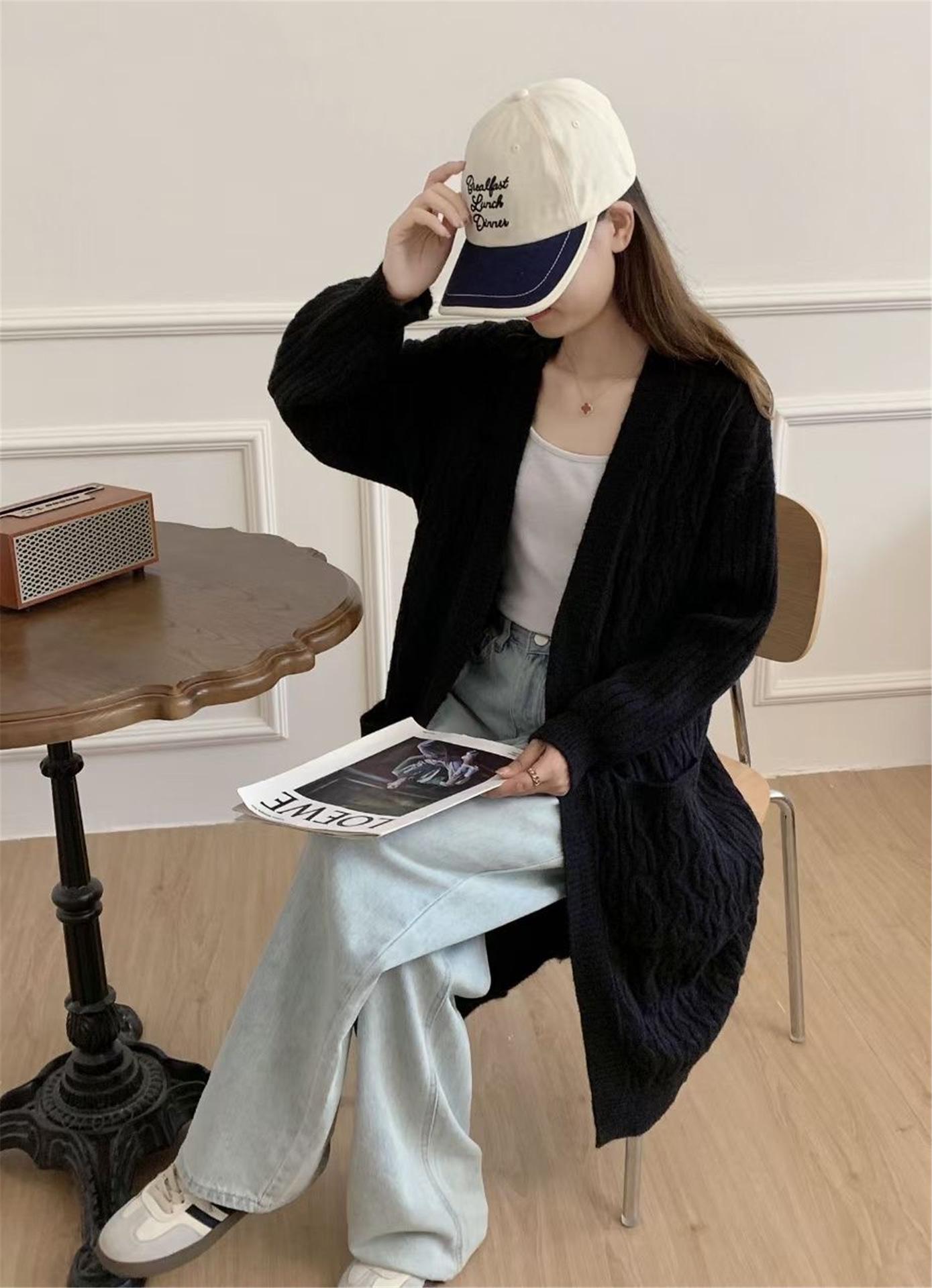Chaqueta de punto estilo japonés retro 2024 para otoño e invierno, nueva chaqueta de suéter holgada, suave y encerada, de longitud media para mujer