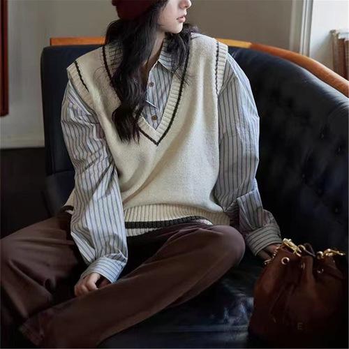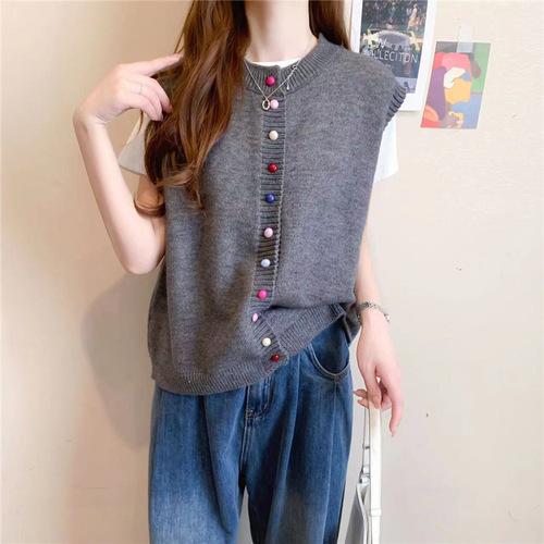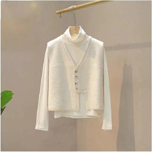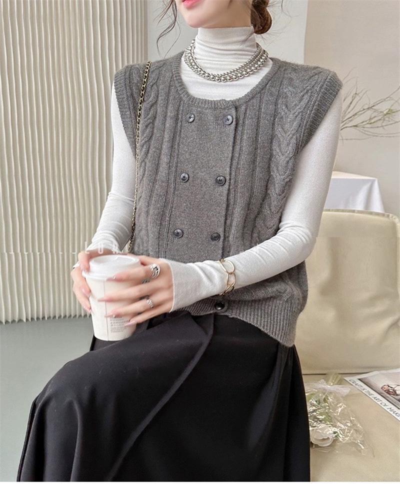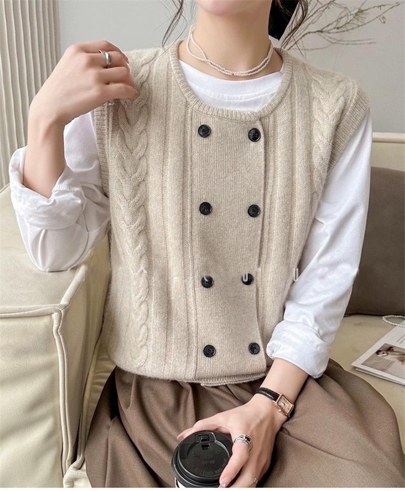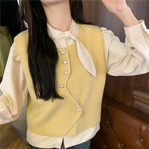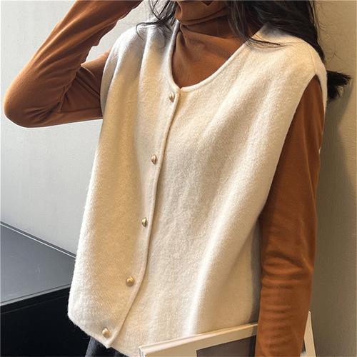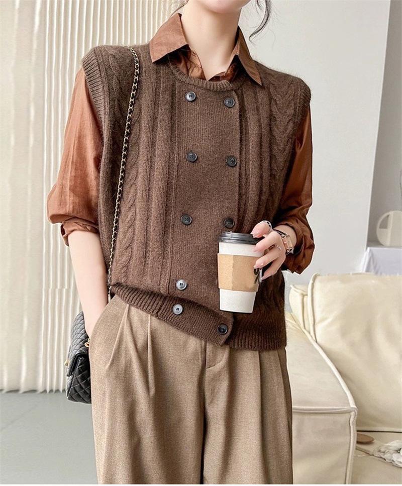 Chaleco de punto cruzado con cuello redondo y temperamento, nuevo cárdigan de felpa de otoño 2024, top de moda