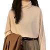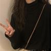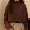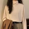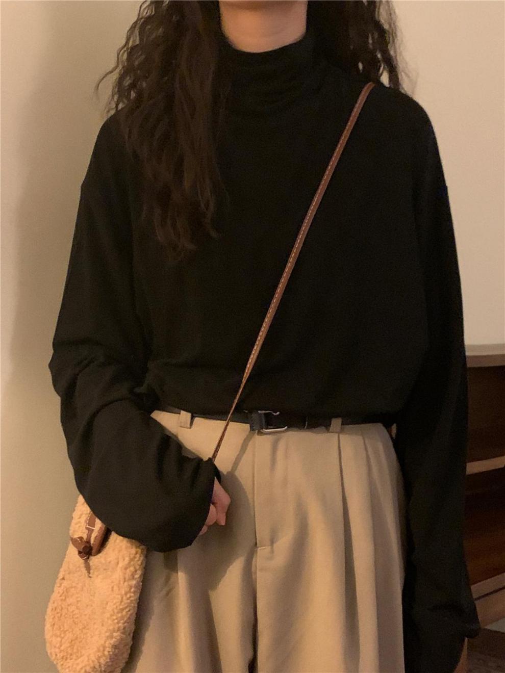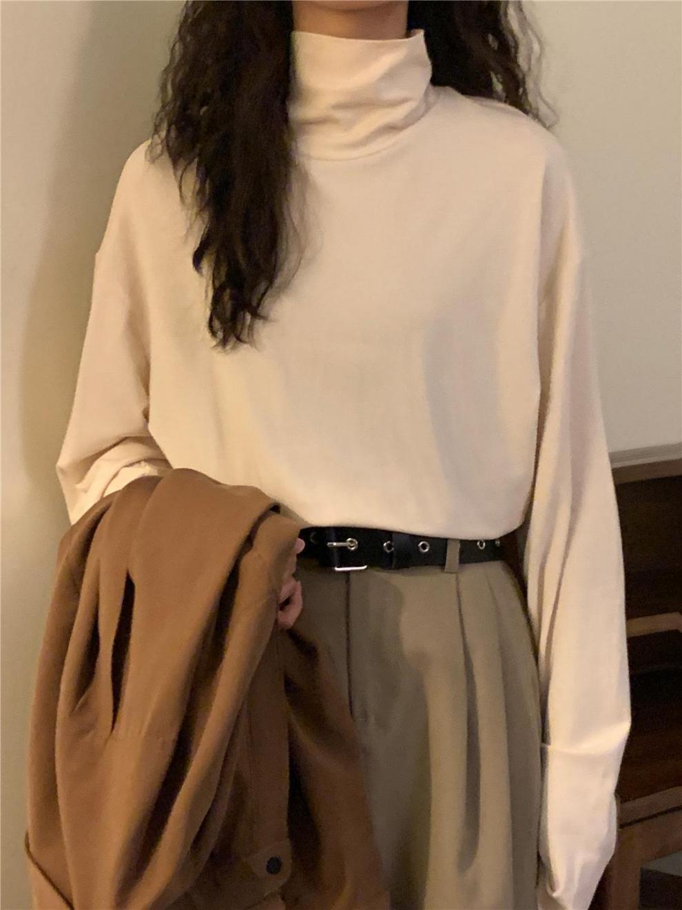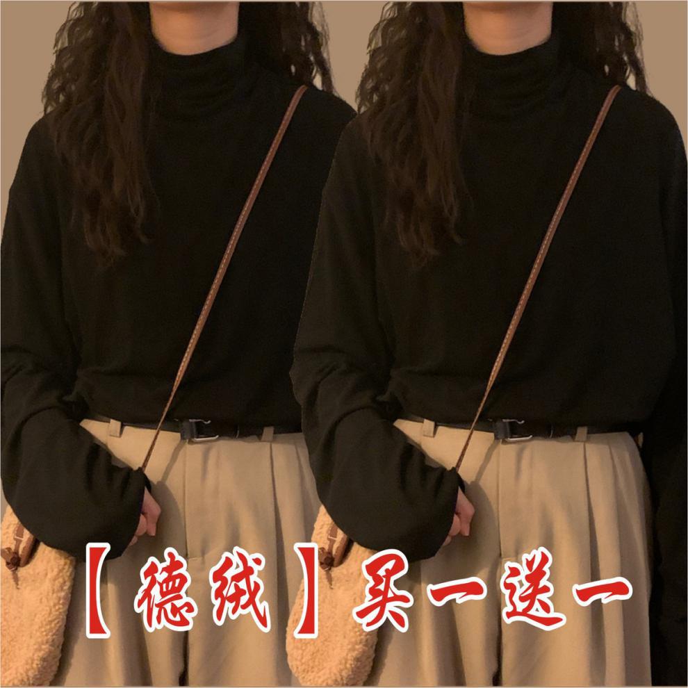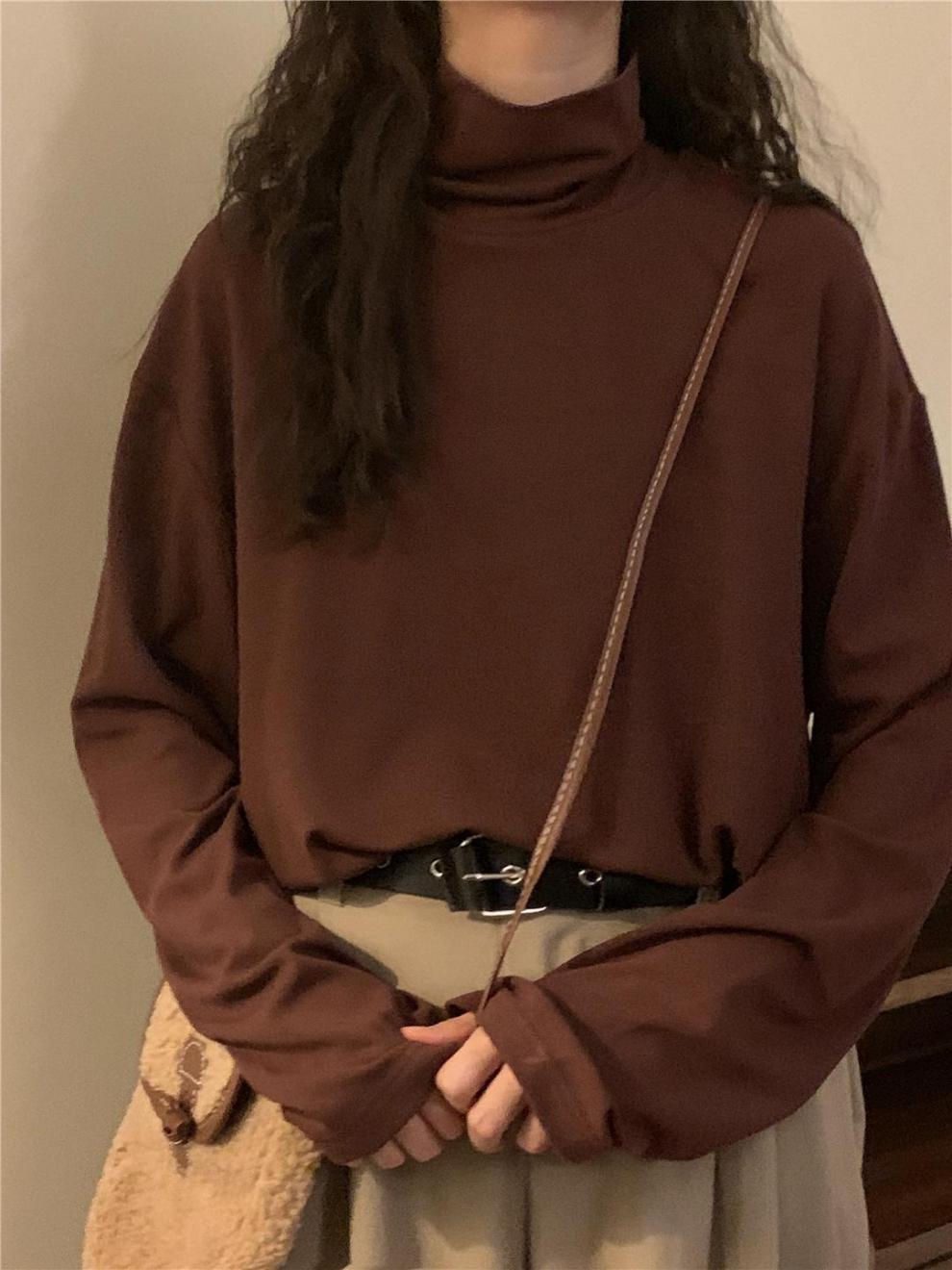 Camiseta de manga larga con cuello alto grueso y cepillado de terciopelo de estilo extranjero de otoño e invierno, camisa base para mujer con top ajustado coreano de color sólido