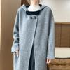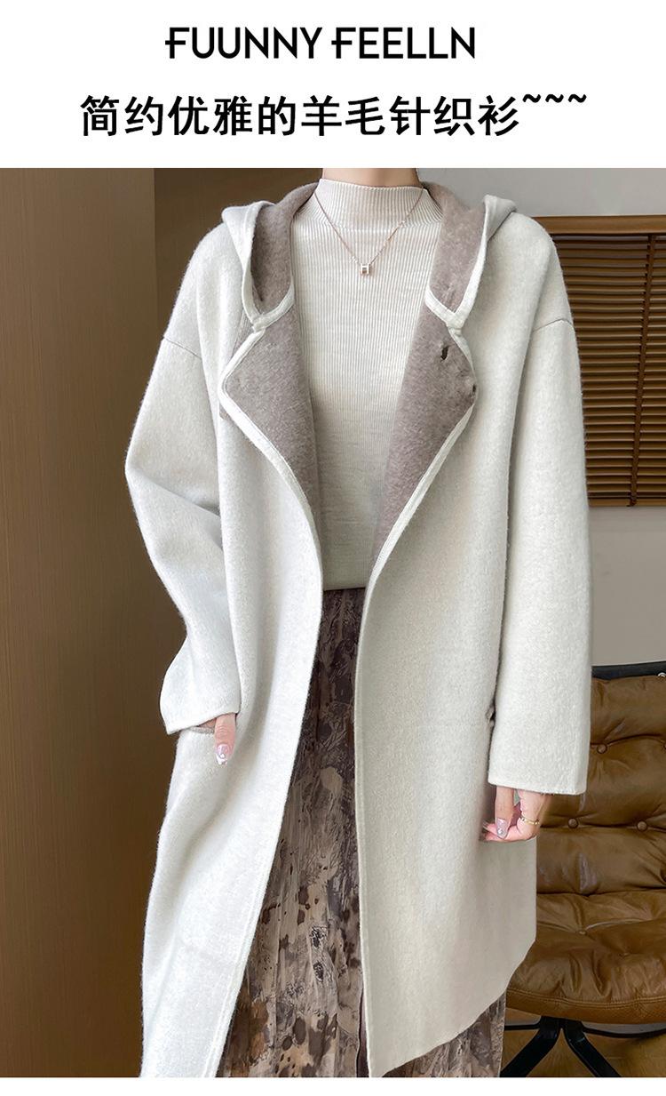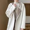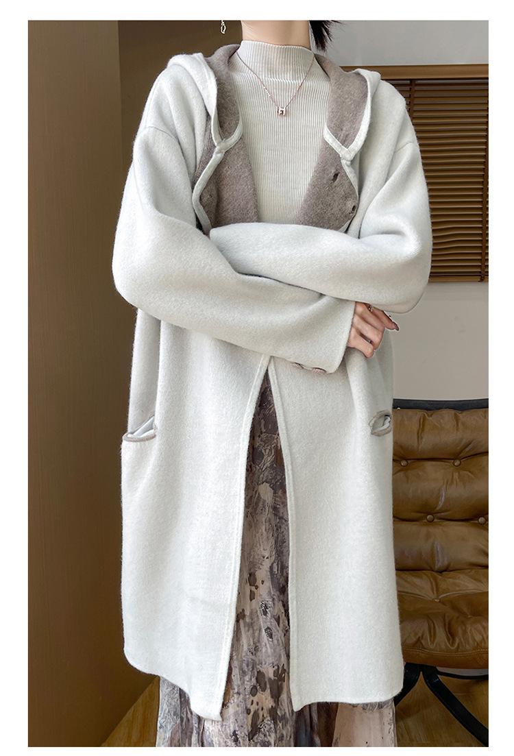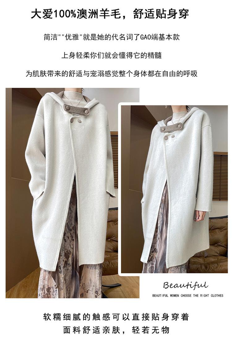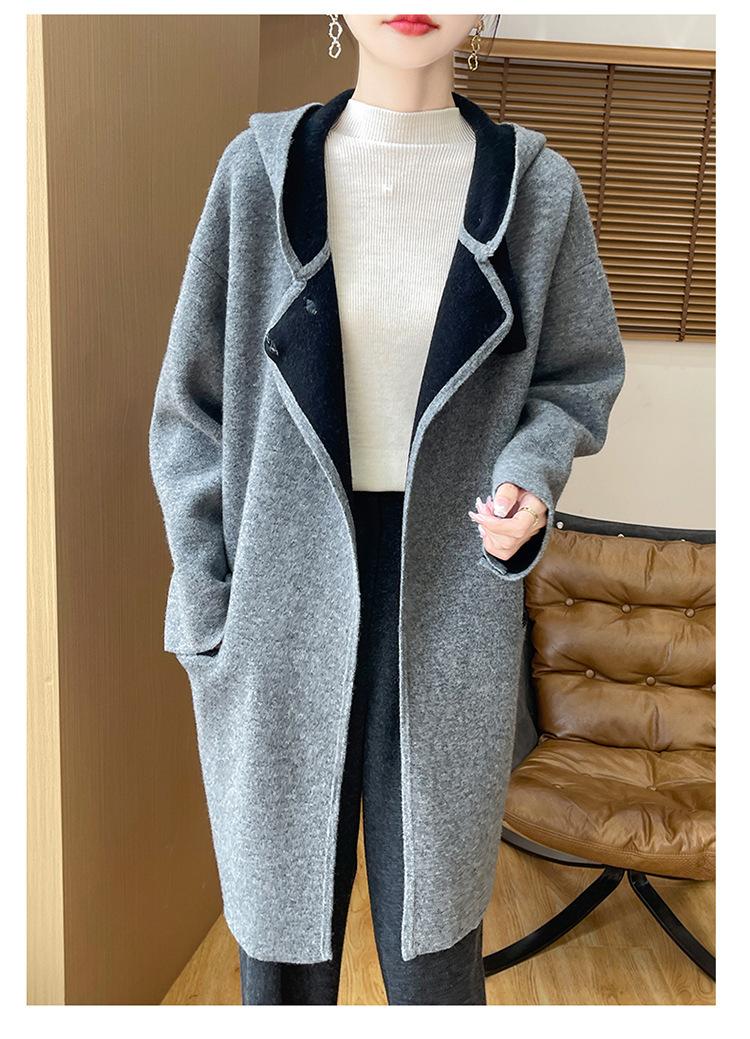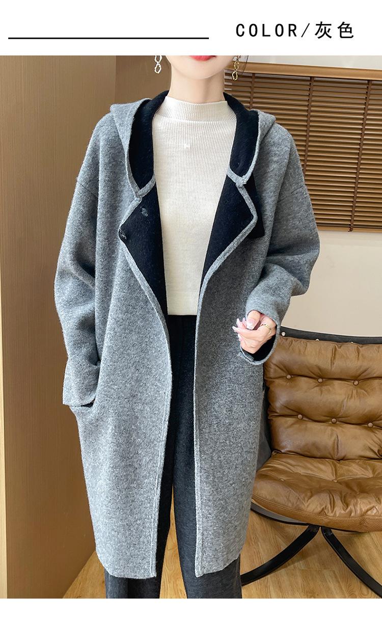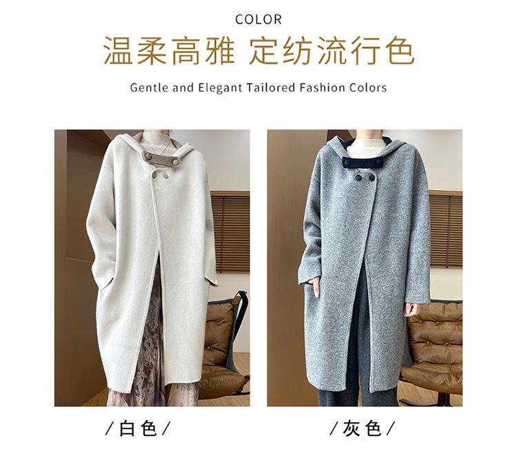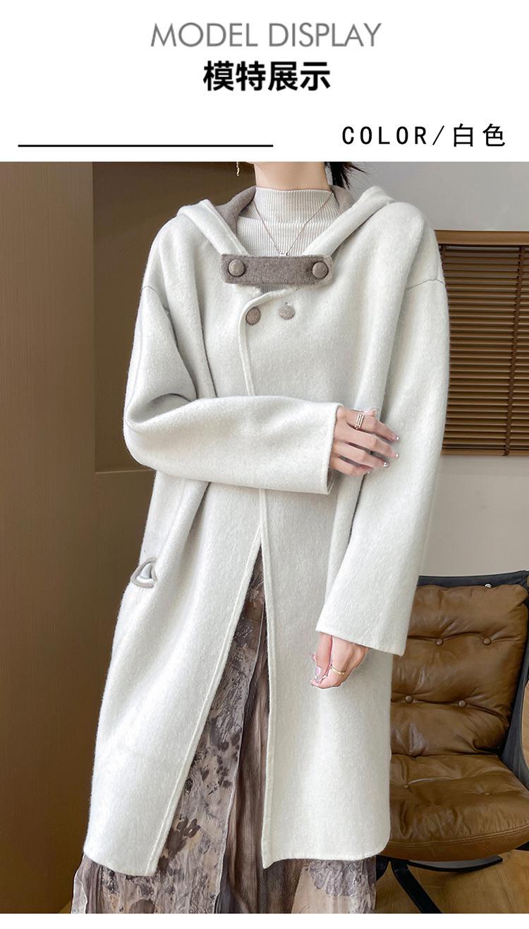 2025 Nuevo Otoño e Invierno Abrigo de Lana de Doble Cara para Mujer de Largo Medio con Capucha Moderno Suelto de Lana