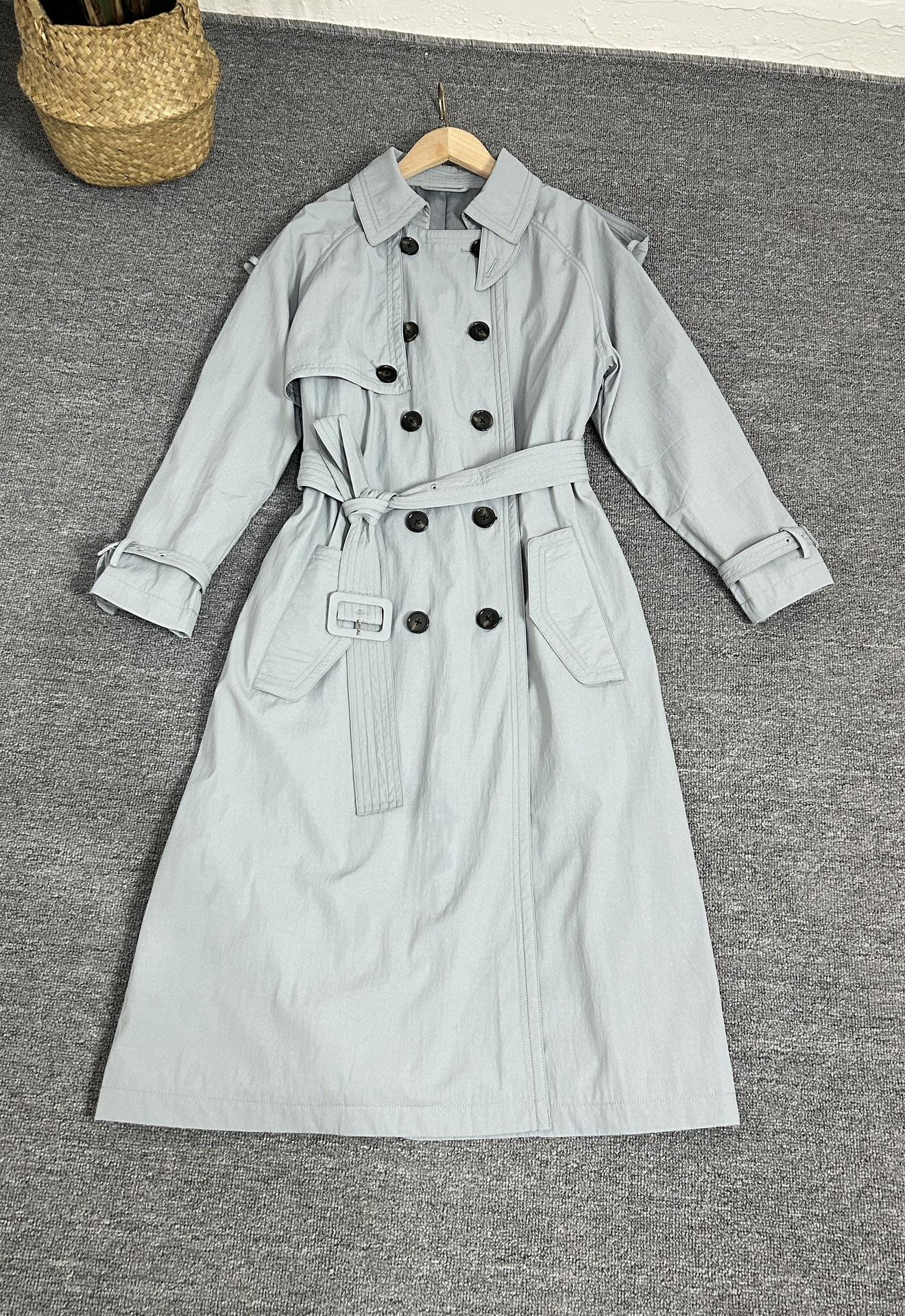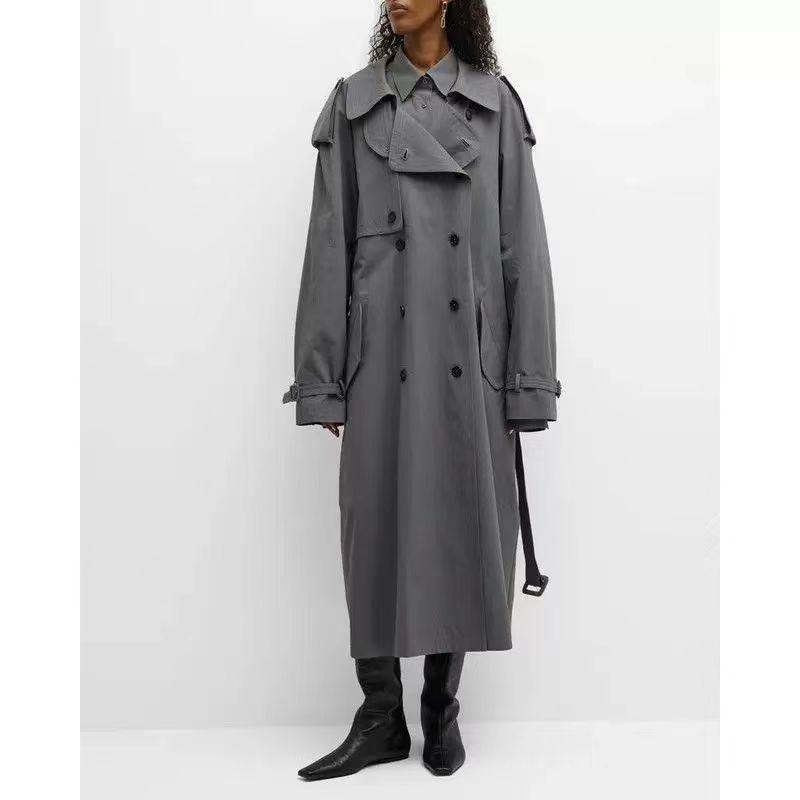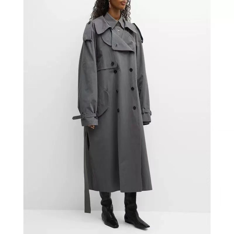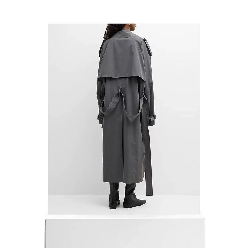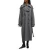 EL nuevo abrigo largo cruzado con solapa y cordones de otoño, estilo clásico con cinturón sencillo y relajado