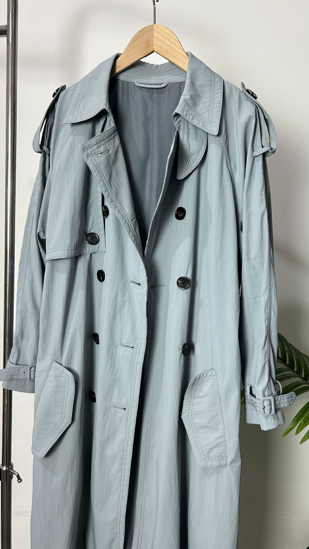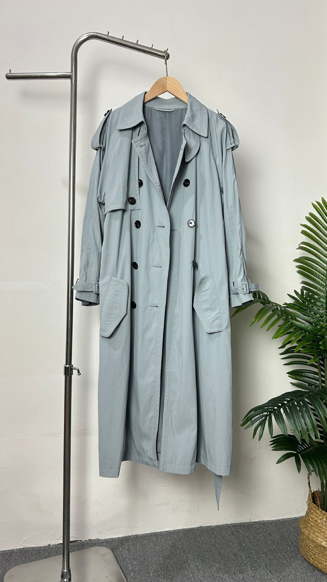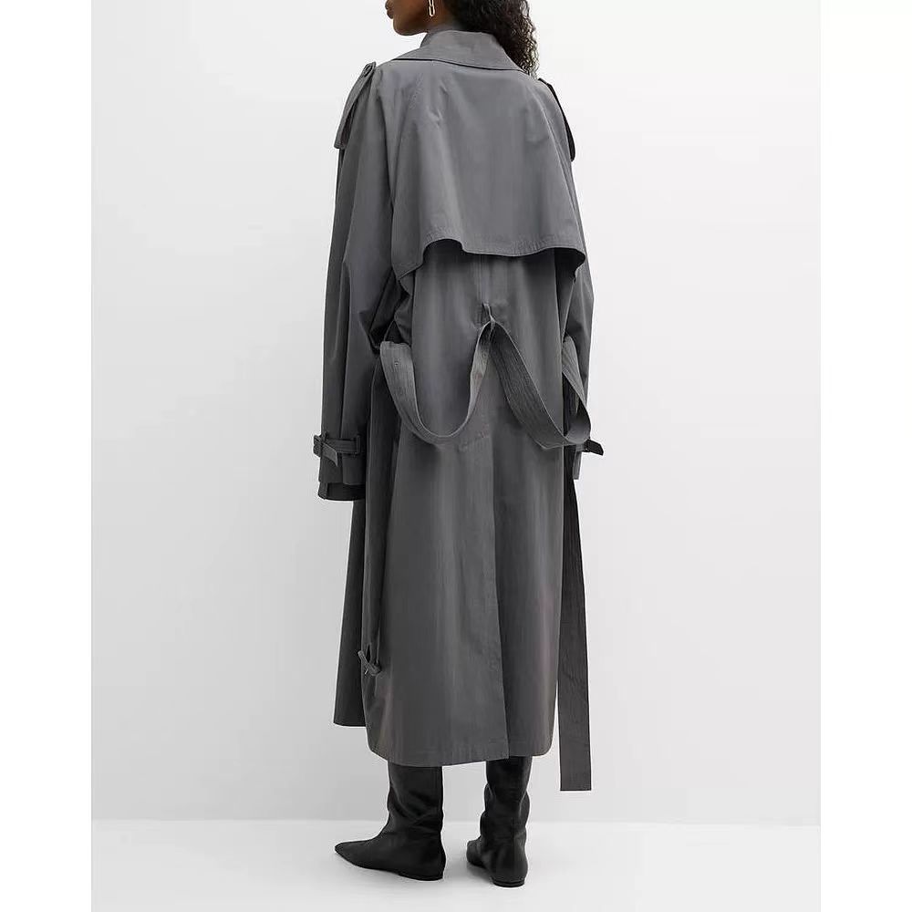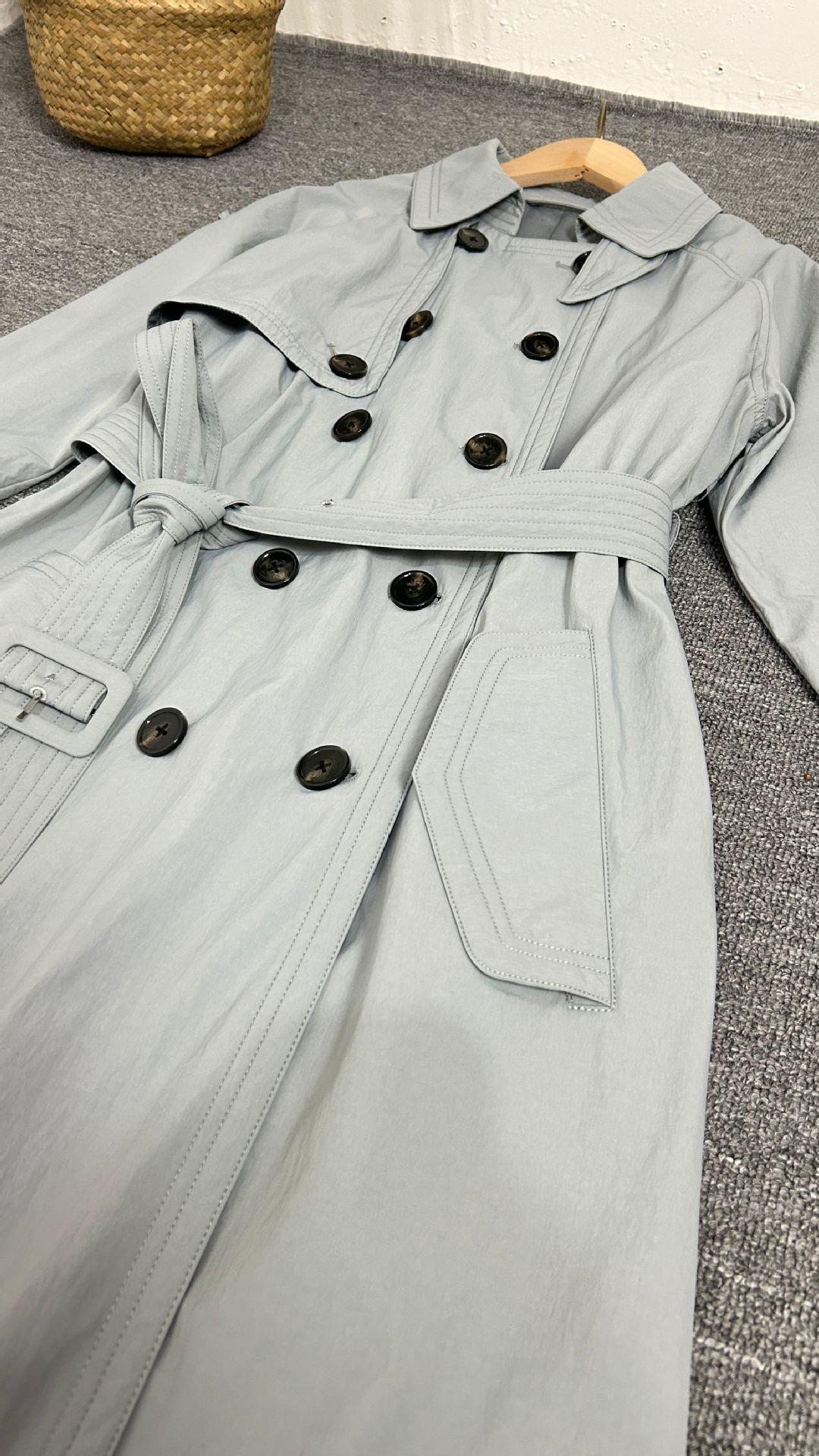 EL nuevo abrigo largo cruzado con solapa y cordones de otoño, estilo clásico con cinturón sencillo y relajado