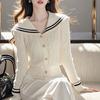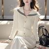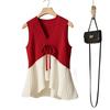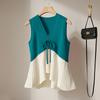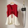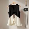 Top de punto francés de lujo, accesible y elegante, con escote en V en contraste, para mujer, diseño de principios de otoño, chaleco versátil.