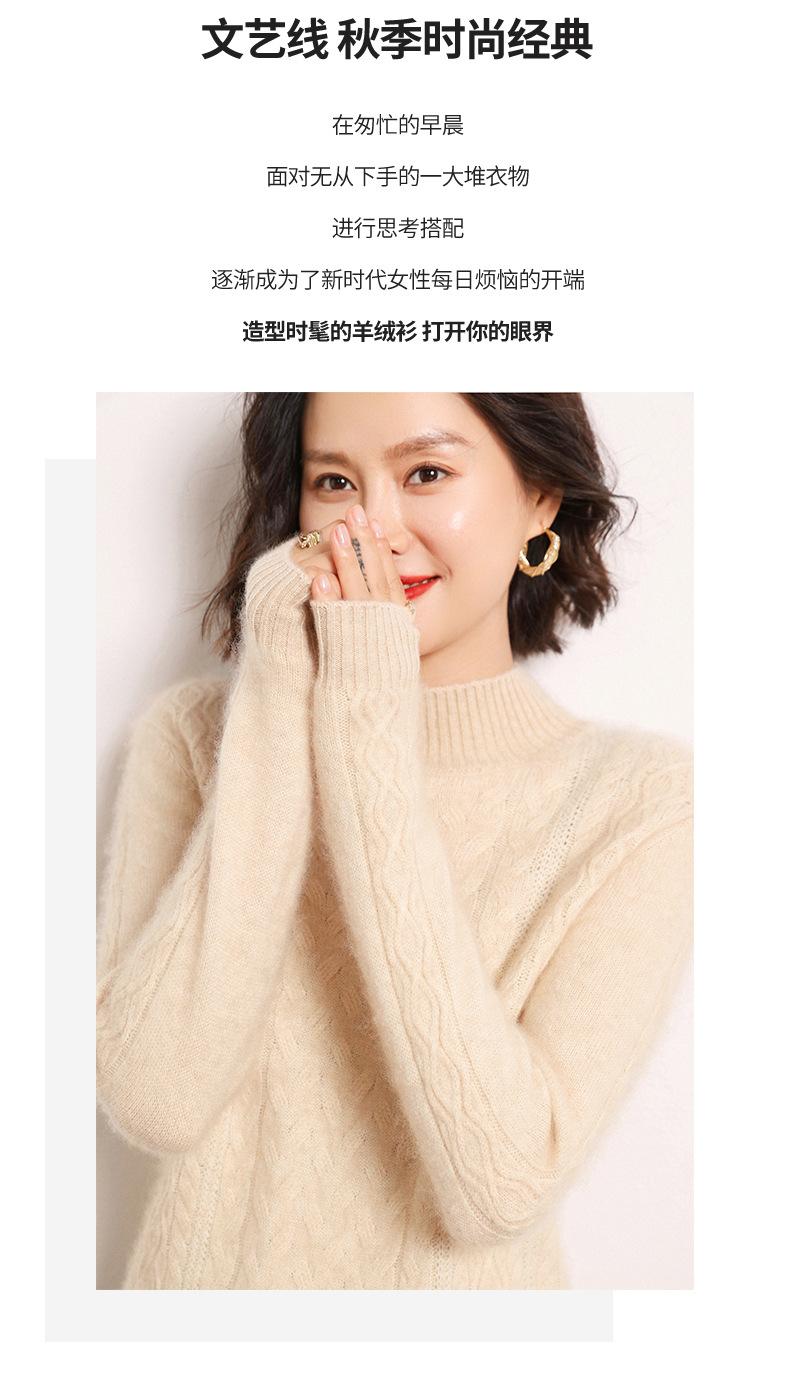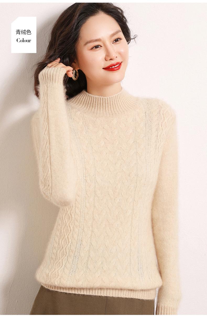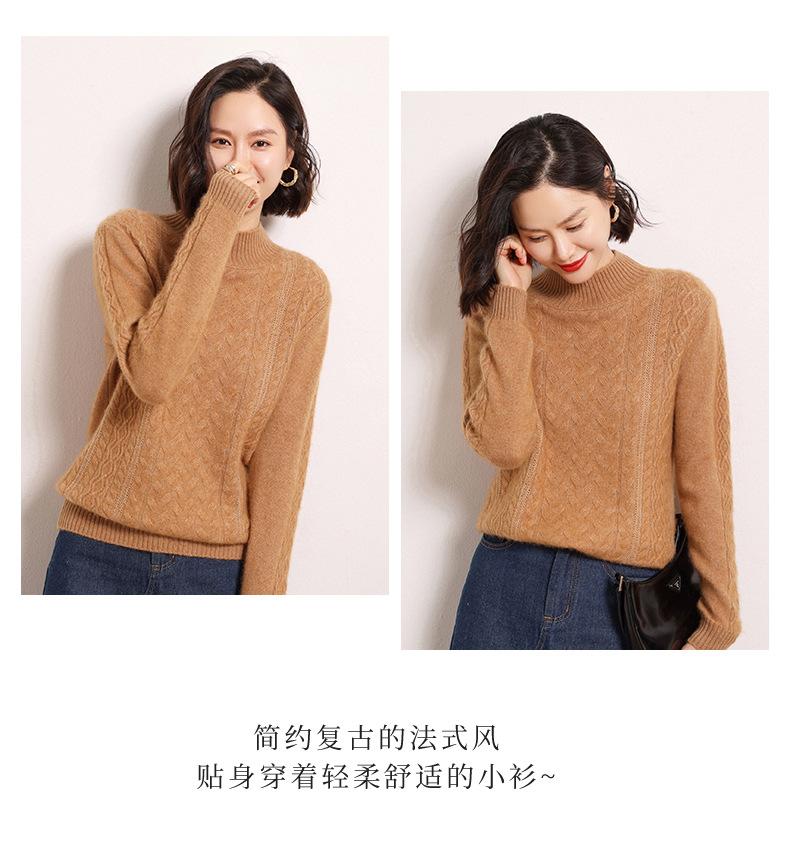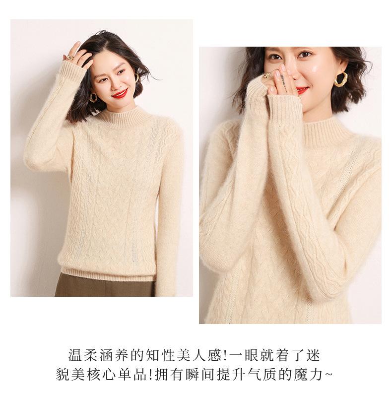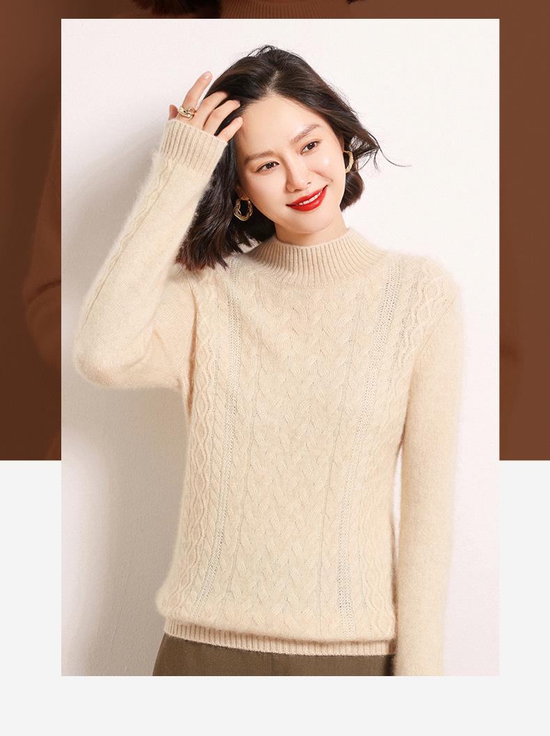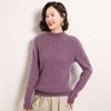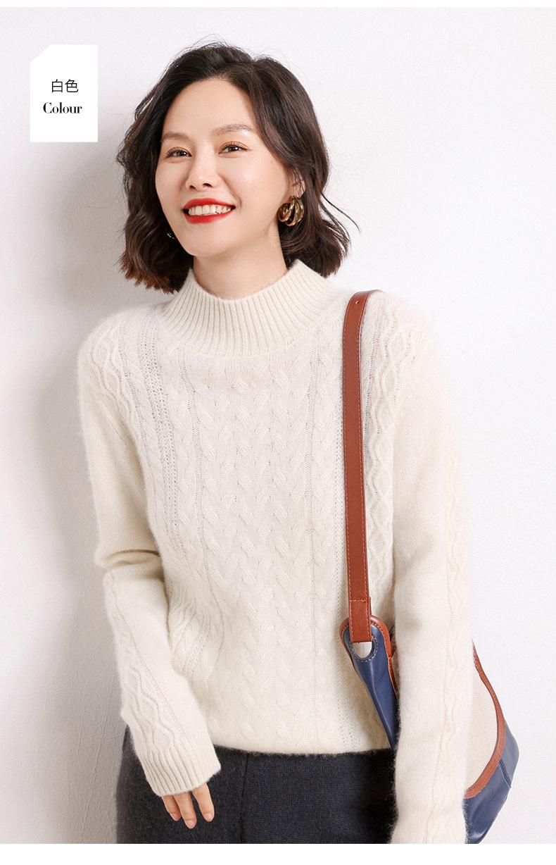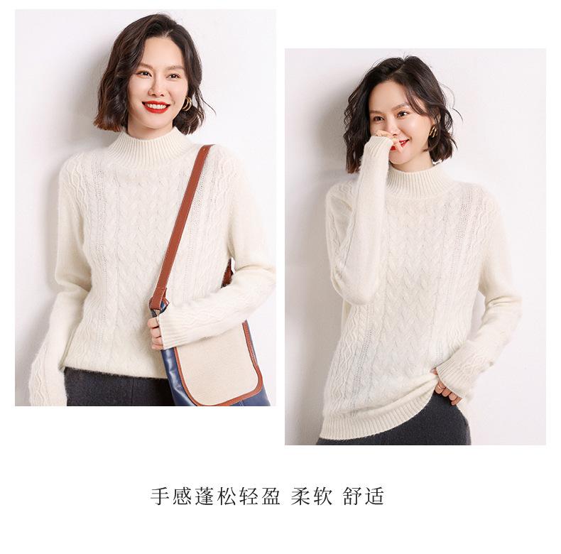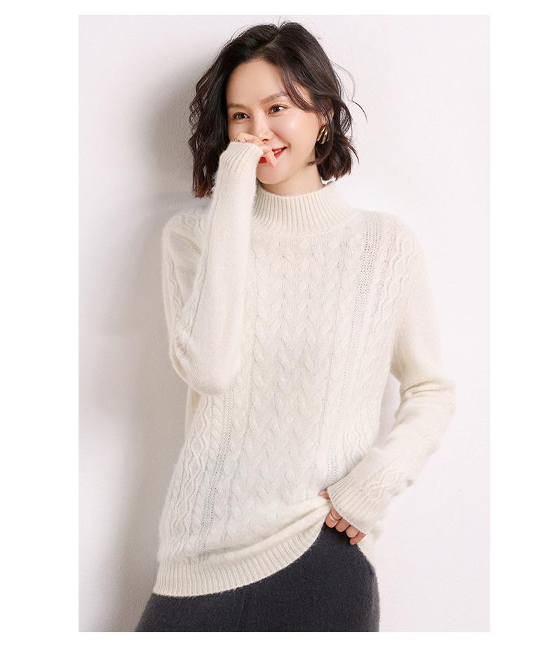 Suéter de Cachemira para Mujer con Trenzas de Color Claro de Cuello Medio Alto, para Usar Debajo, Ajustado, Ropa de Trabajo, Otoño e Invierno, Tejido Grueso de Manga Larga