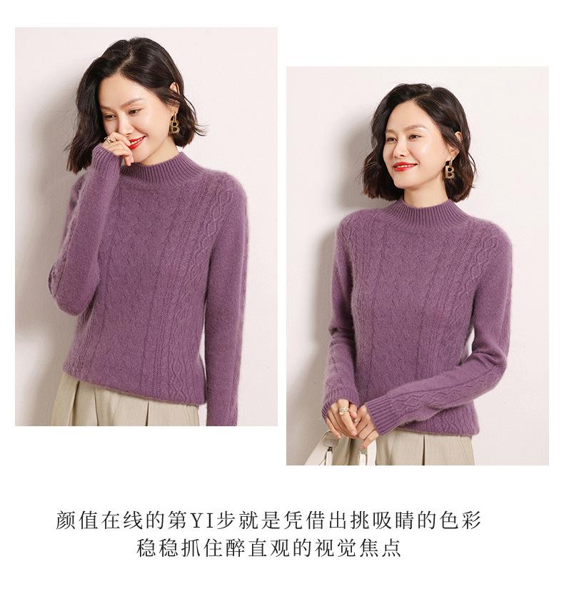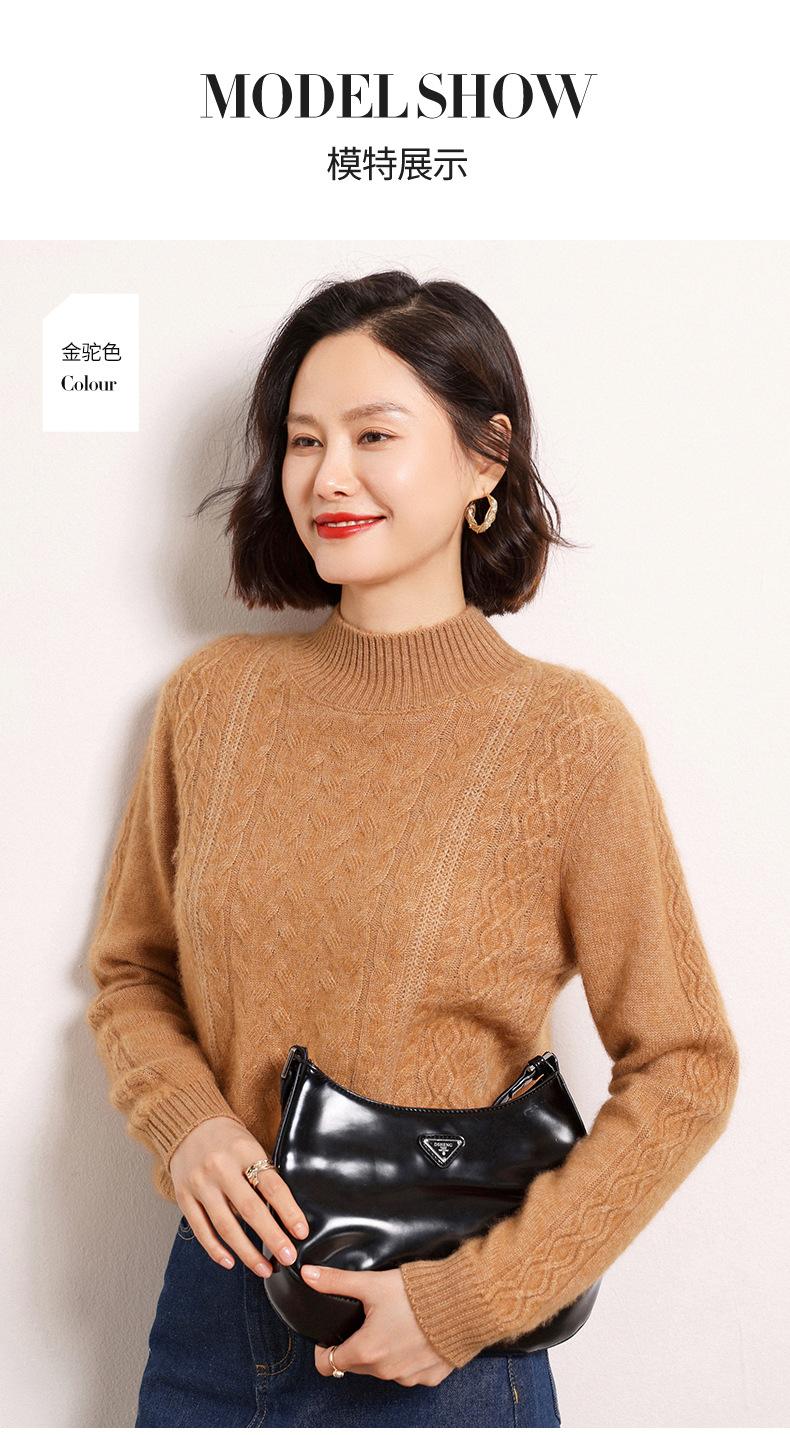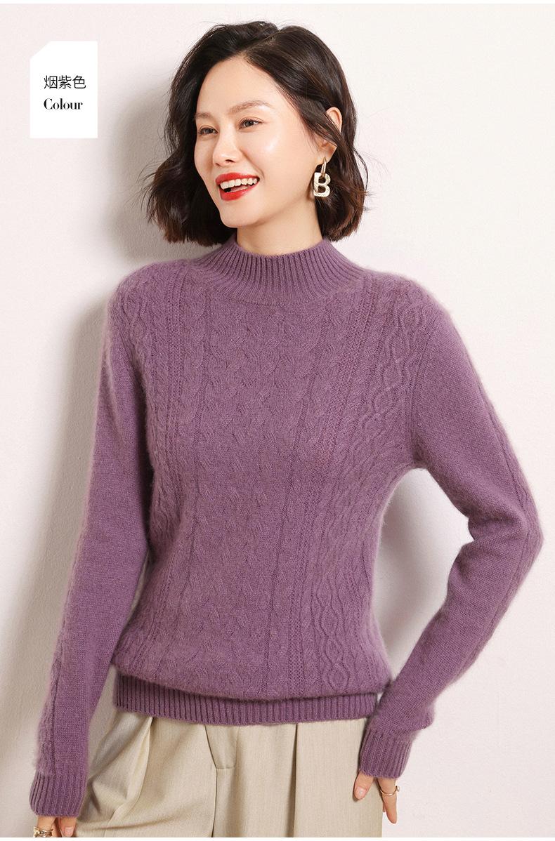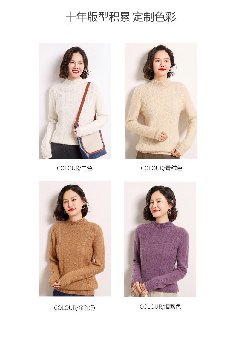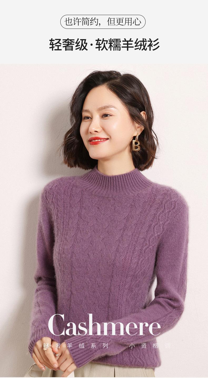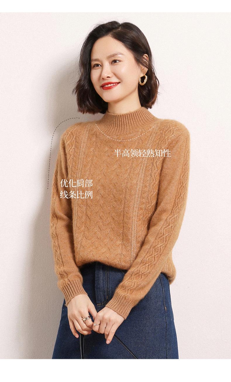 Suéter de Cachemira para Mujer con Trenzas de Color Claro de Cuello Medio Alto, para Usar Debajo, Ajustado, Ropa de Trabajo, Otoño e Invierno, Tejido Grueso de Manga Larga