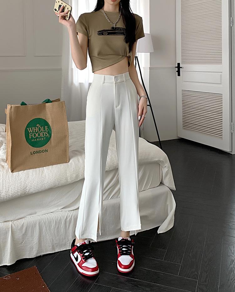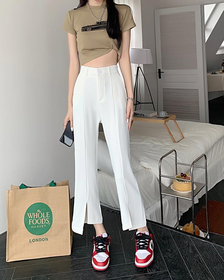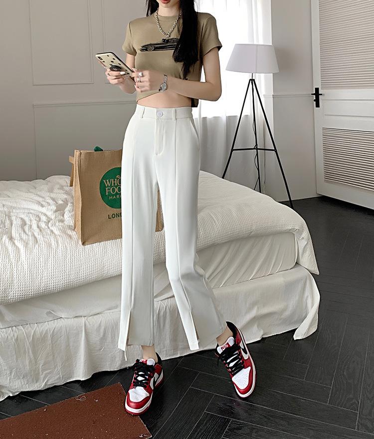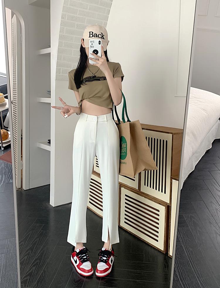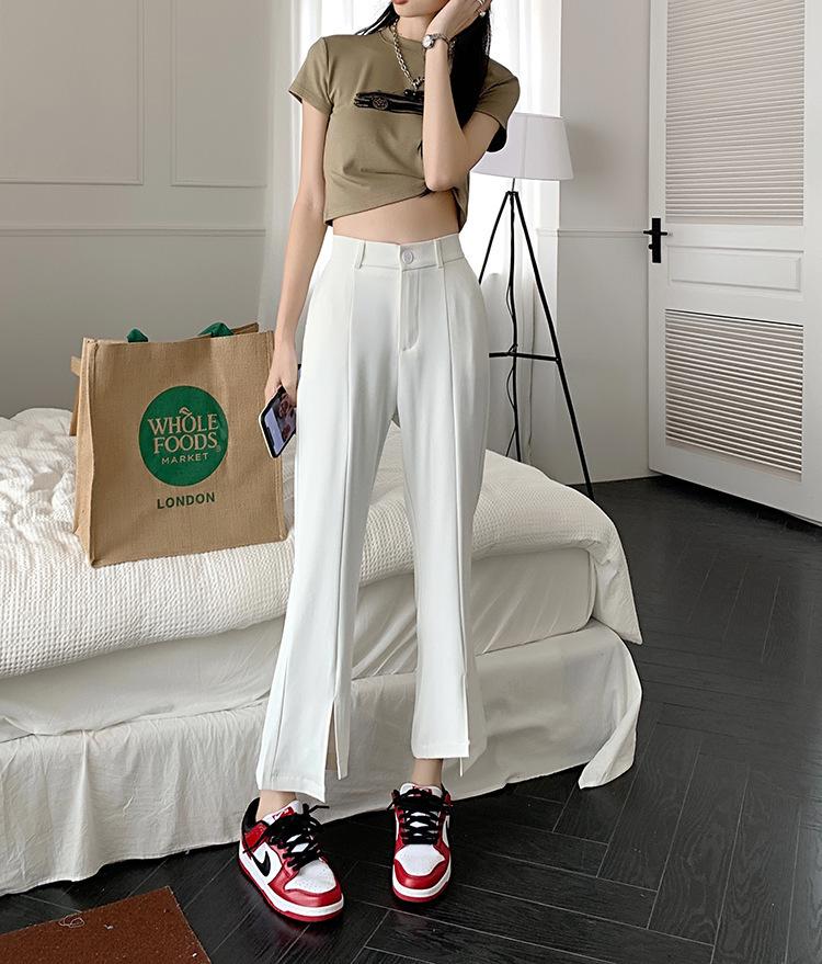 Pantalones de corte irregular para mujer, verano 2024, nuevo estilo, pantalones rectos recortados y adelgazantes, cintura alta, envío gratis