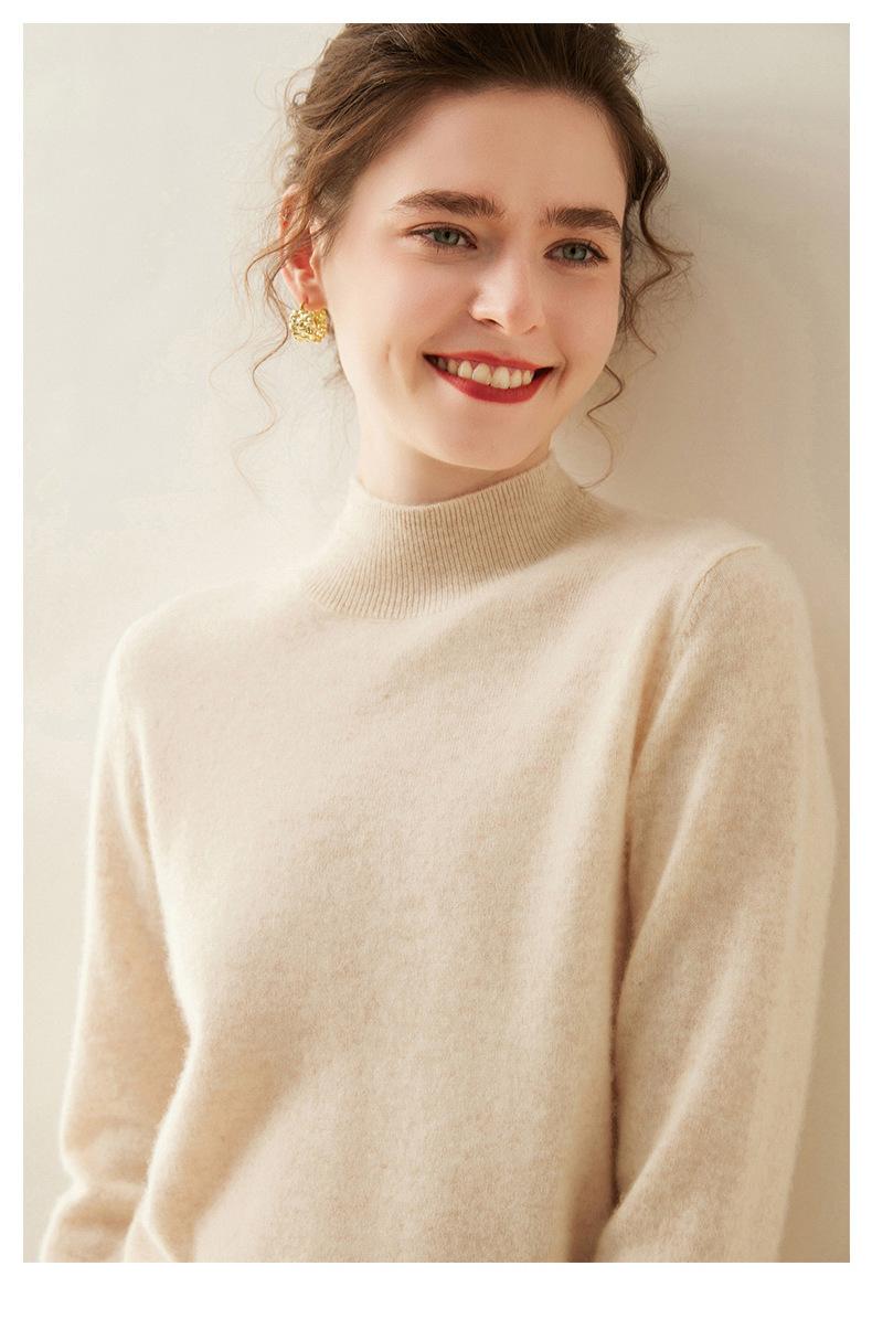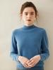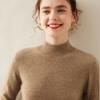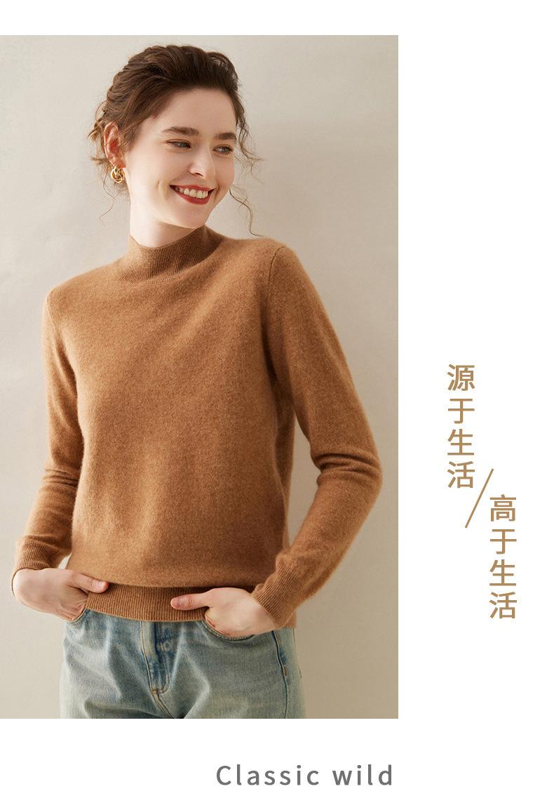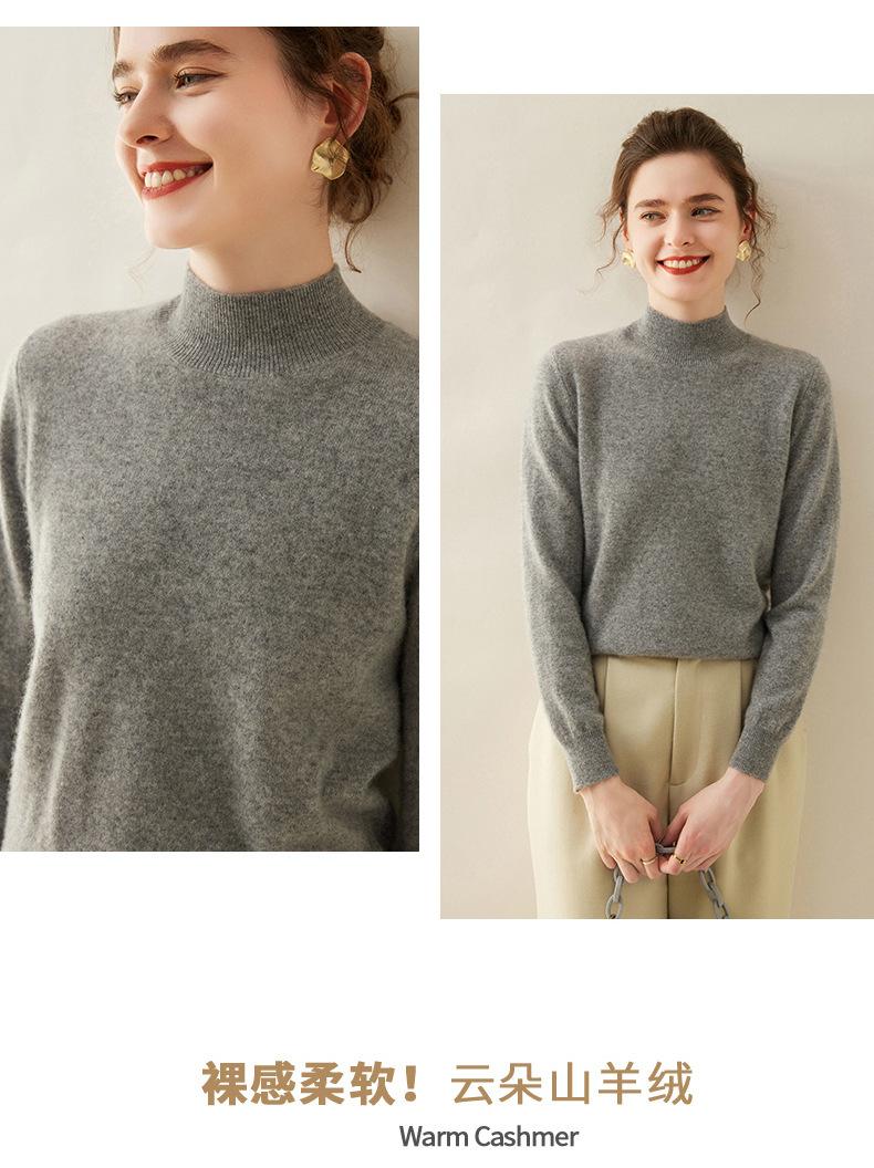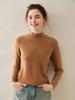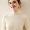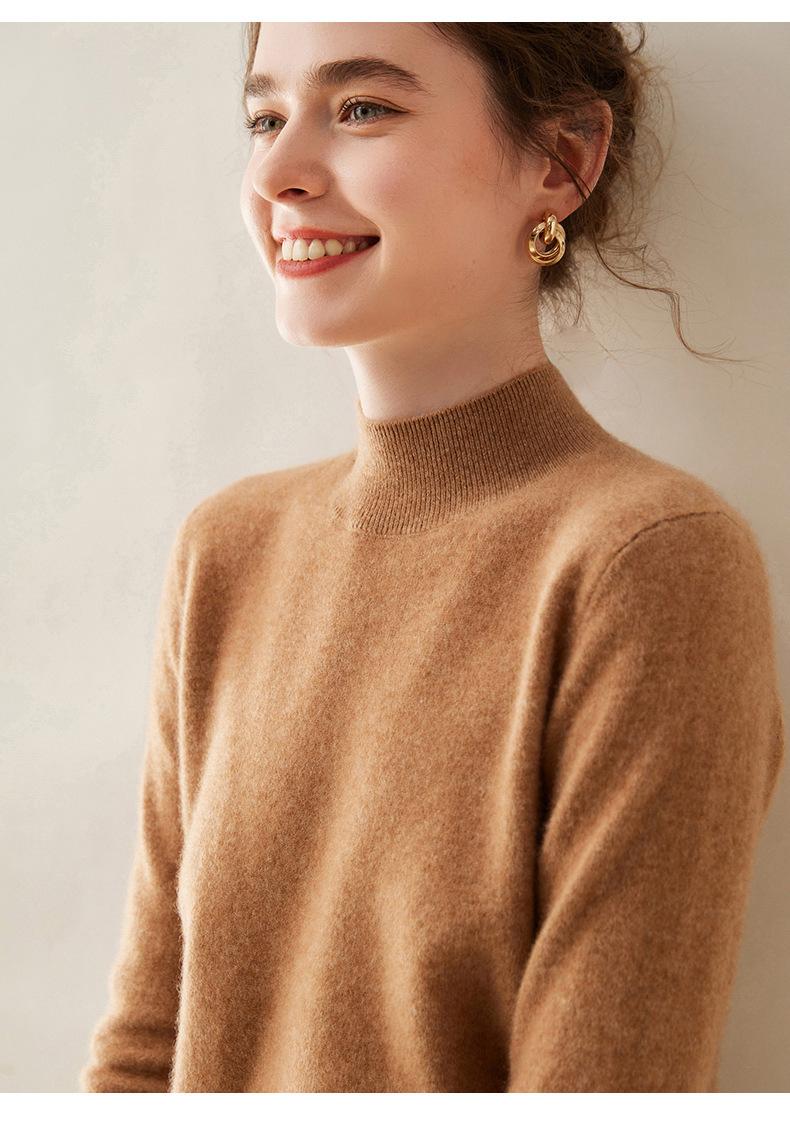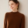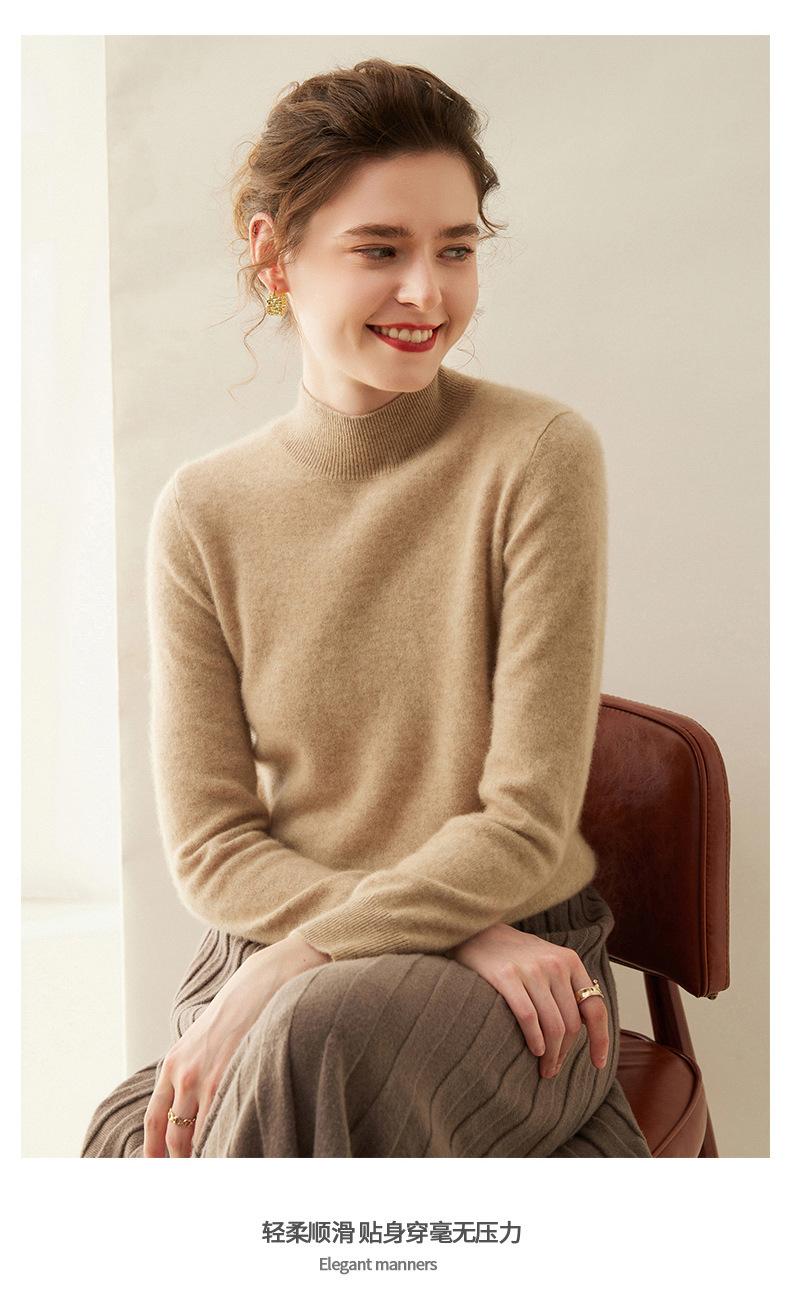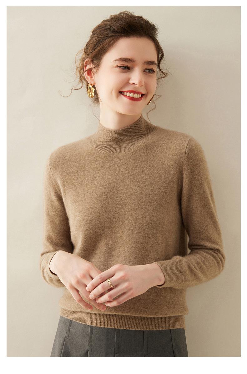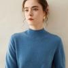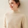 Suéter tipo jersey de cuello alto medio versátil y moderno para mujer, de punto de cachemira de color liso, holgado, adelgazante y cálido.