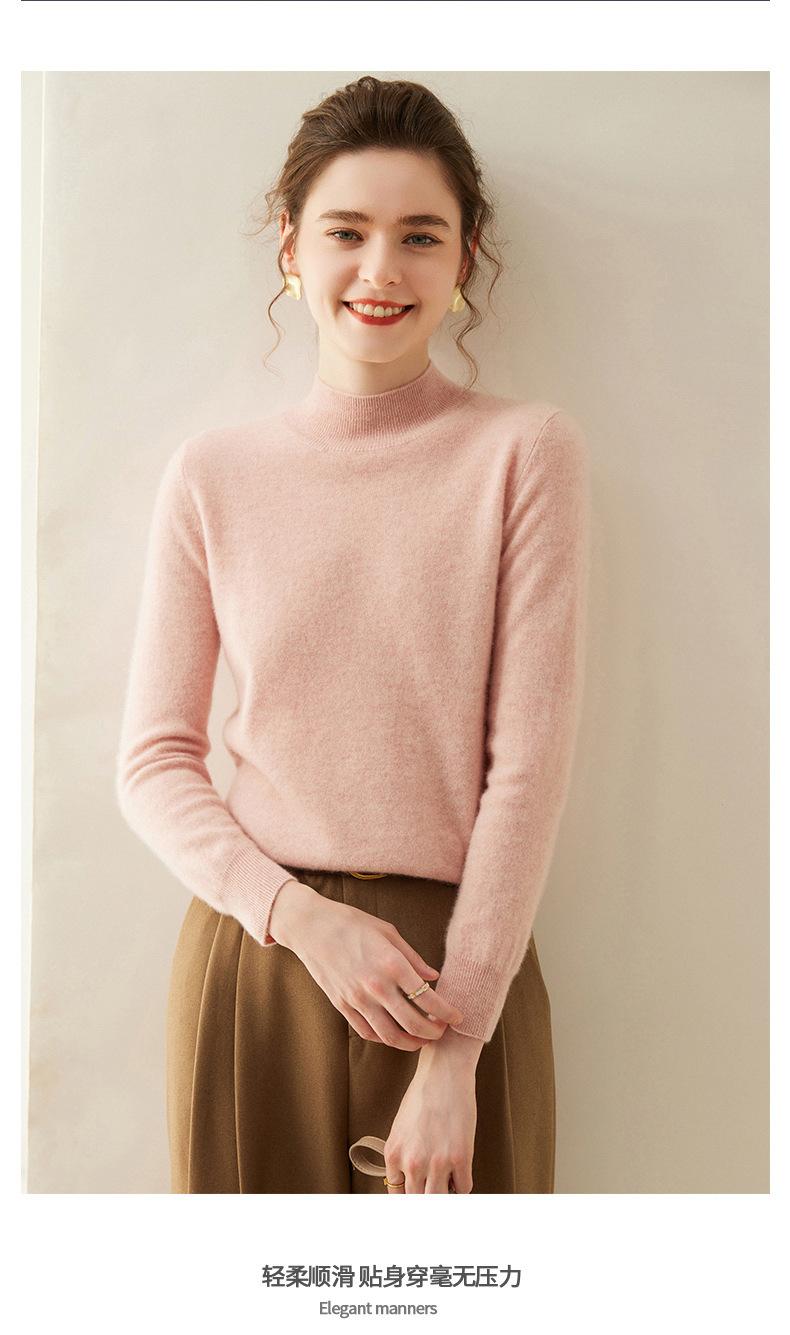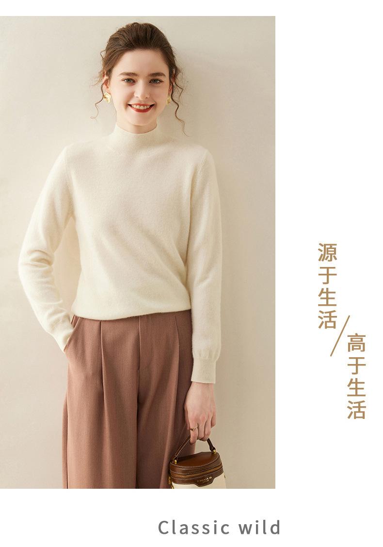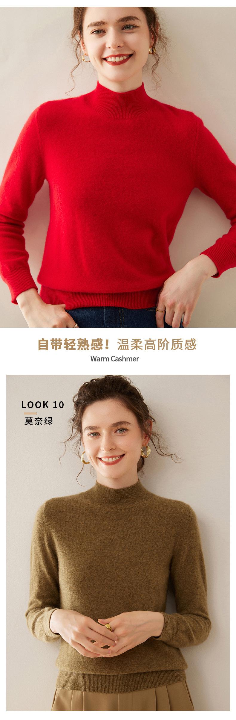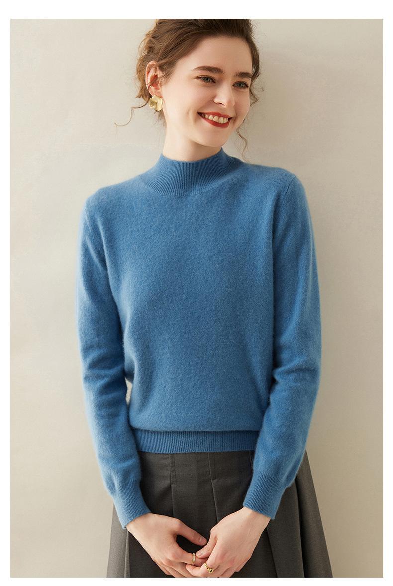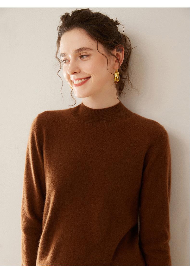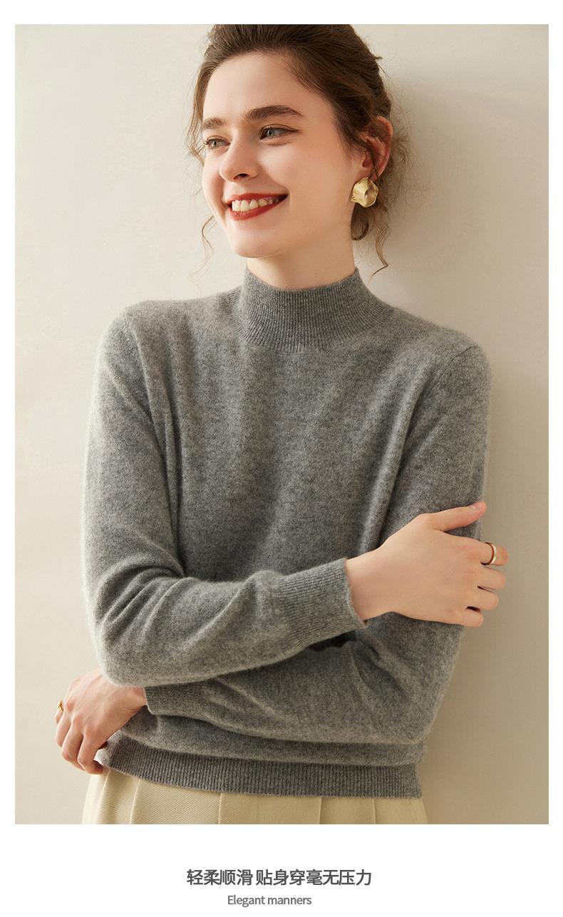 Suéter tipo jersey de cuello alto medio versátil y moderno para mujer, de punto de cachemira de color liso, holgado, adelgazante y cálido.