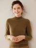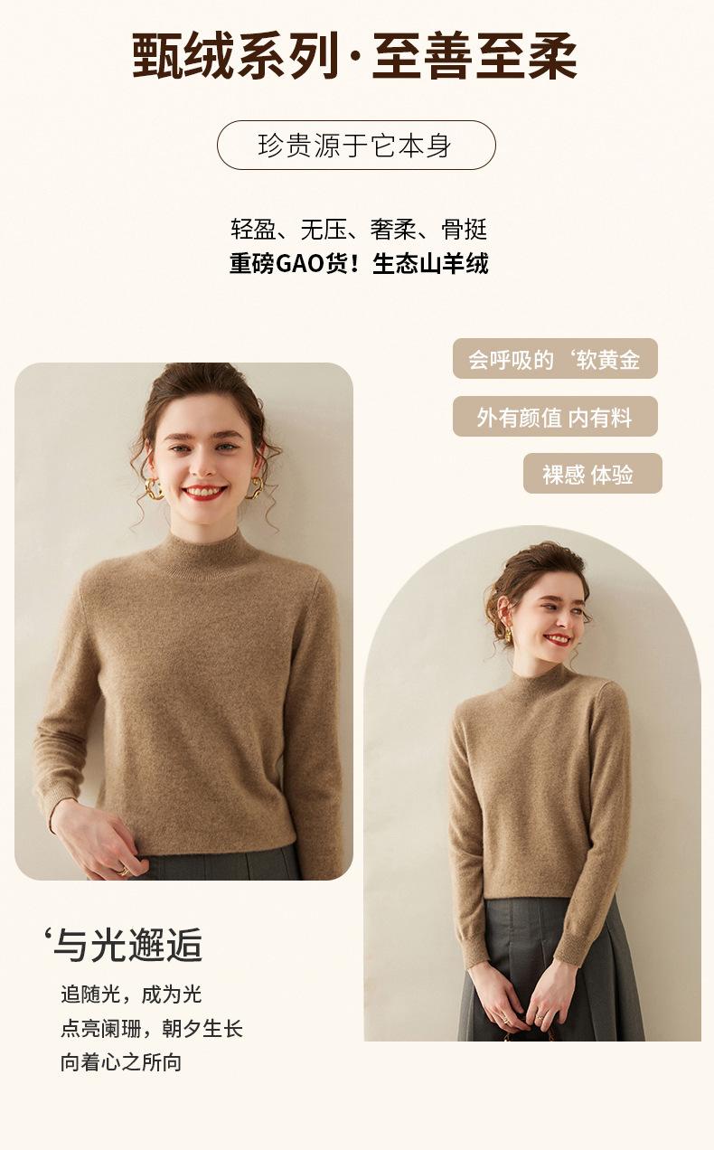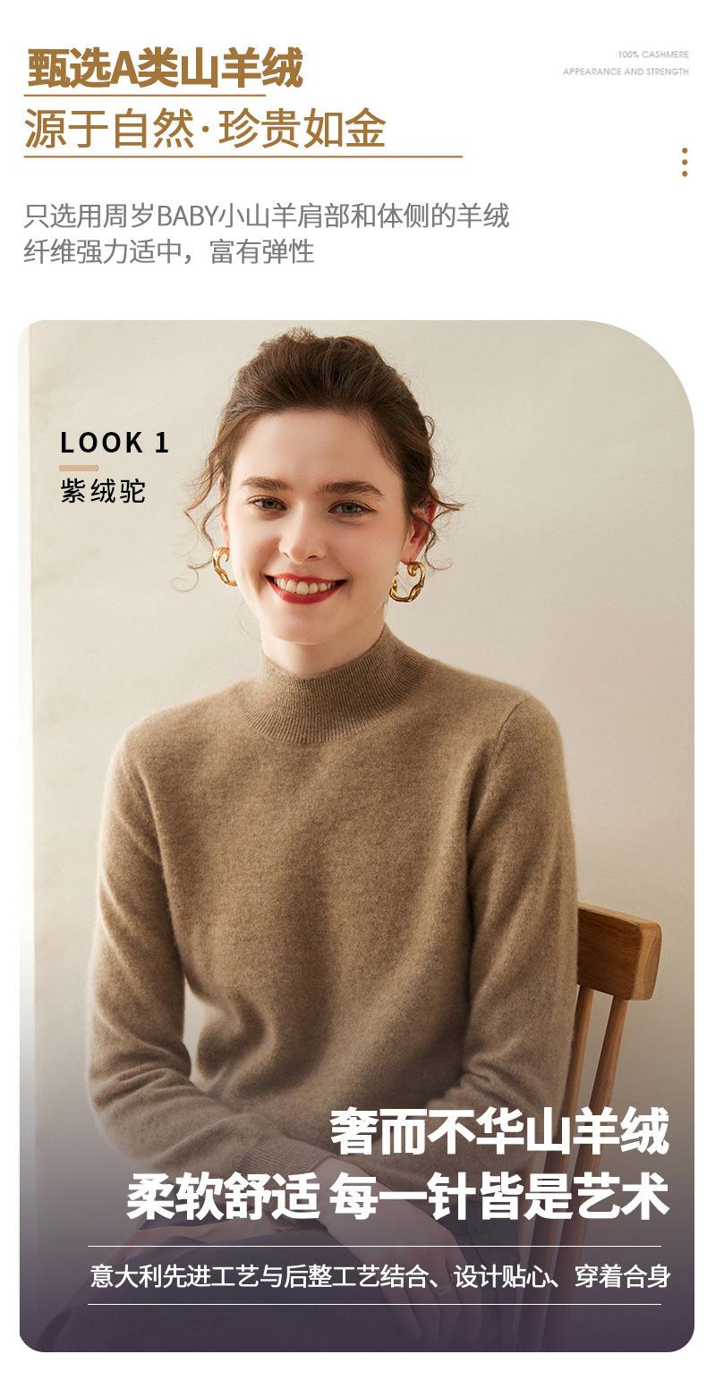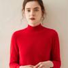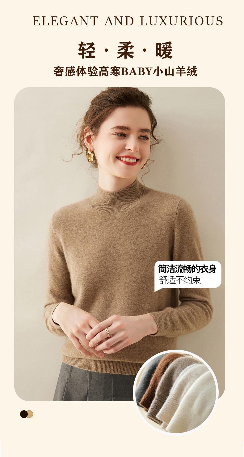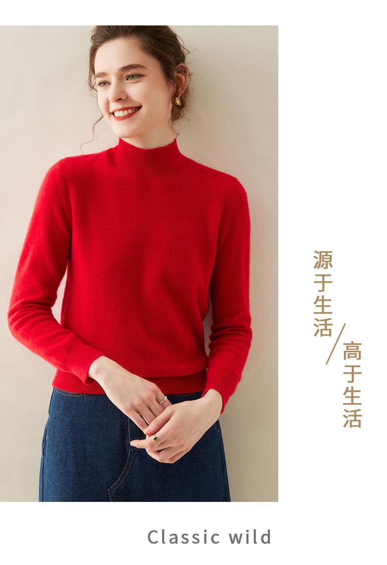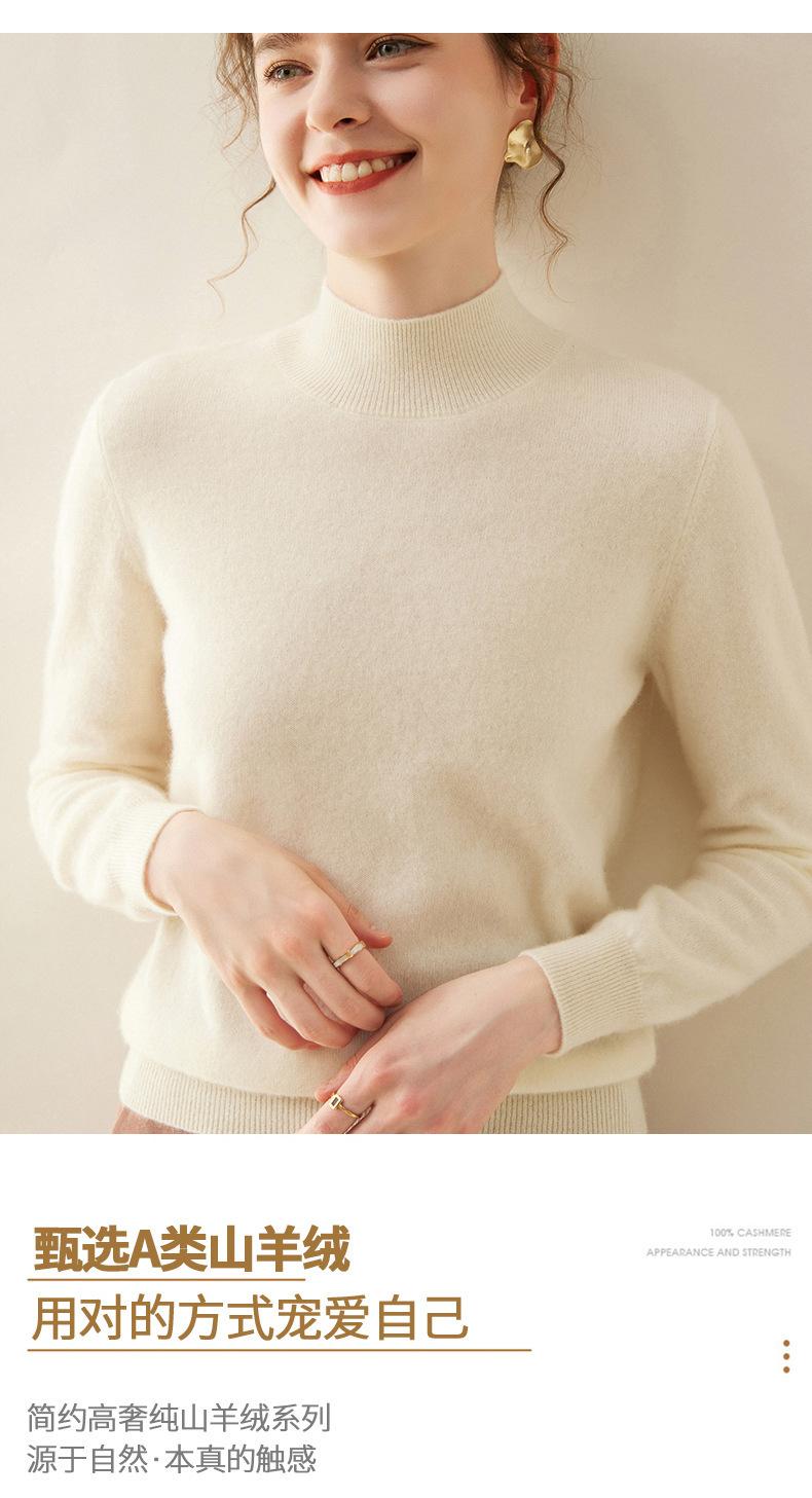 Suéter tipo jersey de cuello alto medio versátil y moderno para mujer, de punto de cachemira de color liso, holgado, adelgazante y cálido.