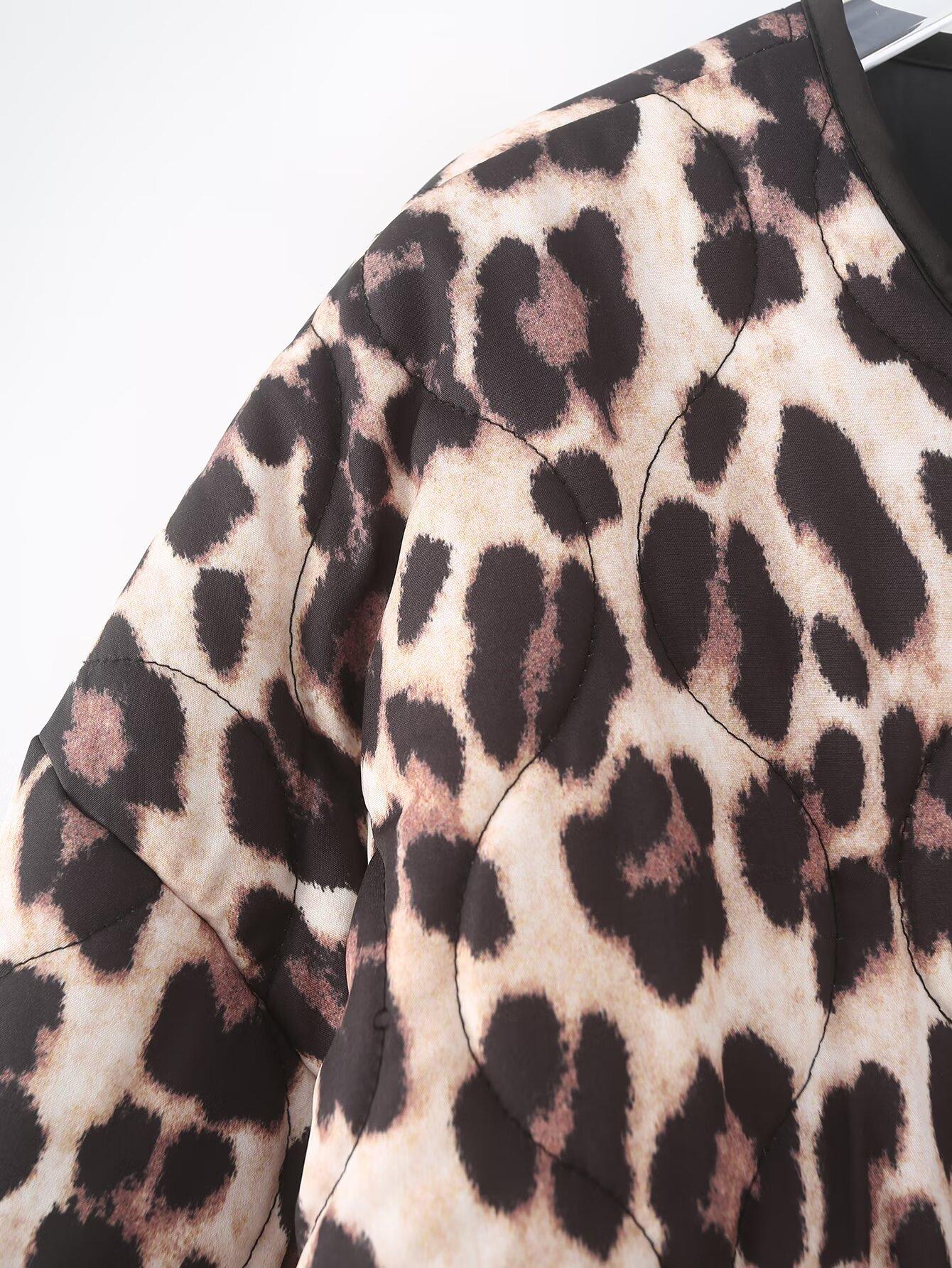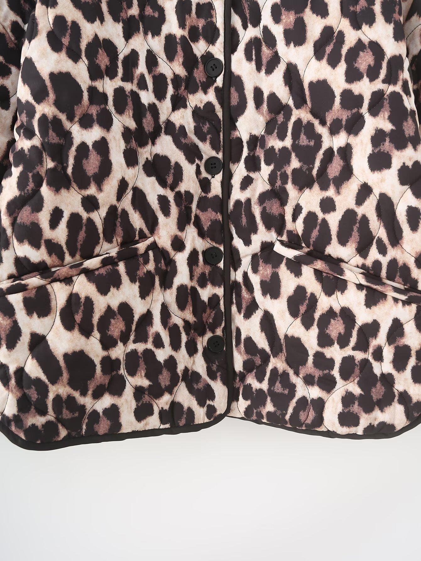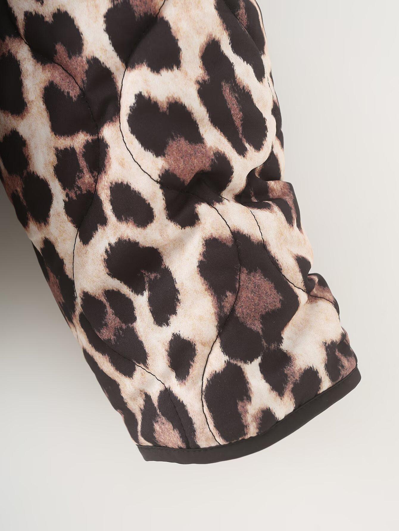 Abrigo de algodón con contraste de color y bolsillo con estampado animal para otoño e invierno 2024, ropa de mujer europea y americana de comercio exterior transfronterizo de Amazon