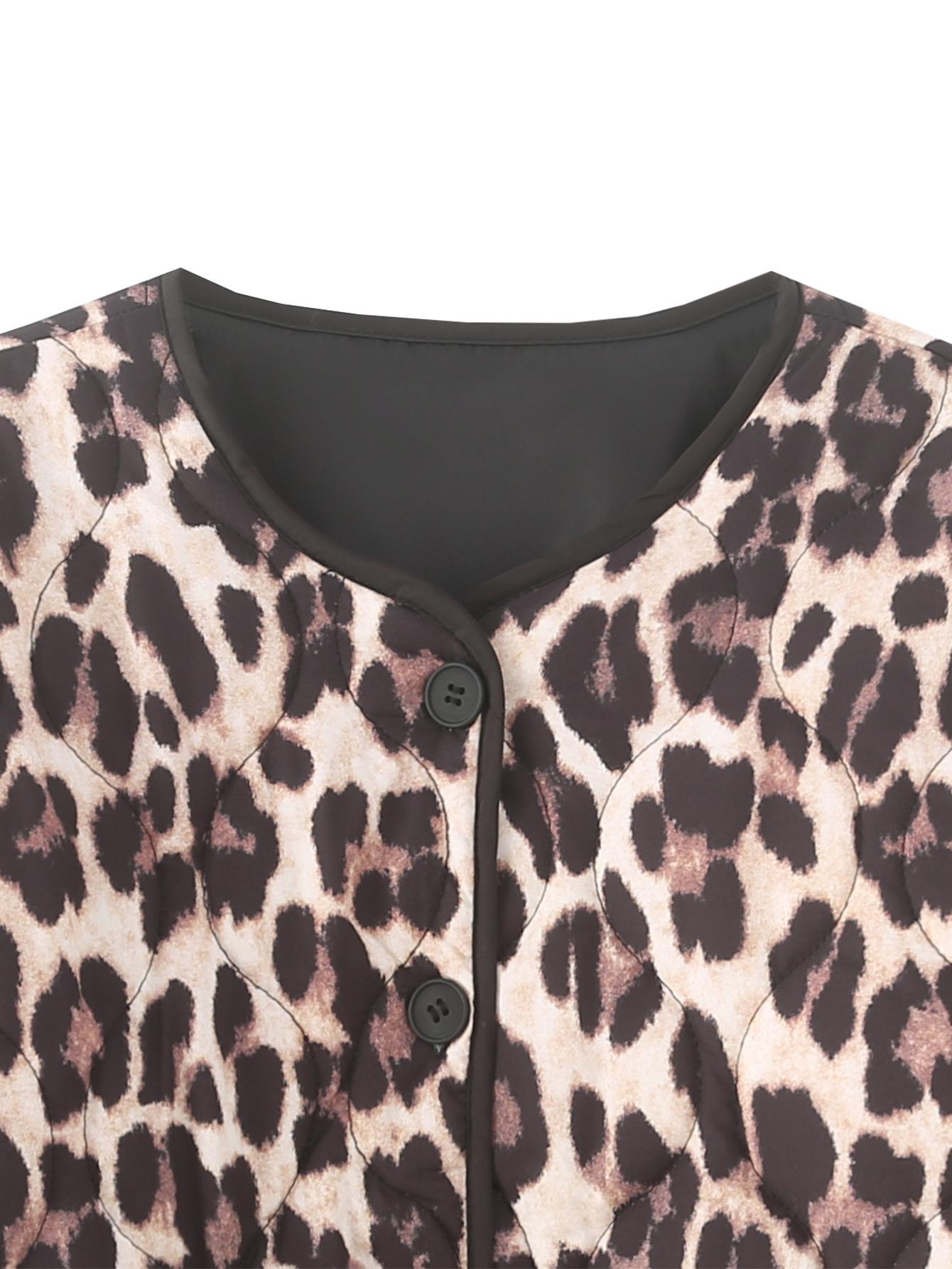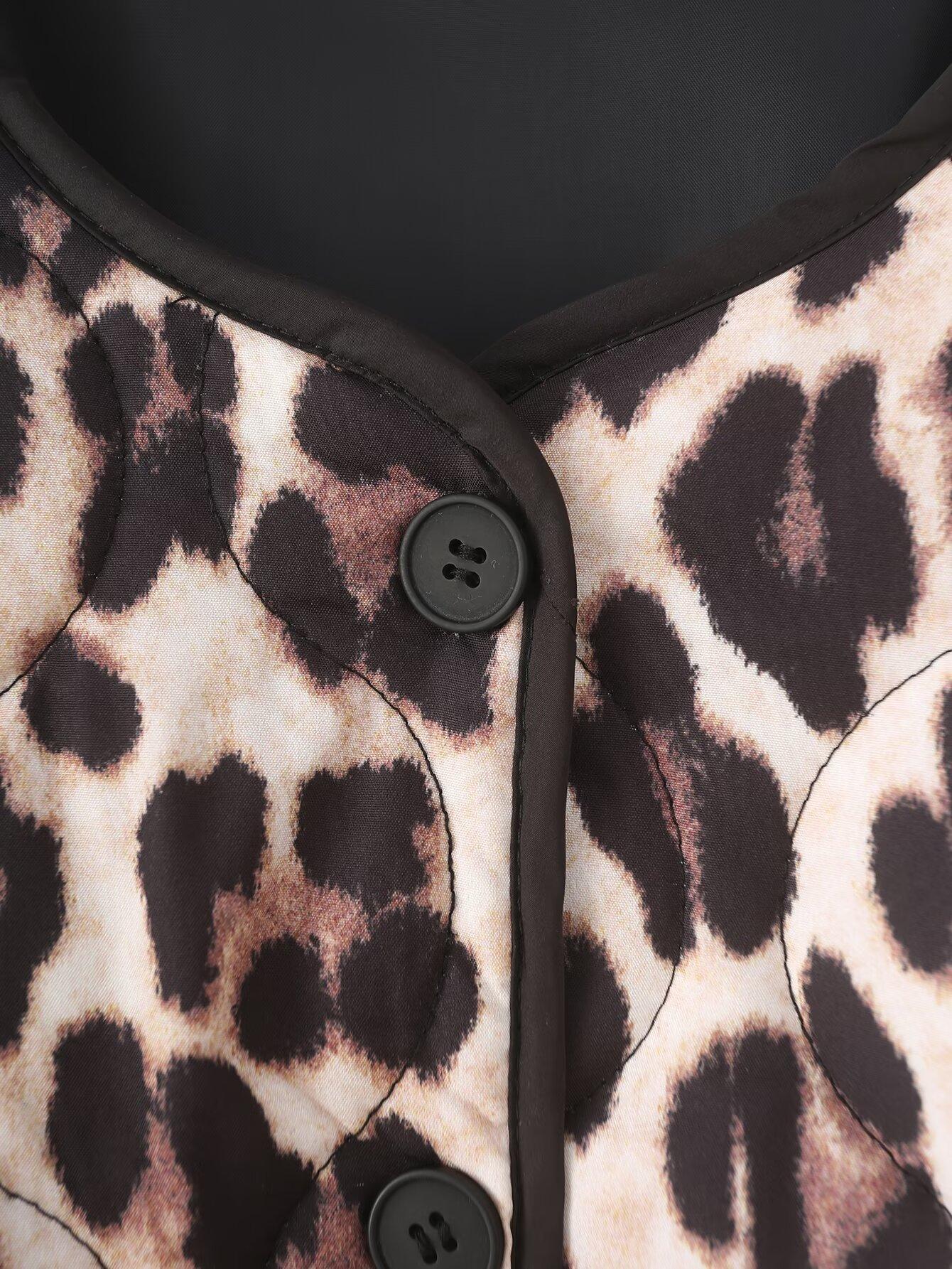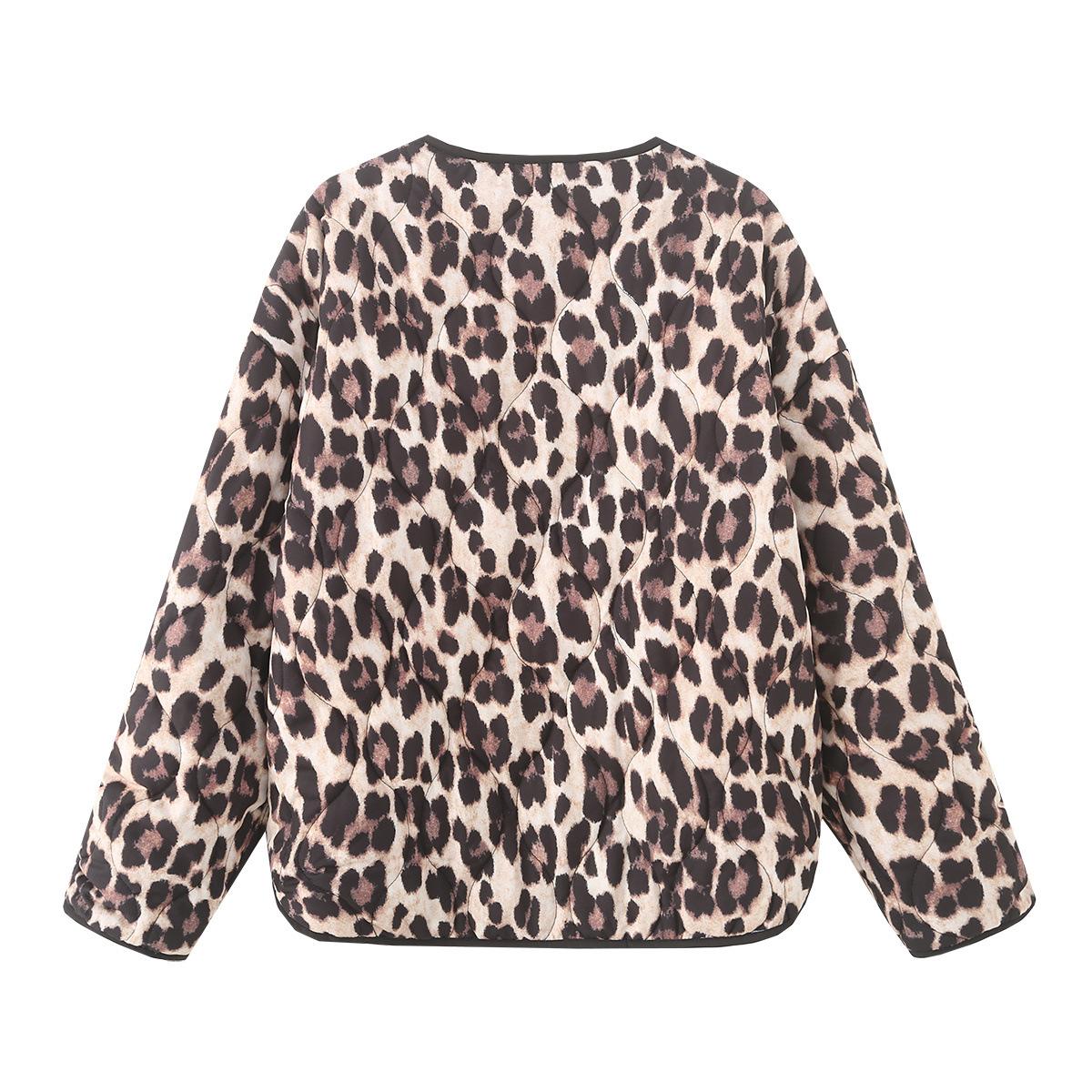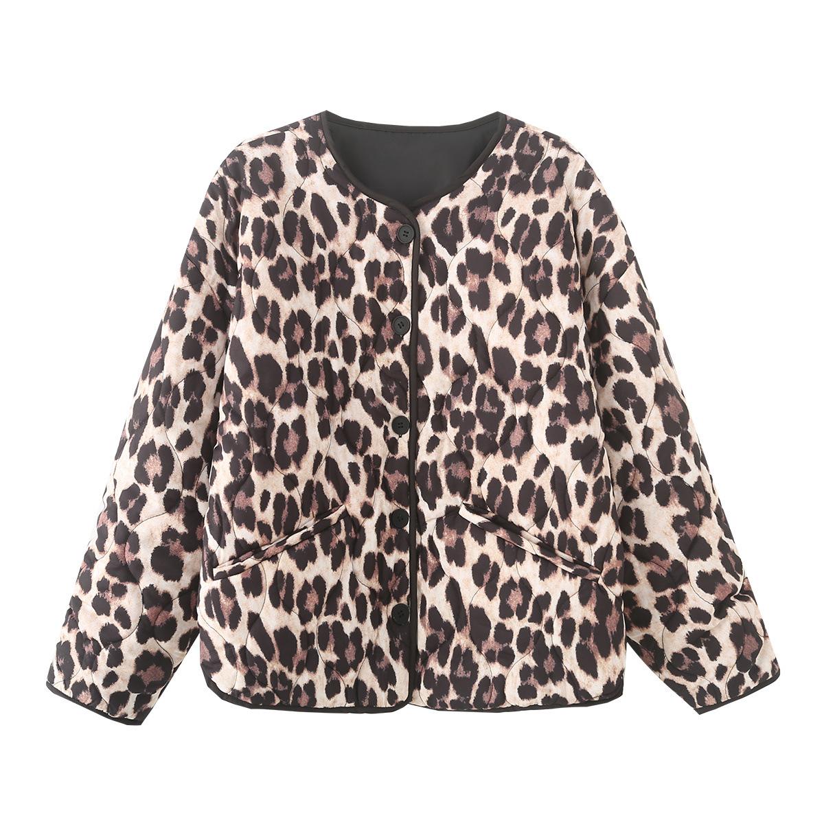 Abrigo de algodón con contraste de color y bolsillo con estampado animal para otoño e invierno 2024, ropa de mujer europea y americana de comercio exterior transfronterizo de Amazon