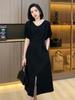 Vestido de verano para mujer 2024, nuevo, elegante, estilo occidental, cintura ajustada, ajustado, elegante, falda gris, envío gratis