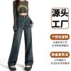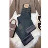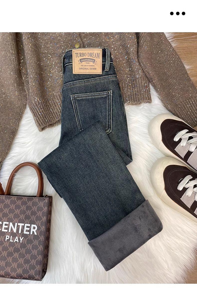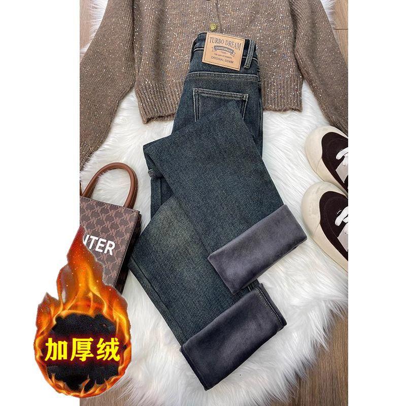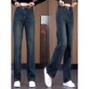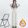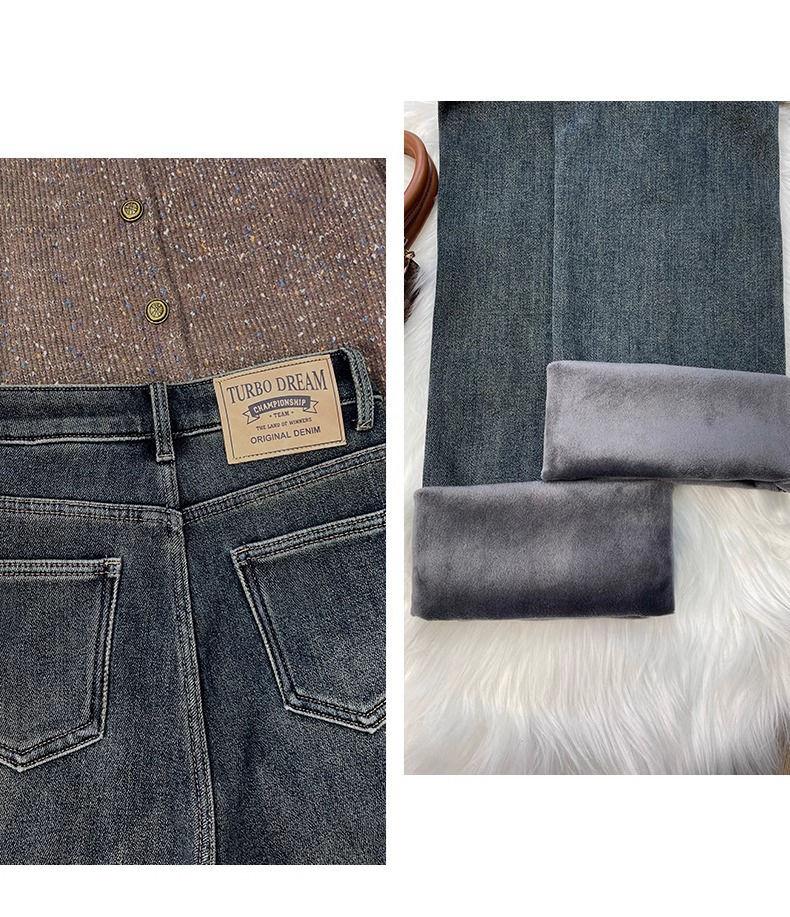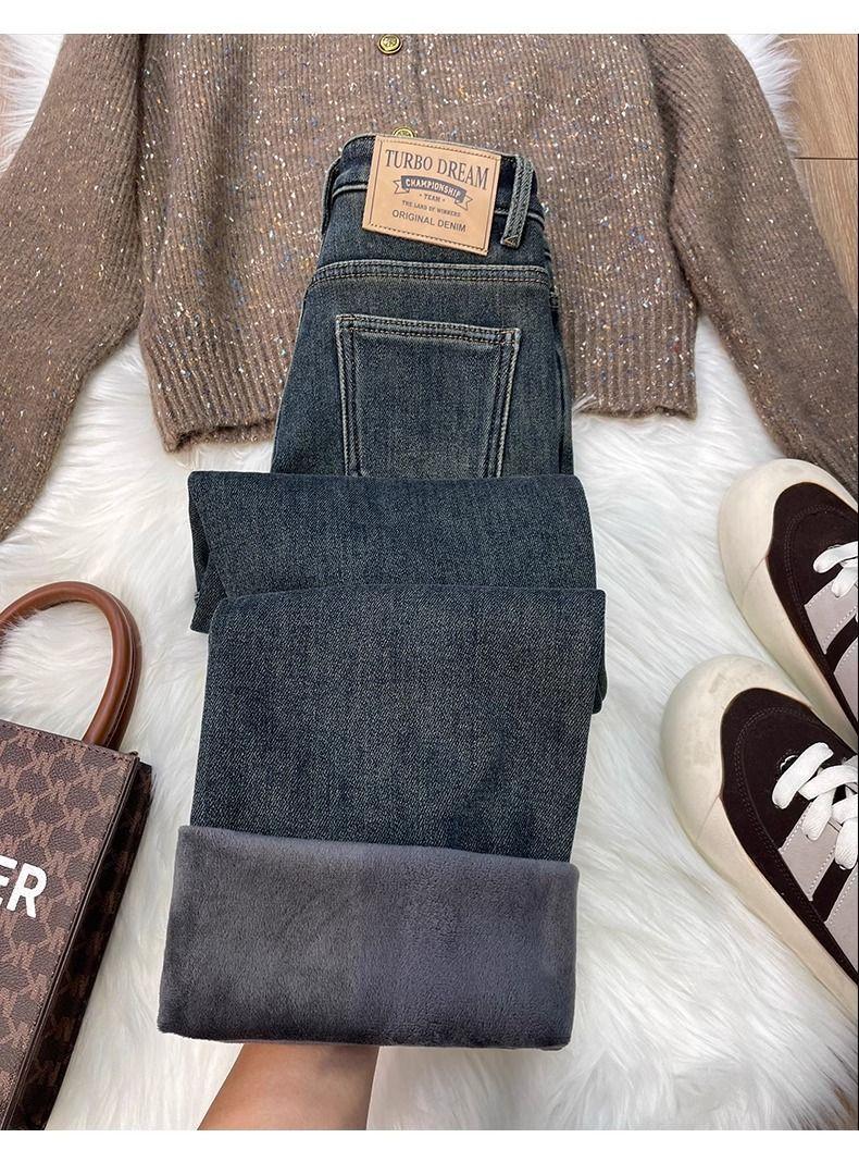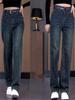 Pantalones vaqueros de pierna ancha y gruesos con forro polar para mujer, versión estrecha, invierno 2024, nuevos pantalones rectos ajustados de cintura alta que adelgazan y combinan con todo.
