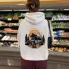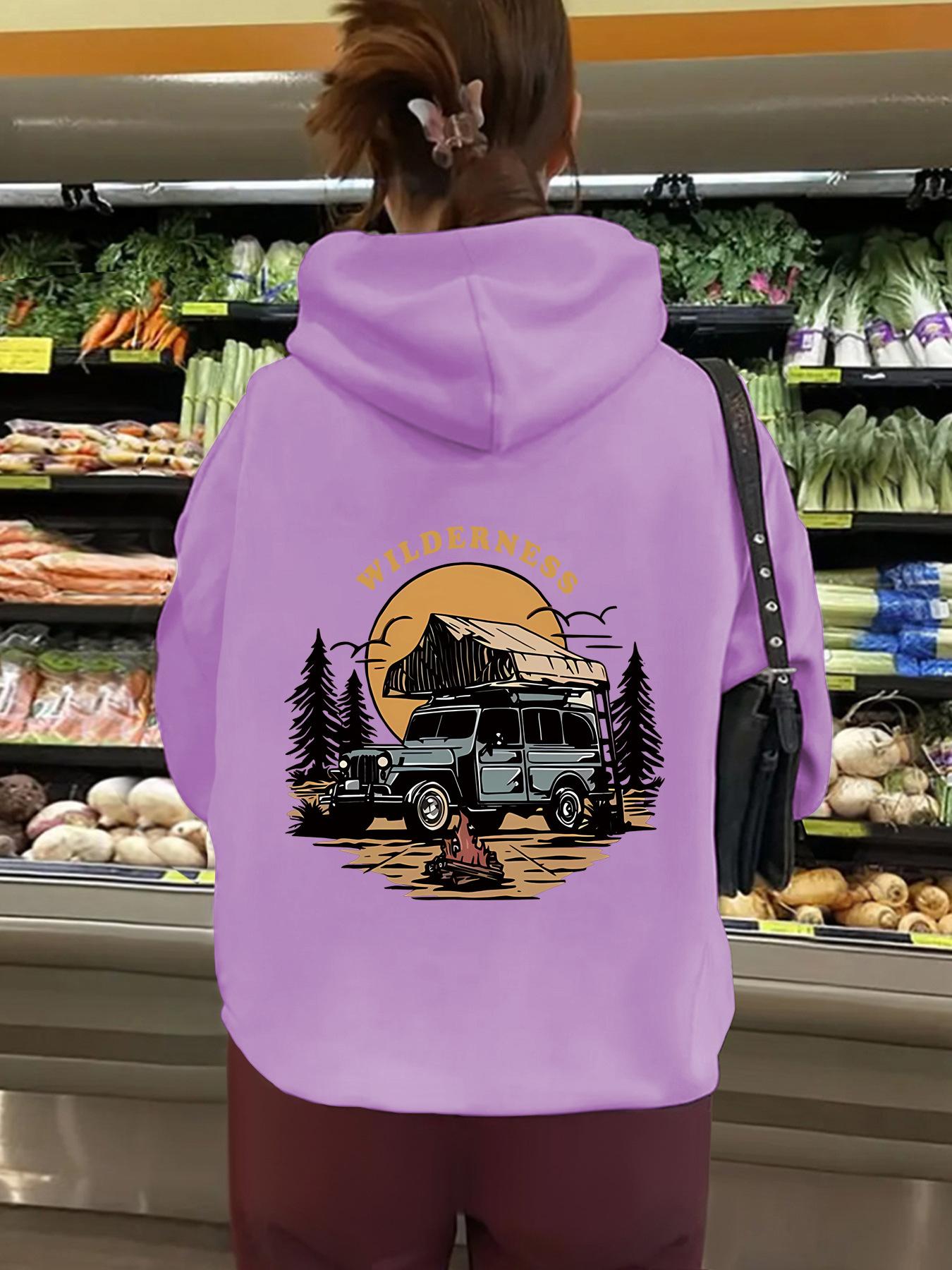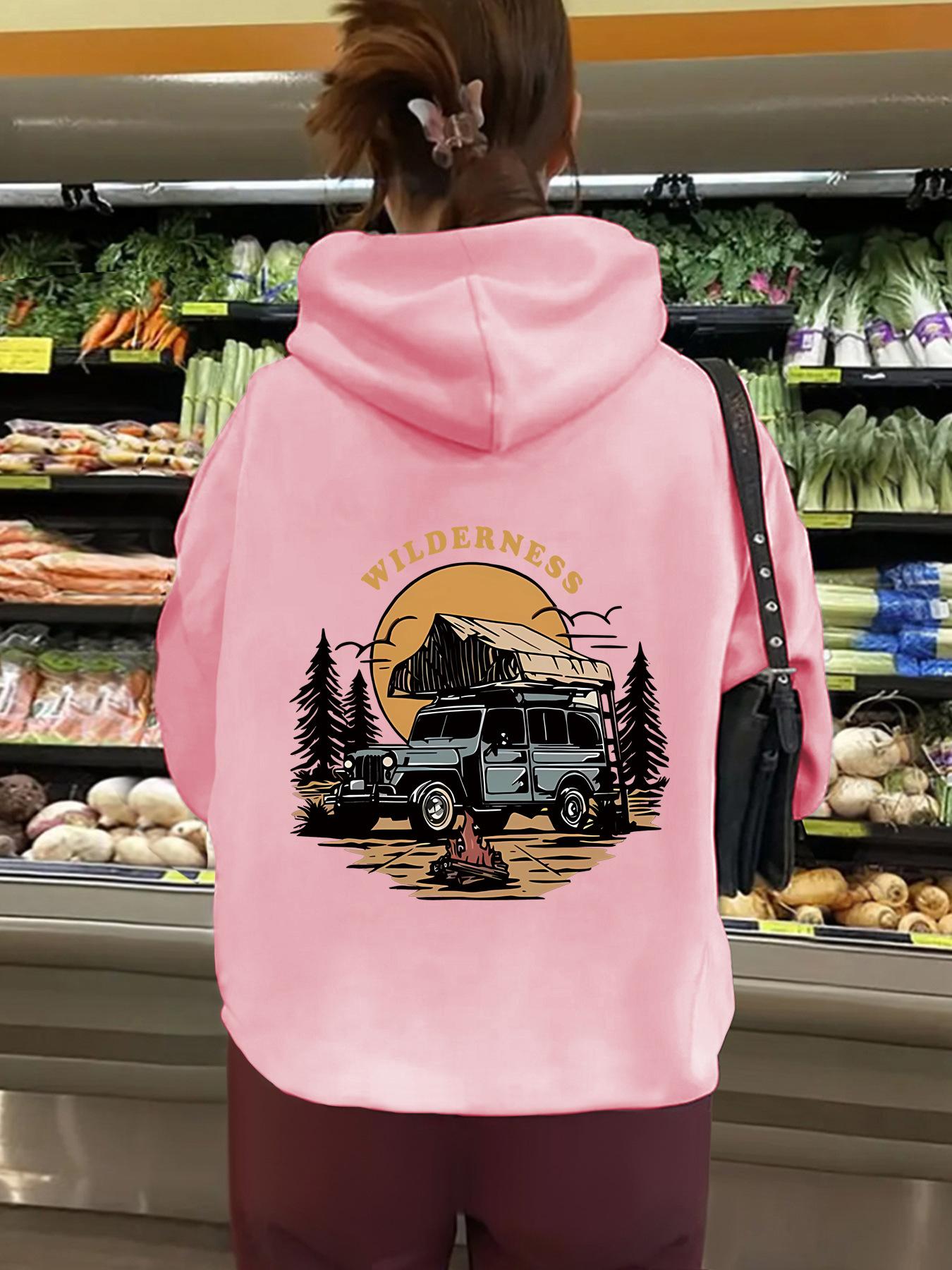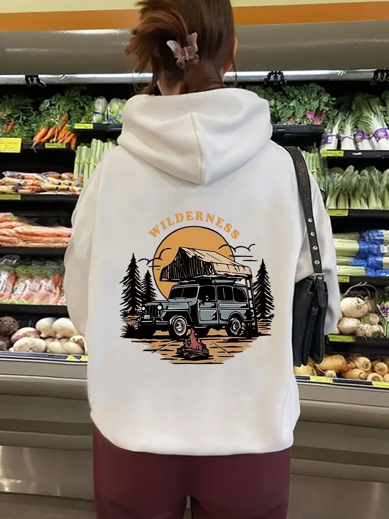 Sudadera con capucha de manga larga con bolsillo tipo canguro y forro polar para mujer, estilo europeo y americano, con estampado WILDERNESS, para otoño e invierno, talla transfronteriza