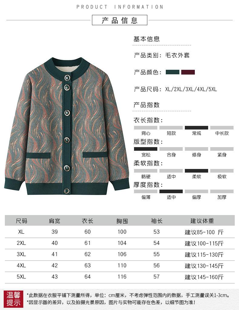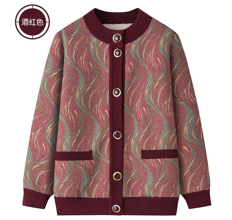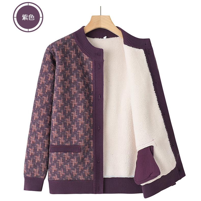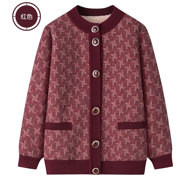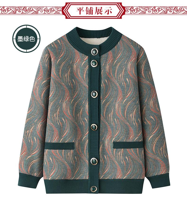 Suéter de abuela de otoño para personas de mediana edad y mayores, cárdigan grueso con forro polar para madres, abrigo cálido para ancianas y ancianos